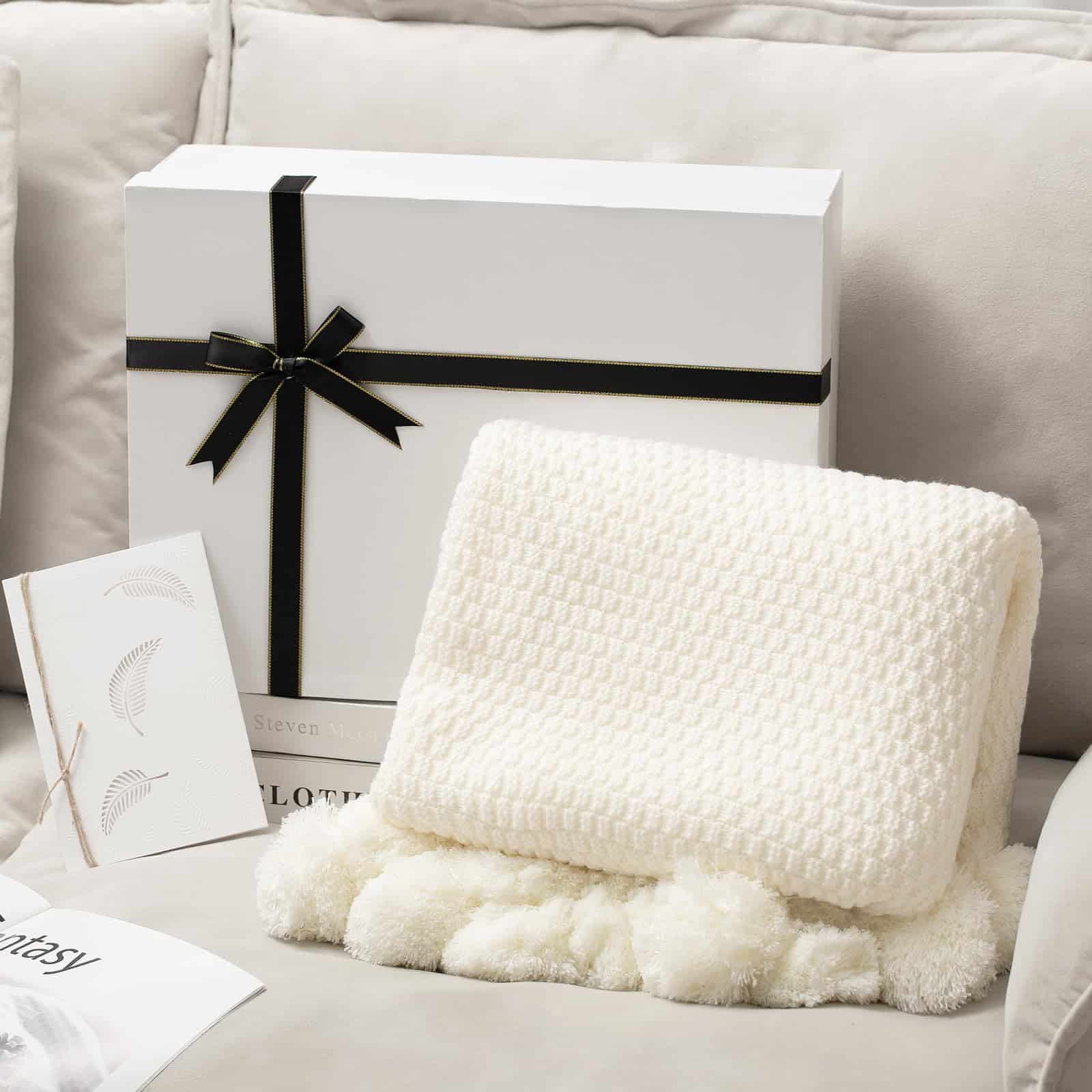 3. Regalos de mantas para mujeres: Esta manta blanca rota viene en una caja de regalo y se puede dar como regalo a tu madre, esposa, hija, colega, etc. Al mismo tiempo, se ha preparado un sobre de forma considerada para ti. Puedes escribir lo que quieras expresar en él para añadir un toque de cariño a tu regalo.
