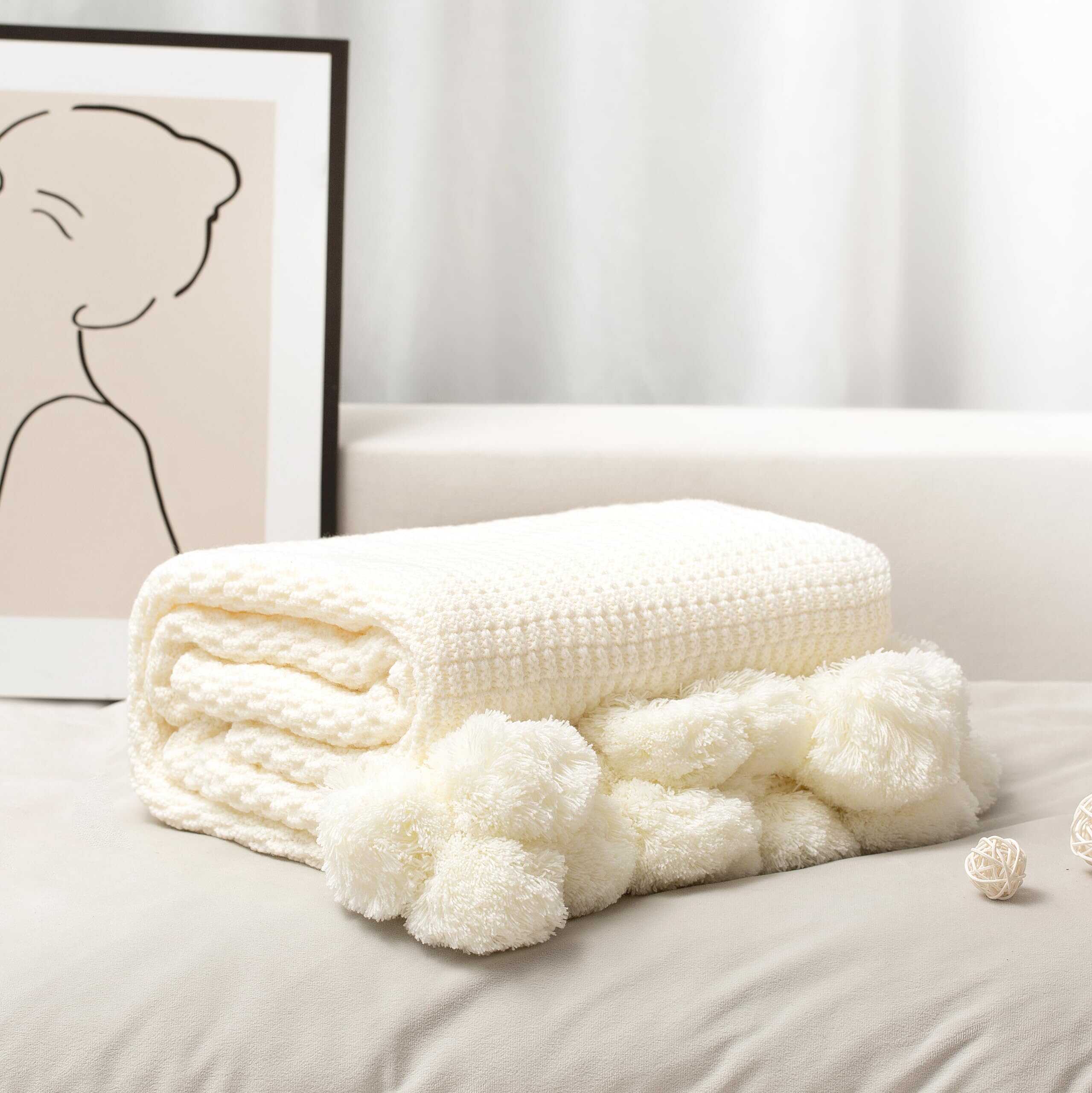 1. Manta Boho: Diseñada en estilo bohemio con borlas, simple y elegante, se combina perfectamente con varios muebles del hogar. El intricado proceso de tejido de la manta de punto aporta un sentido de sofisticación adicional, creando el lugar perfecto para descansar.