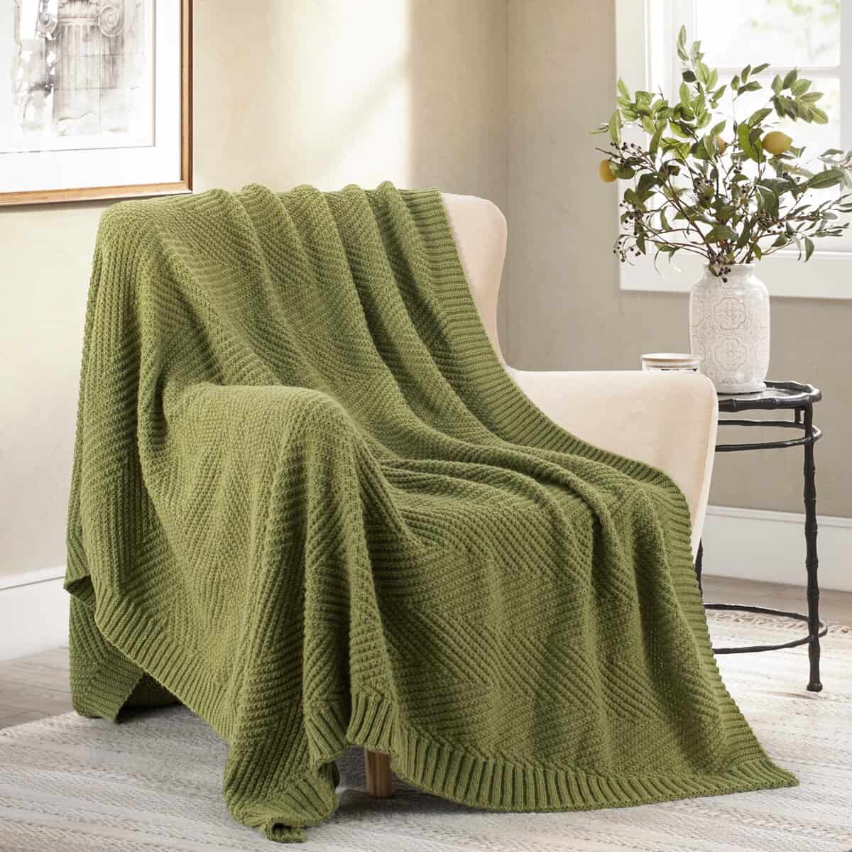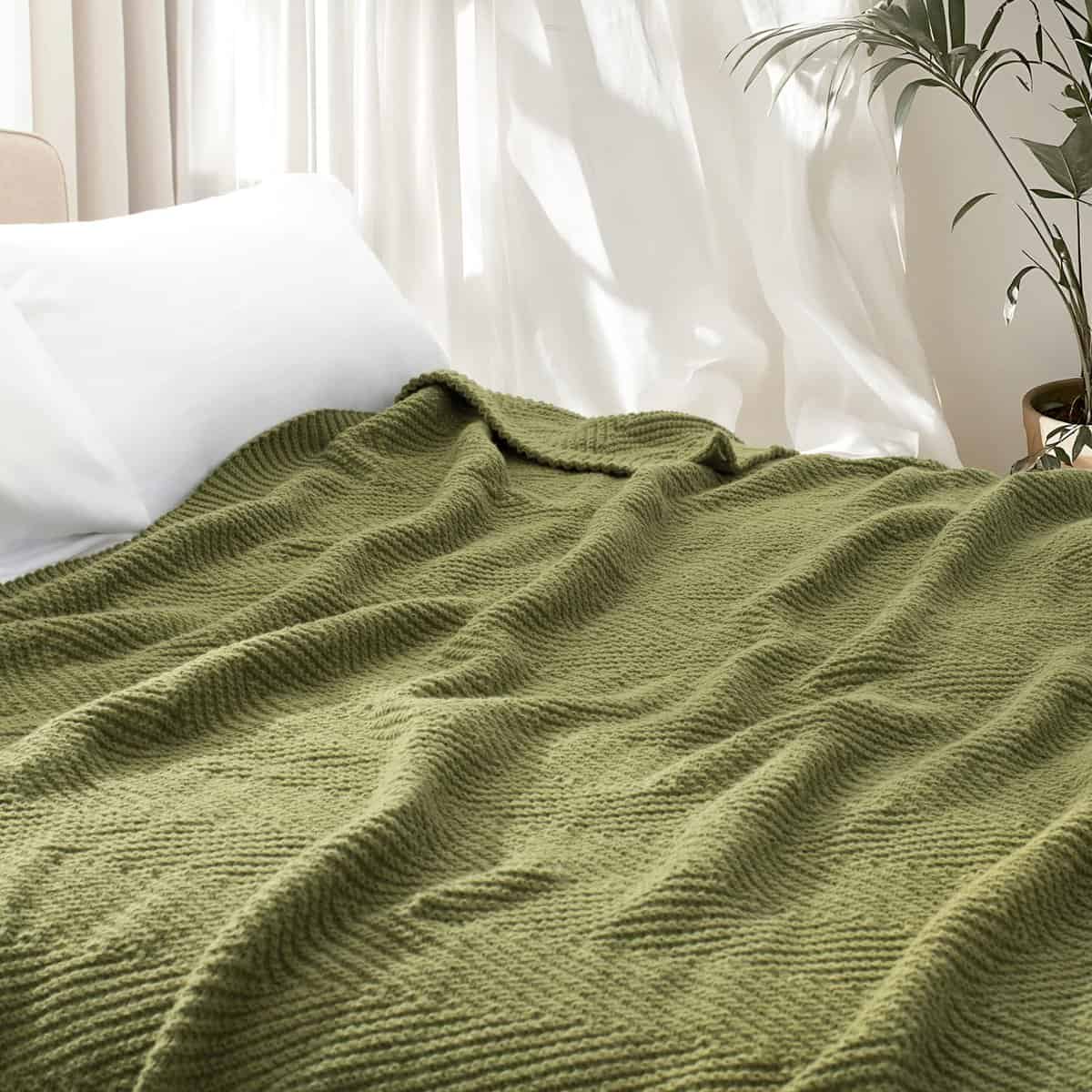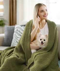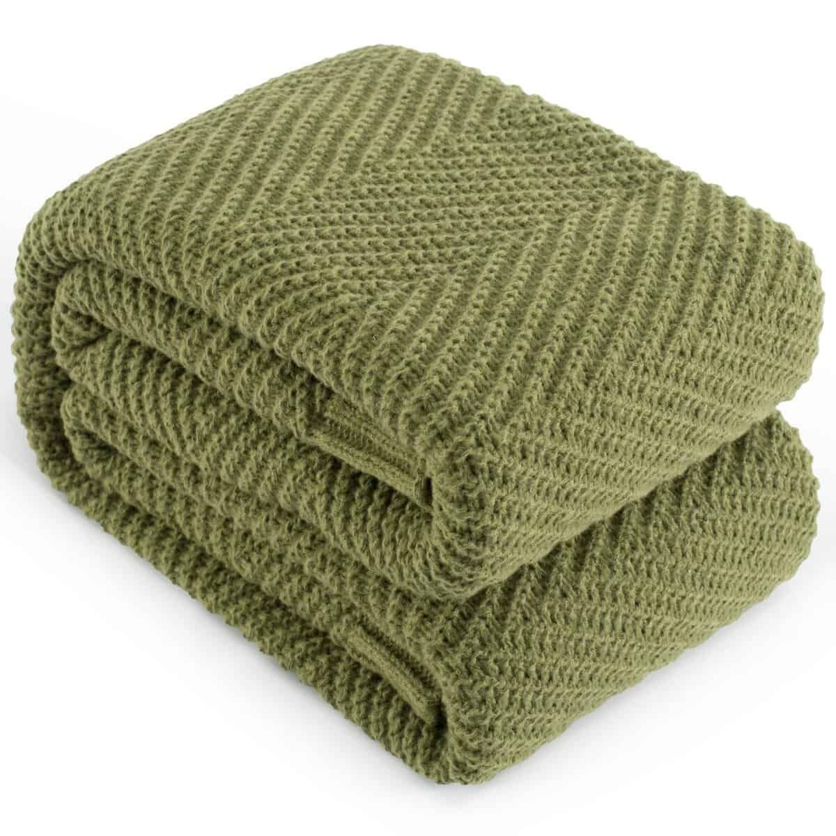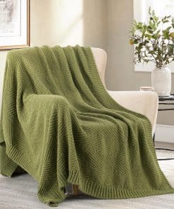 Manta de Punto Tejida para Cama 60″X80″, Verde Oliva Mantas