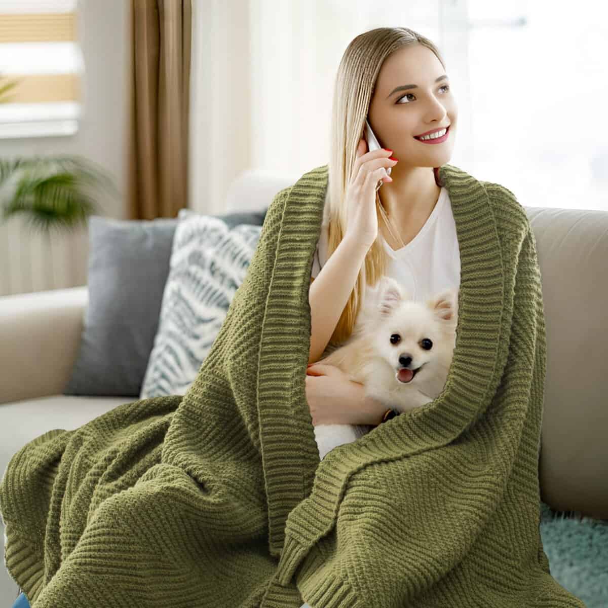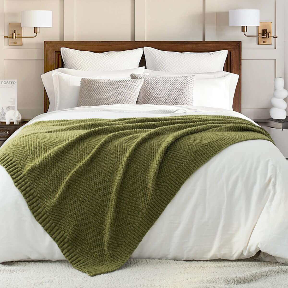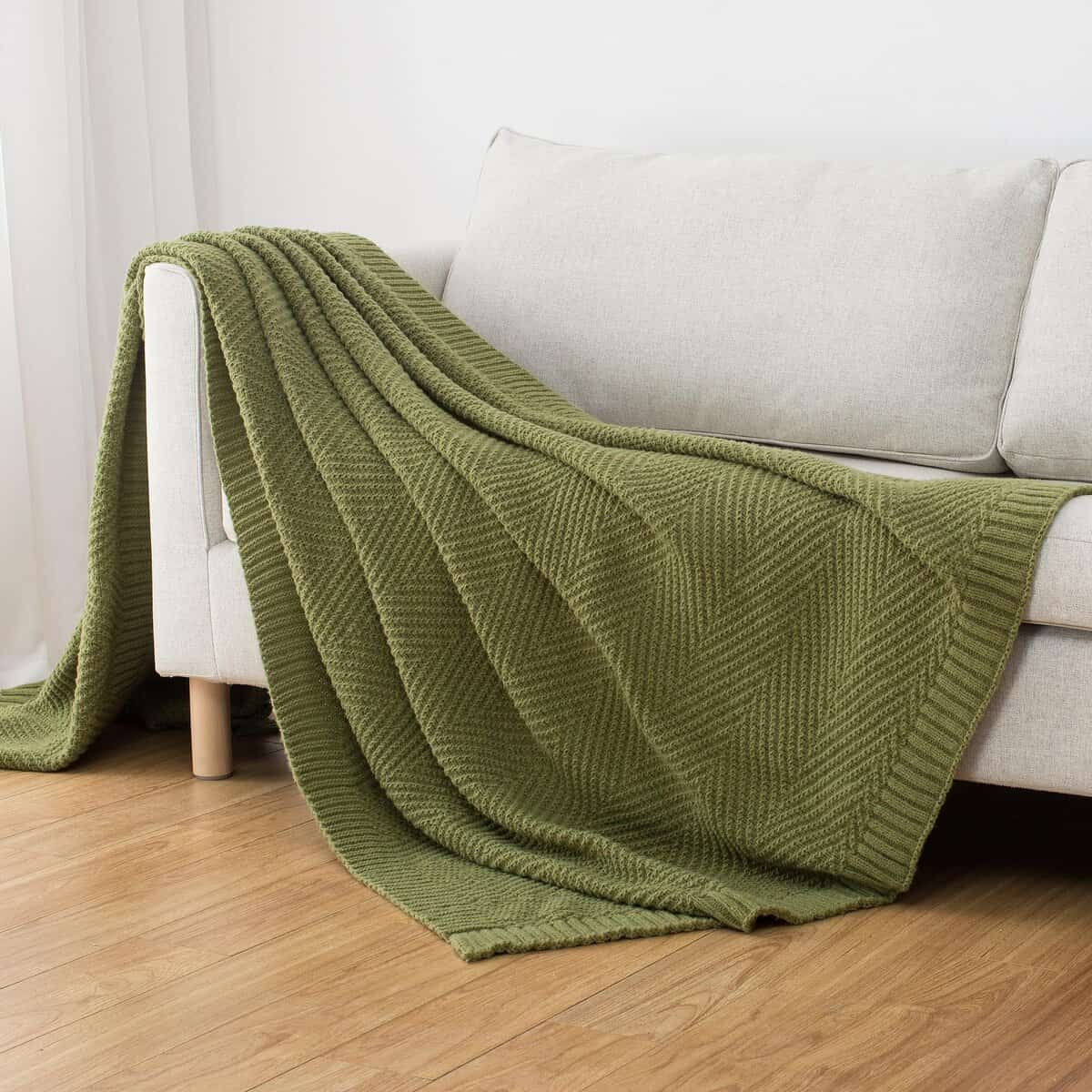 Manta de Punto Tejida para Cama 60″X80″, Verde Oliva Mantas