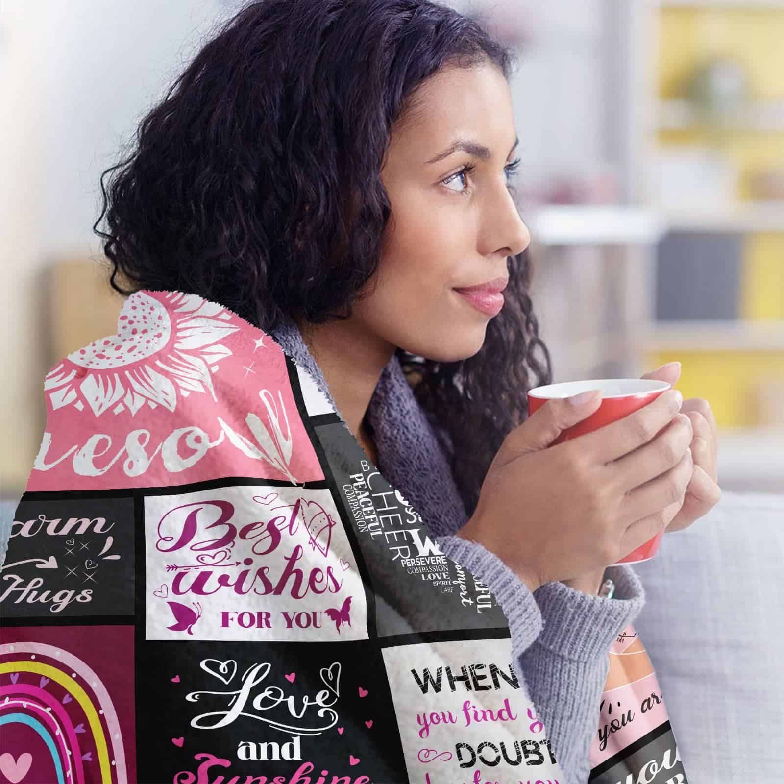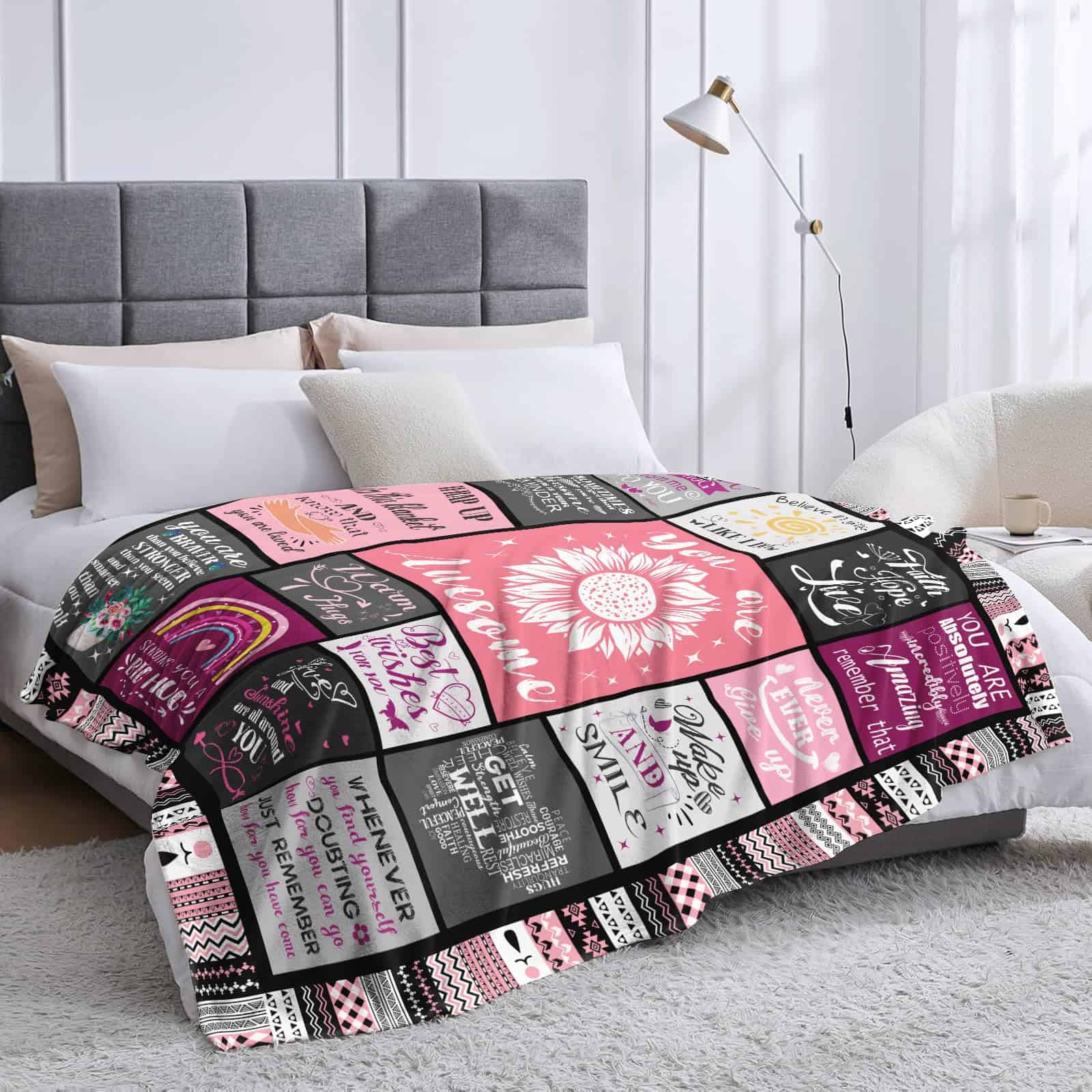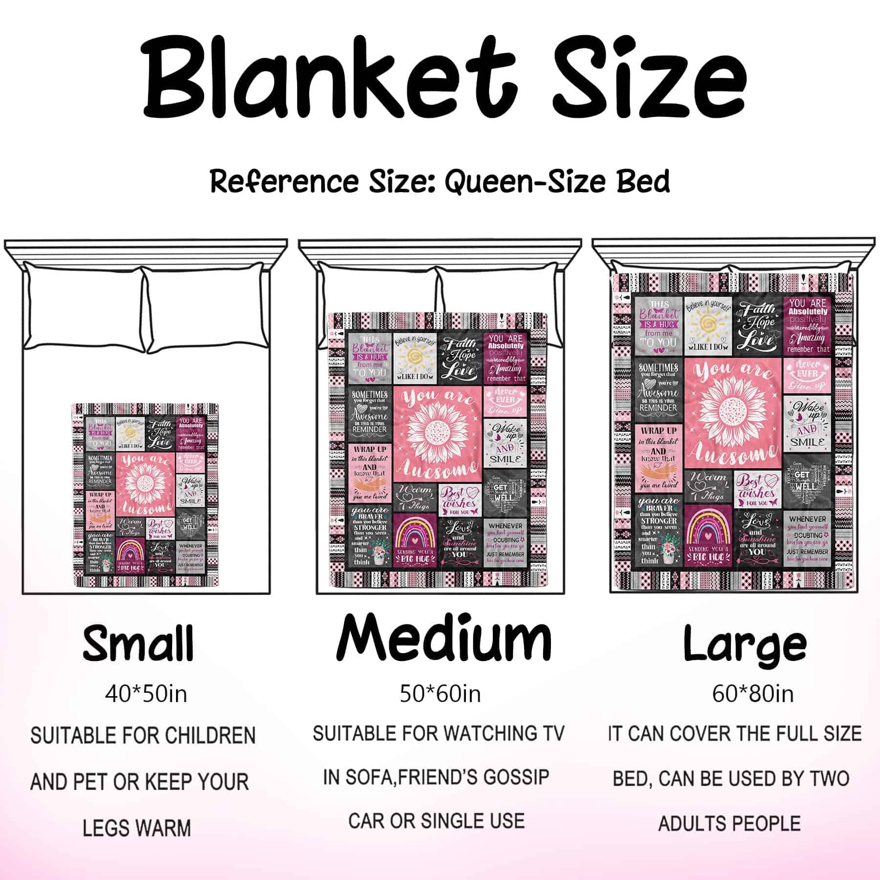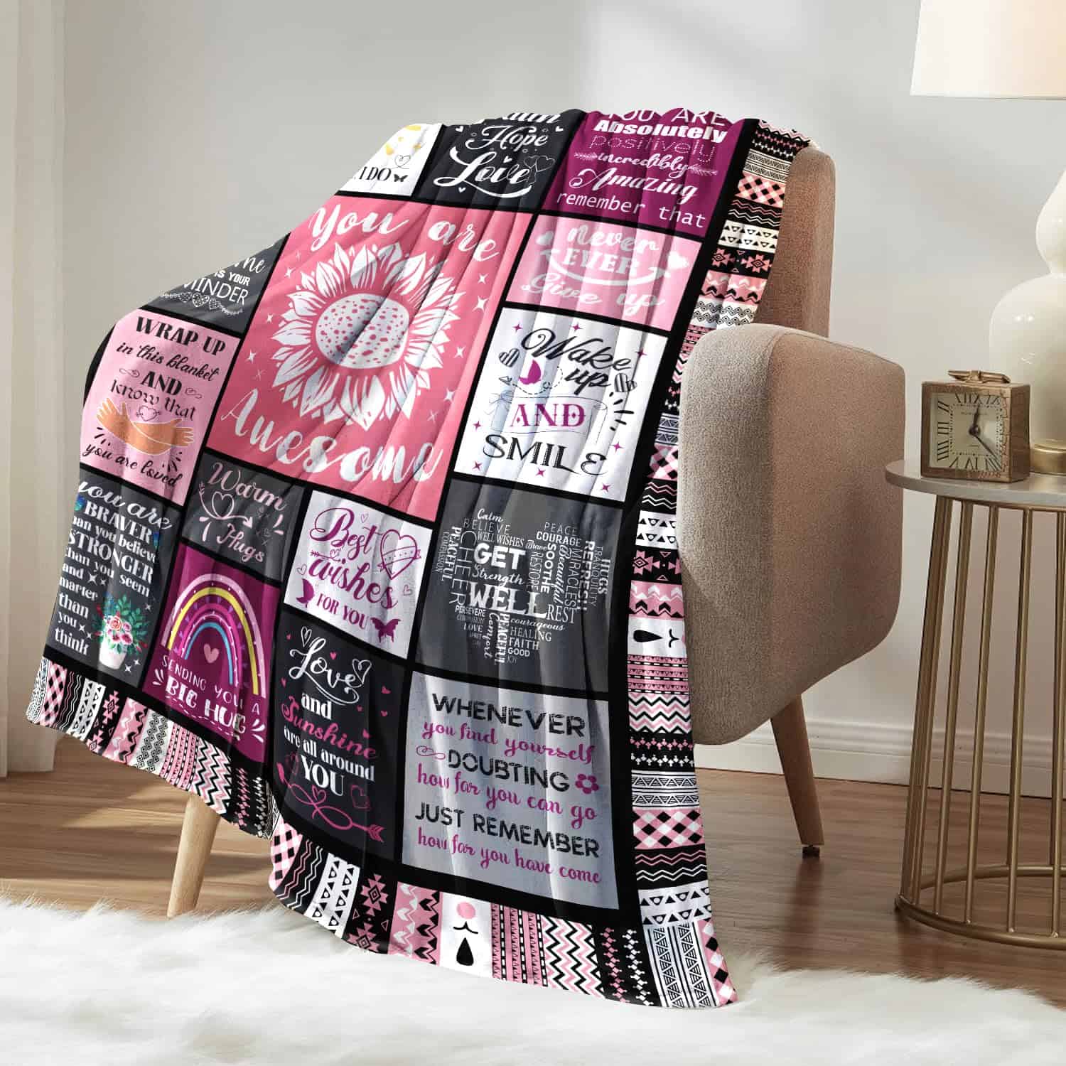 3. Regalo para Recuperarse Pronto para Mujeres: Esta manta inspiradora está impresa con palabras inspiradoras, un regalo de estímulo significativo para tu familia, amigos o compañeros de trabajo. También es una buena idea para regalos de recuperación para mujeres, regalos de simpatía, regalos espirituales para mujeres, regalos de agradecimiento para mujeres, regalos de cuidado del cáncer para mujeres. Cuando se envuelven en esta manta, es como un cálido abrazo que no solo les brinda calor, sino que también calienta sus corazones.