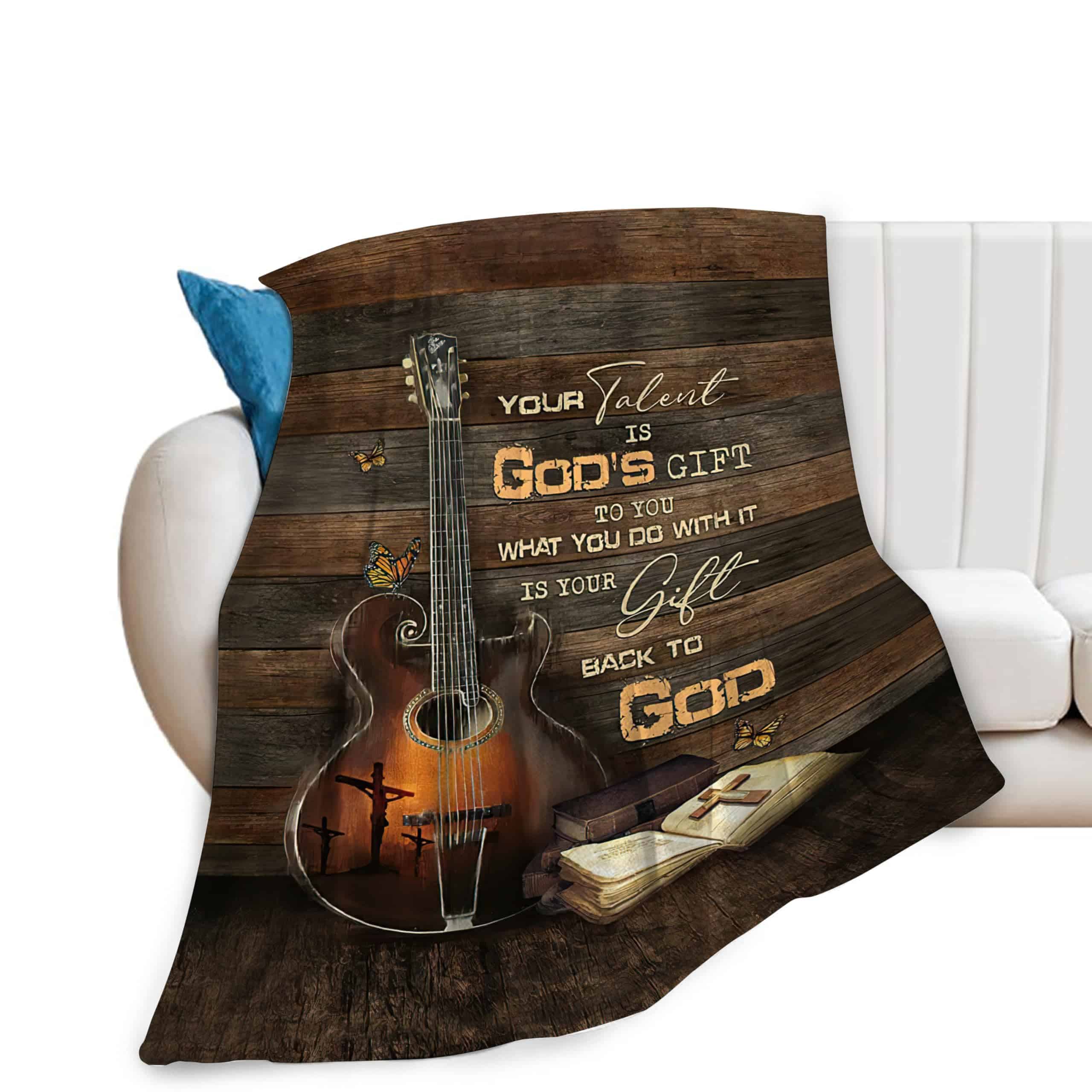 Esta Manta Temática de Guitarra Cristiana te Permite Encontrar Fácilmente tu Lugar y Destacar en Cualquier Situación, Perfecta también para Ver la Televisión por la Noche, Leer un Libro en el Sofá, Ver una Película o Charlar junto al Fuego.