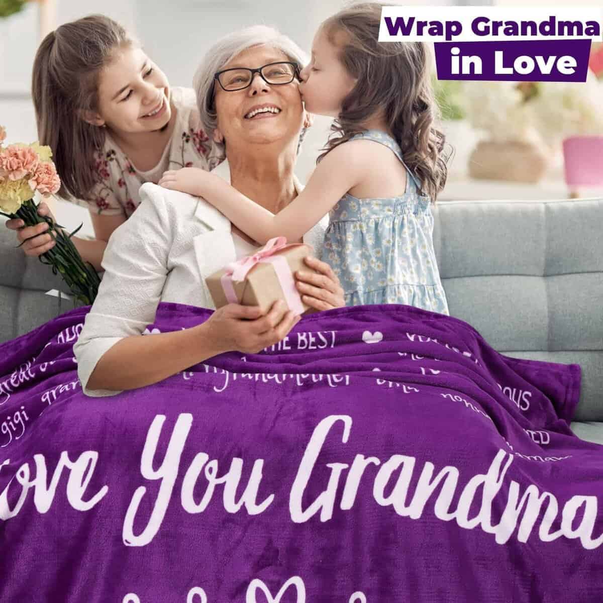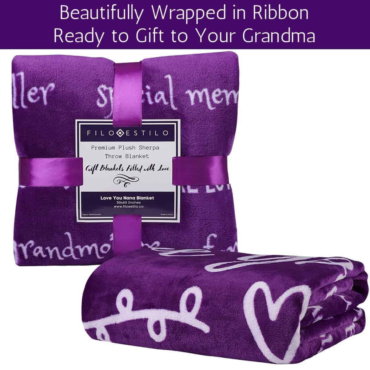 3. El cumpleaños de la Abuela todo envuelto: Las mantas suaves y acogedoras están atadas con una encantadora cinta coordinada, por lo que están listas para regalar a la Abuela en su cumpleaños, Navidad, San Valentín o simplemente para decir Te Quiero Abuela cualquier día del año.