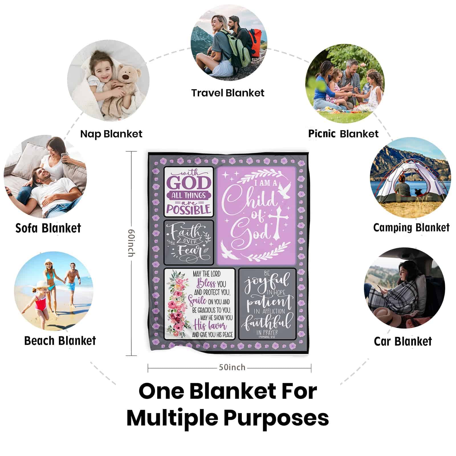 2. TAMAÑO DEL PRODUCTO IDEAL: Esta Manta Cristiana para Mujeres está disponible en tres tamaños: 40×50 pulgadas, 50×60 pulgadas y 60×80 pulgadas. Es adecuada para todos, incluidos personas mayores, adolescentes, niños, hombres y mujeres, niños y niñas Regalos Cristianos para Mujeres Fe.
