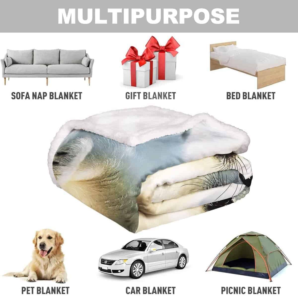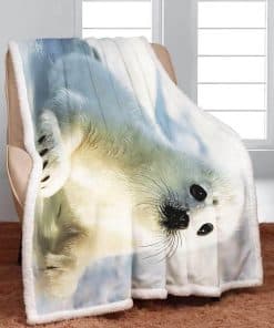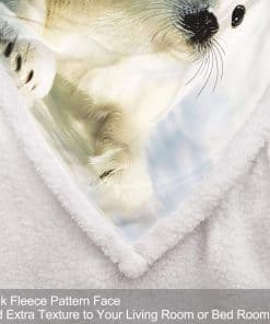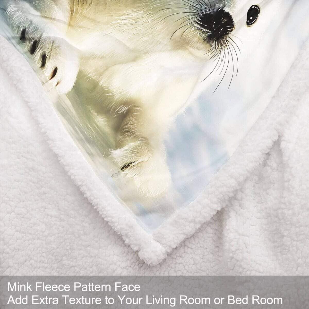 Manta de Sherpa Blanca de 60″x80″ con Diseño de Foca Blanca