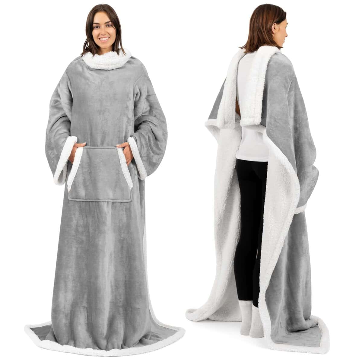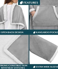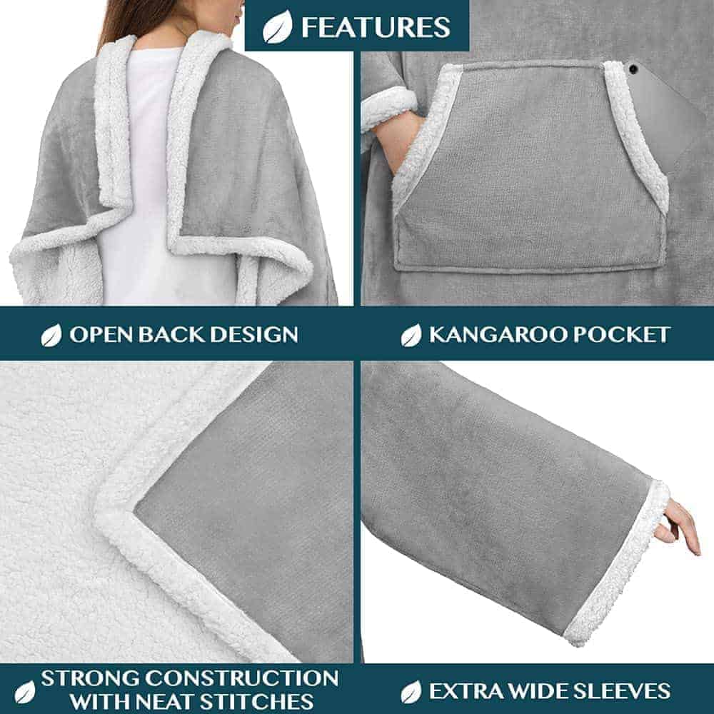 1. Manta envolvente de sherpa con mangas: Nuestra manta de sherpa con mangas y bolsillo es perfecta para adultos, mujeres, hombres o personas mayores para mantenerse cálidos y acogedores, y para mantener las manos libres mientras ven la televisión, descansan en el sofá/cama, juegan o leen un libro. Extra gruesa, elegante y cálida, la envolvente de manta de franela suave y súper suave para mujeres es funcional y un must-have para mantener el cuerpo completo manteniendo pullover adecuado para una experiencia durante todo el año.