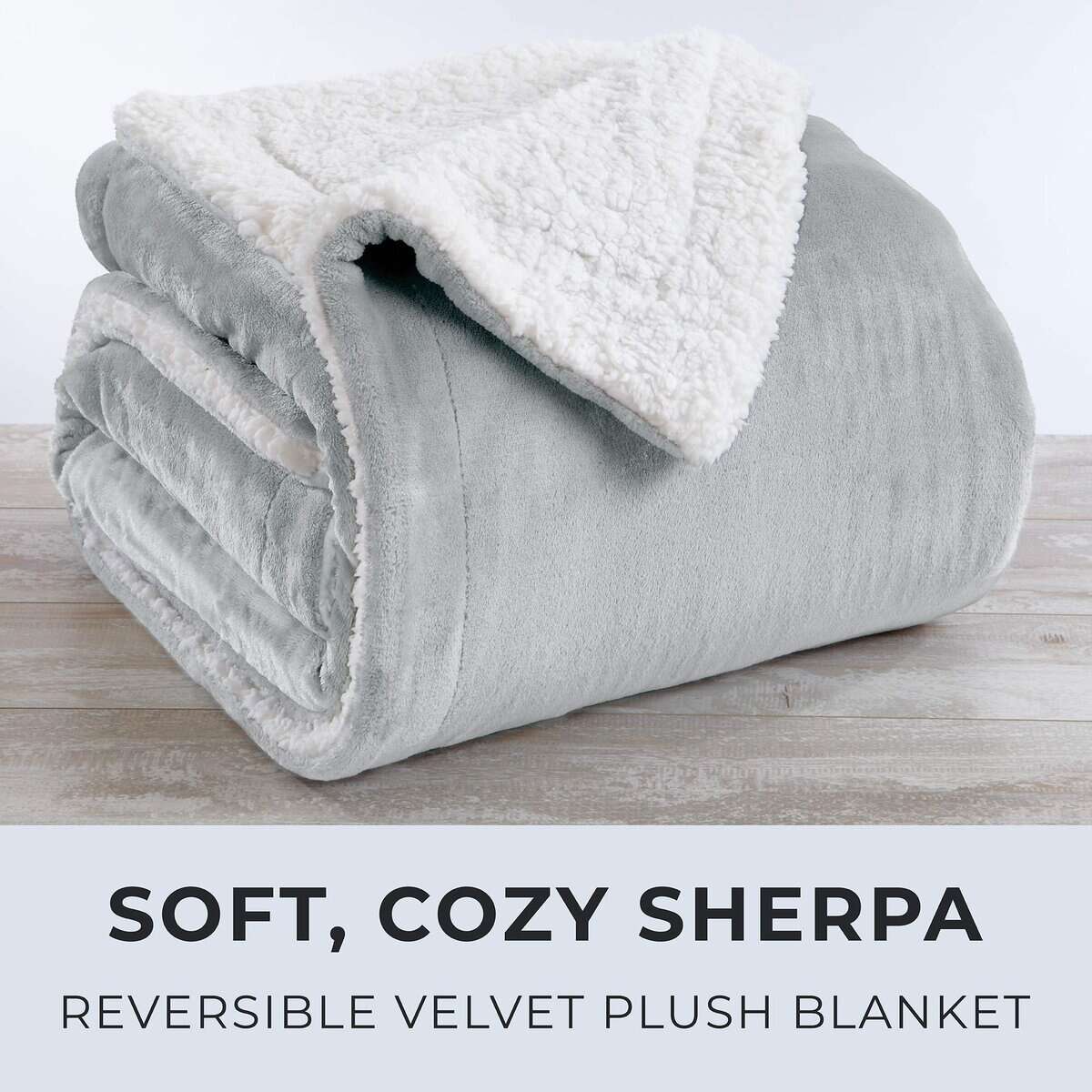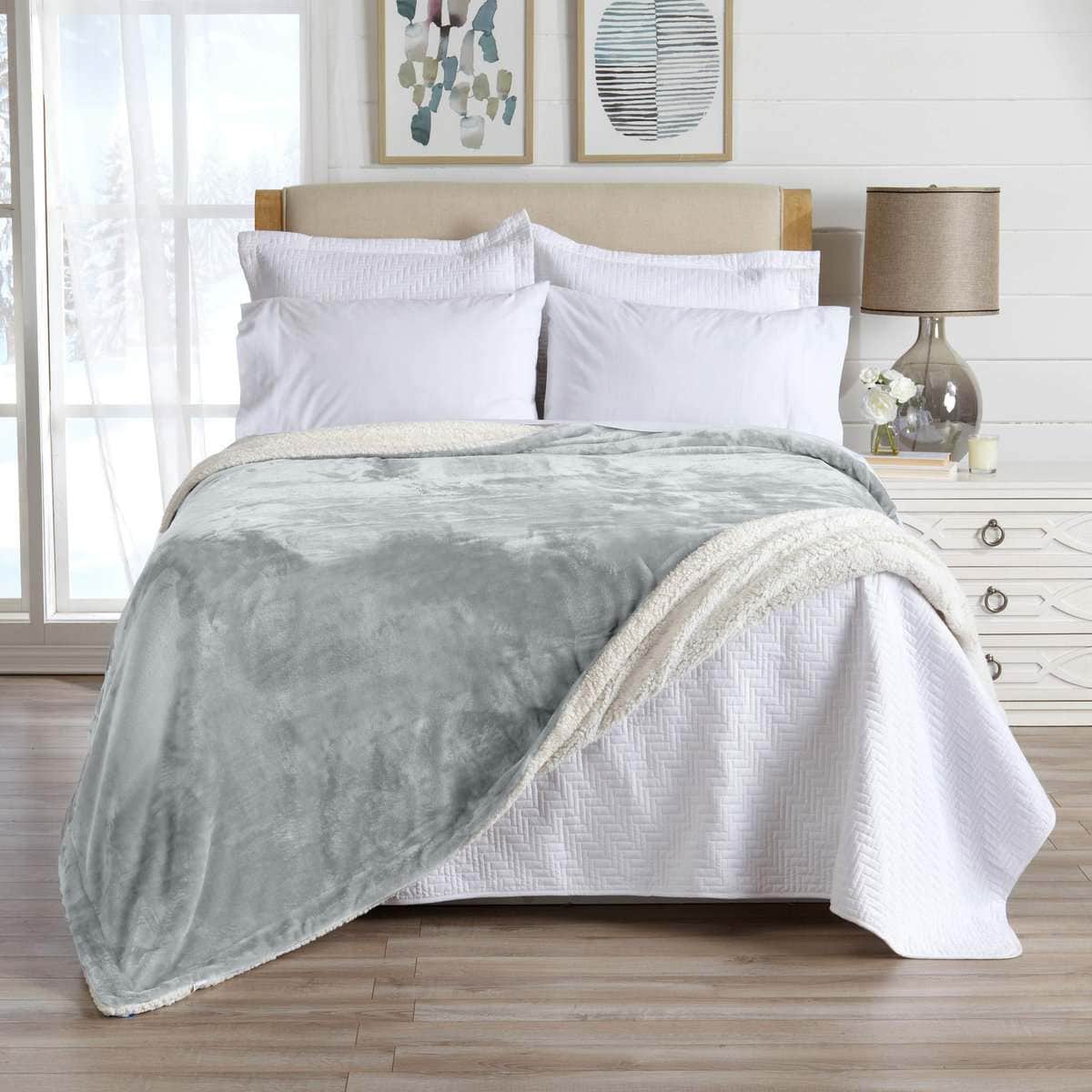 Manta de Sherpa Fleece y Terciopelo de Lujo para Rey, Gris