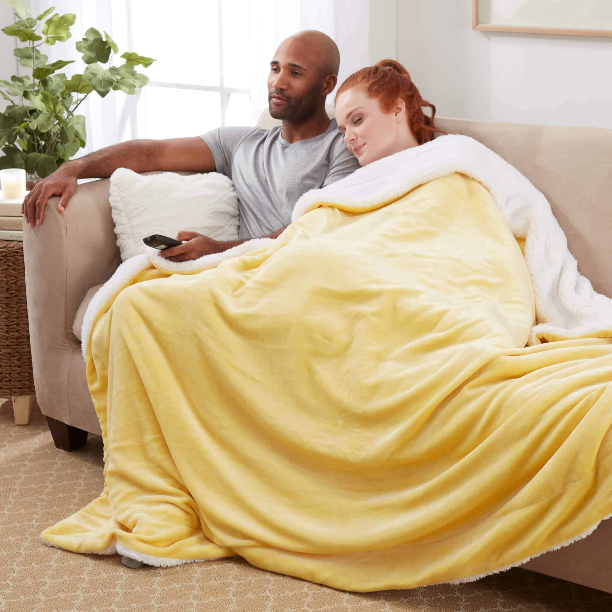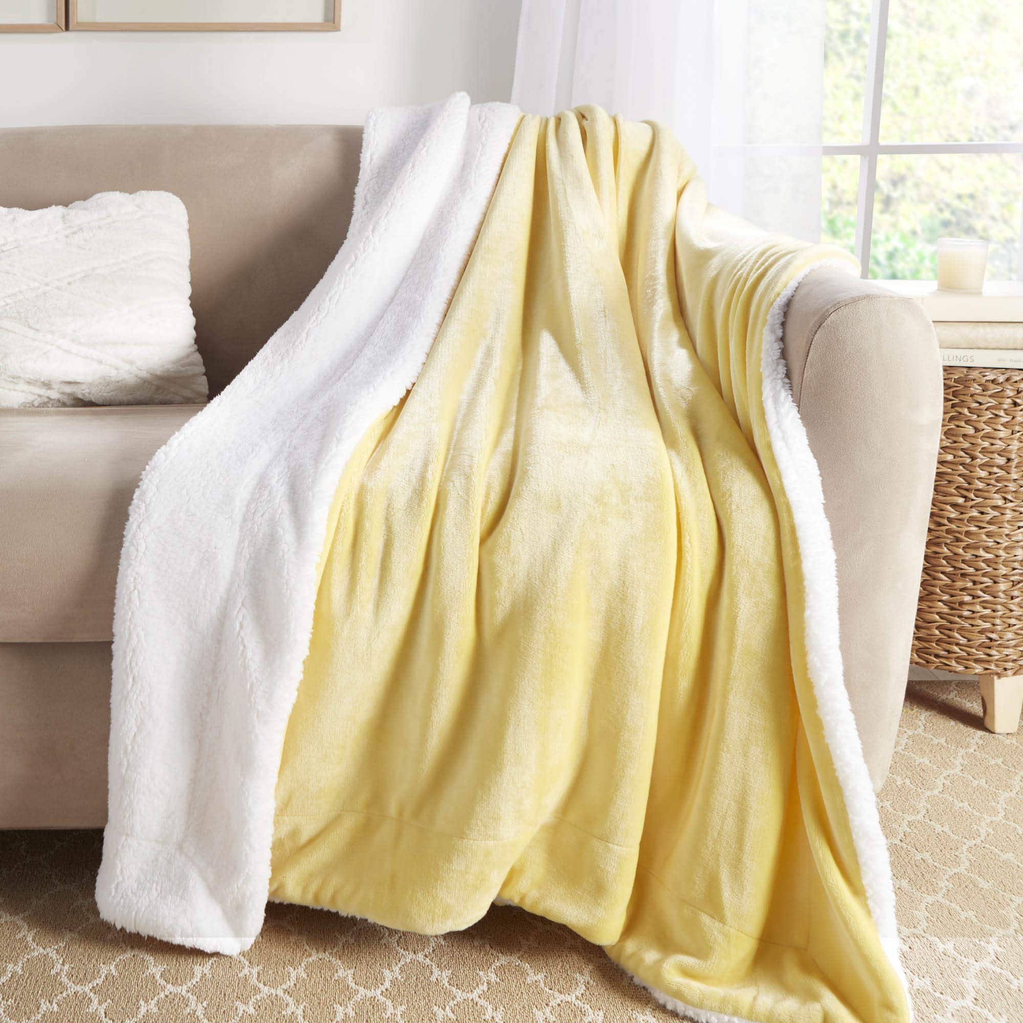 Manta de Sherpa Genteele Súper Suave -Amarillo/Blanco