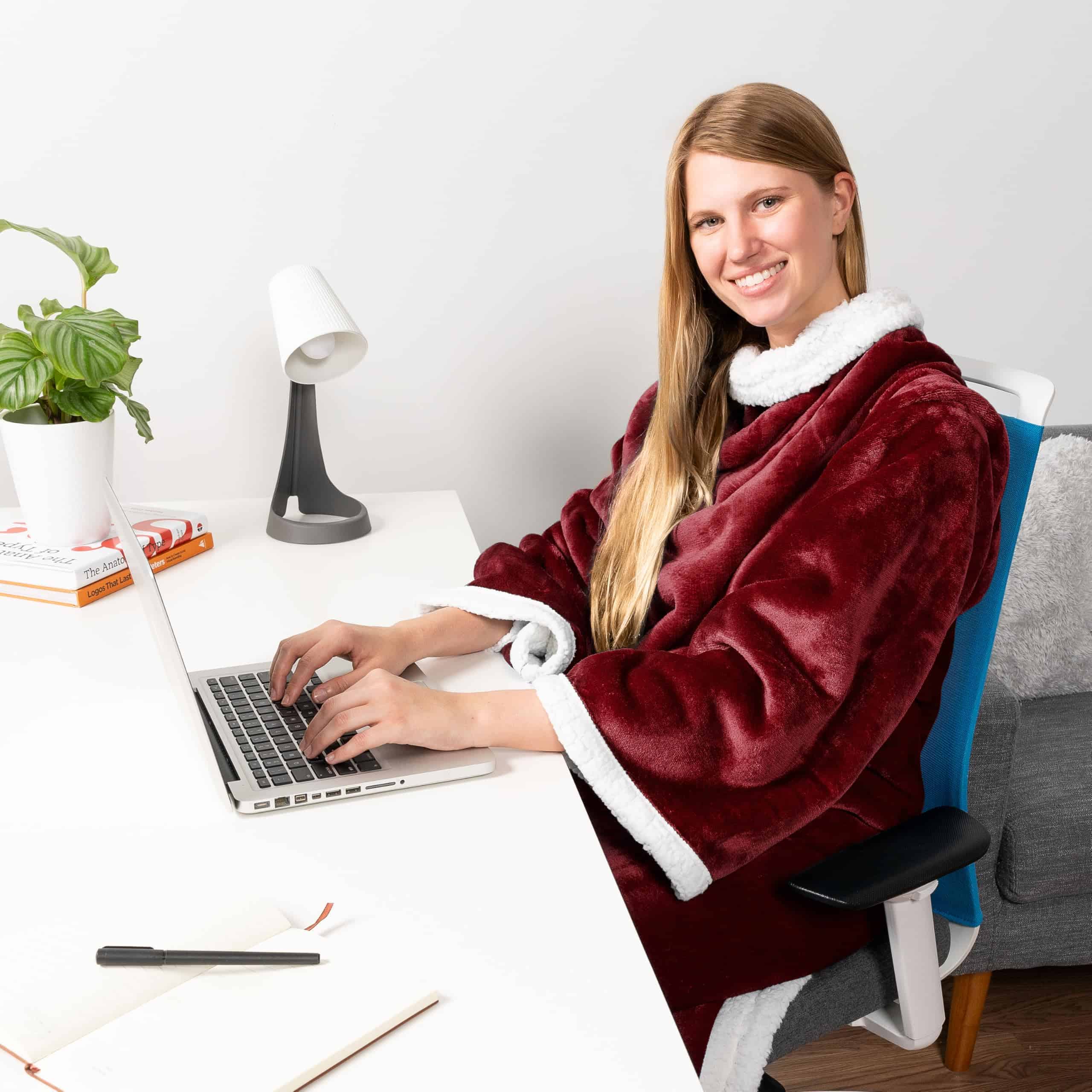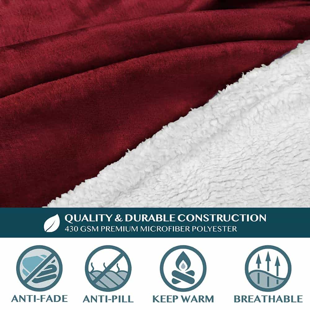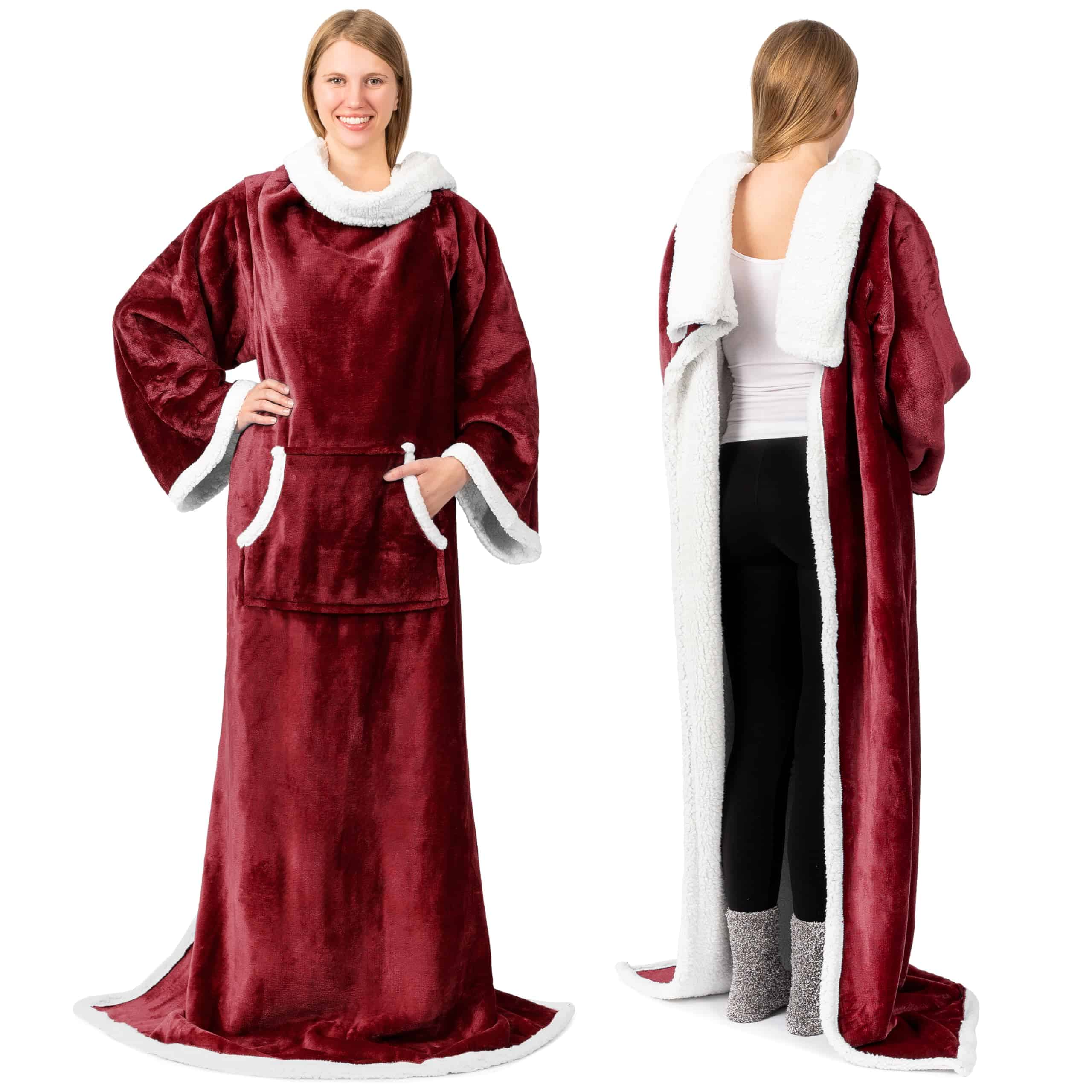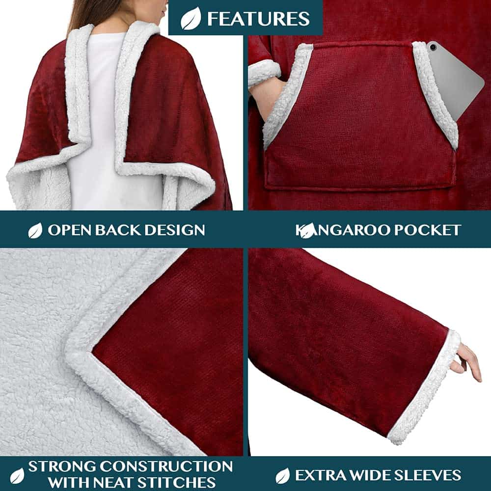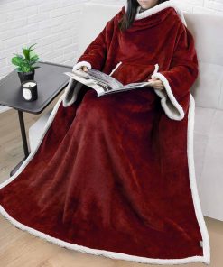 Manta de sherpa premium PAVILIA con mangas -Rojo Borgoña