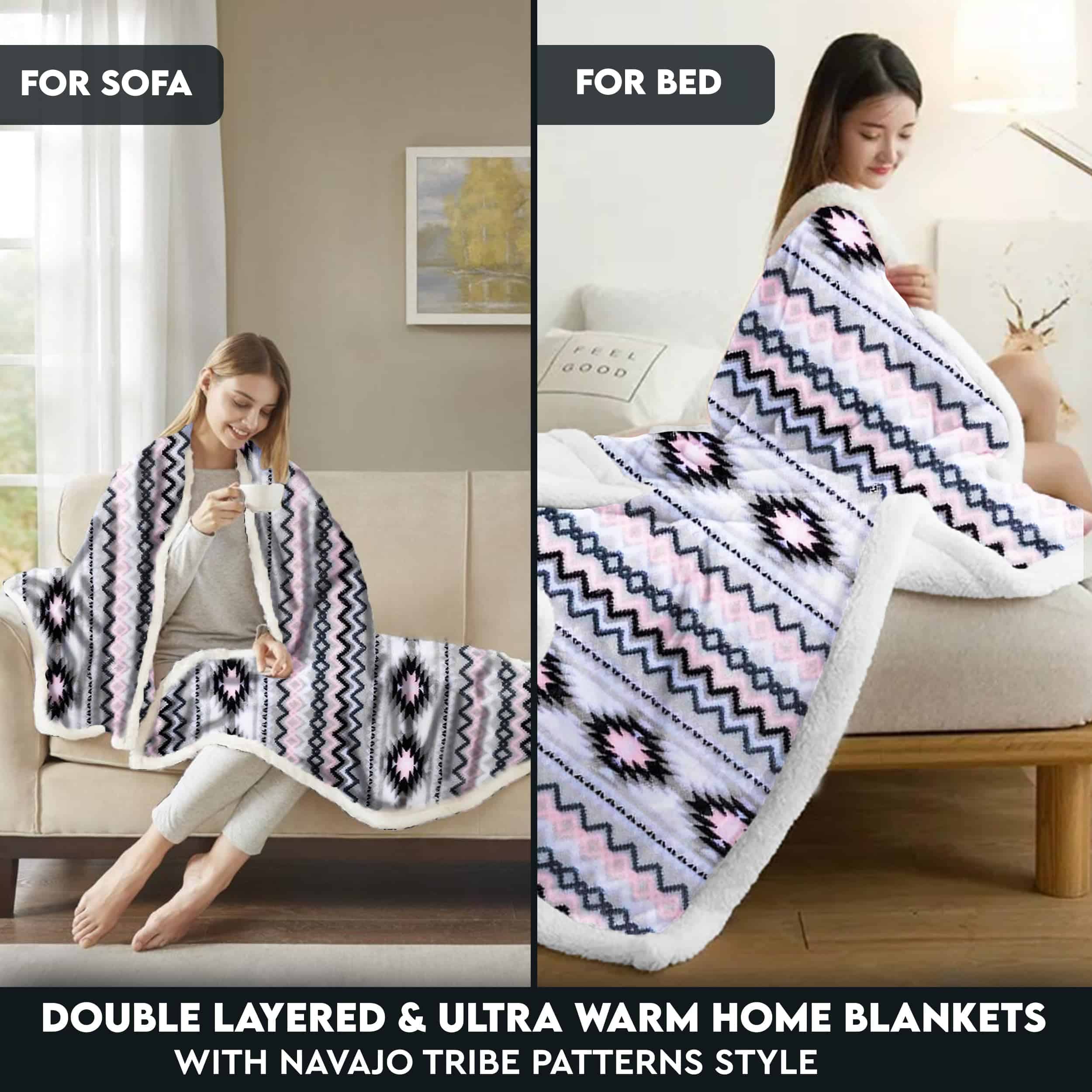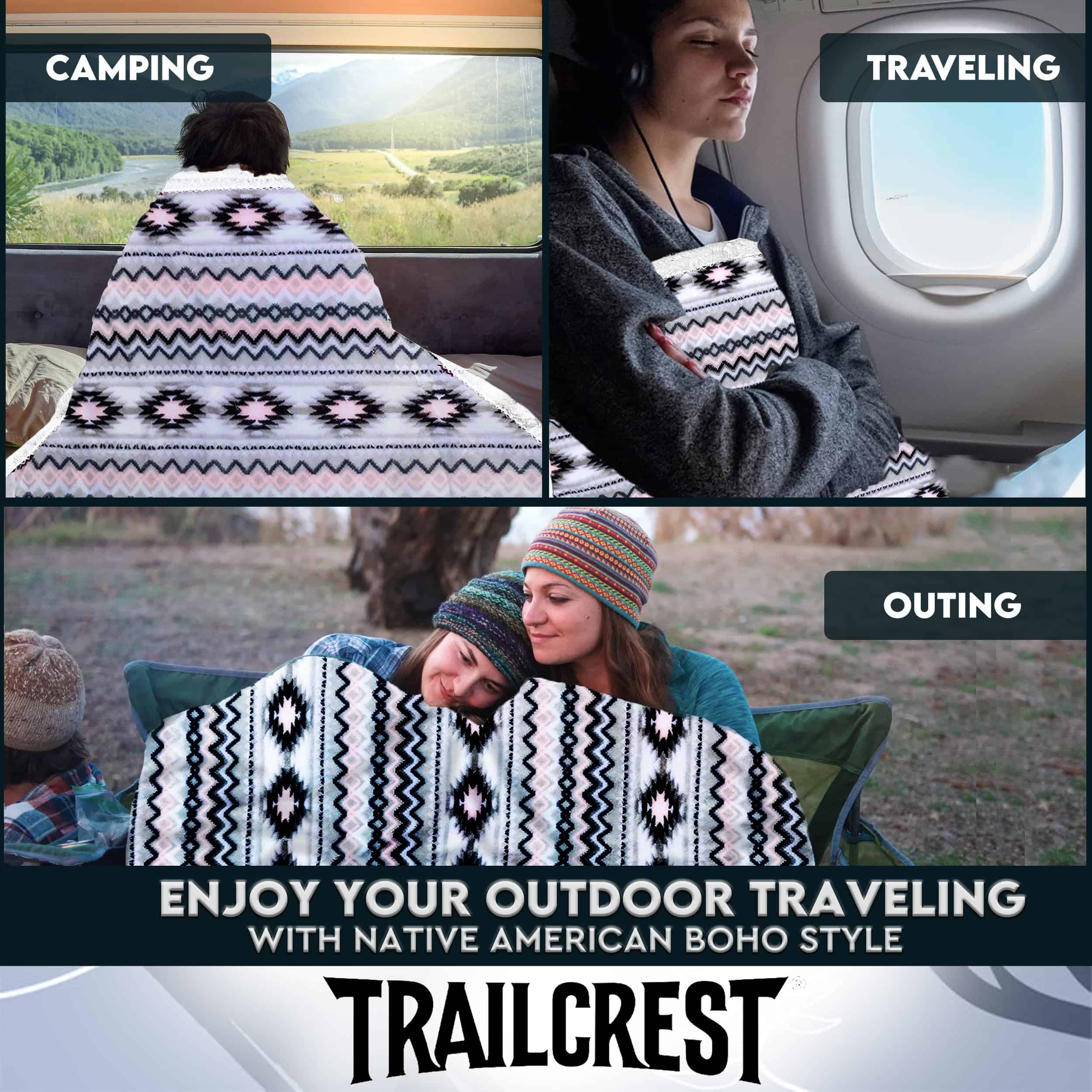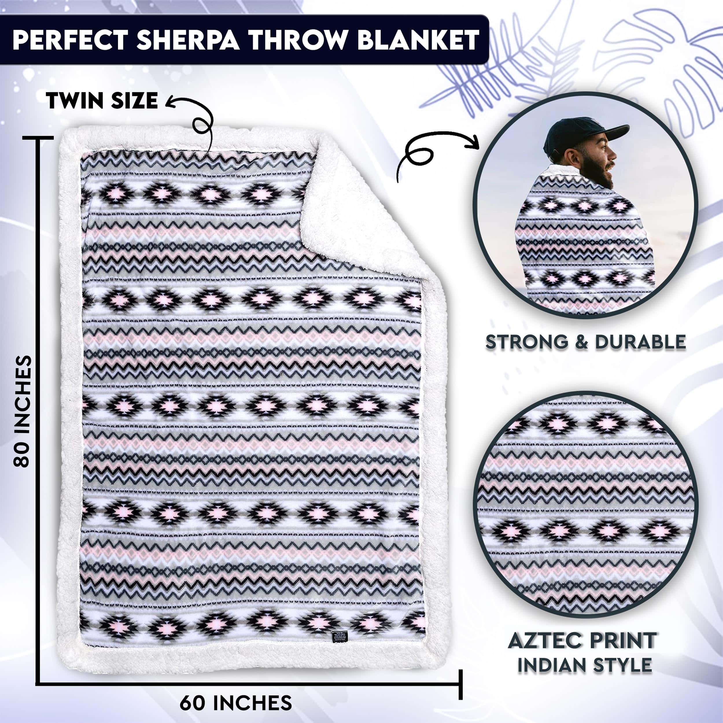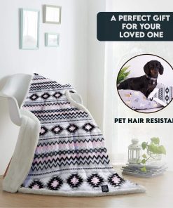 Esta manta de Sherpa TrailCrest es perfecta para aquellos que buscan comodidad y estilo. Con un estampado azteca reversible en negro, gris y rosa, esta manta es ideal para usar en camping, sofá y cama. Además, es lavable a máquina para mayor comodidad. ¡No te pierdas la oportunidad de tener esta magnífica manta en tu hogar!