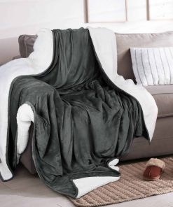 1. Manta de felpa Sherpa – Elegante manta de felpa Sherpa con un lujoso frente de franela y un respaldo de Sherpa peludo. Disponible en colores atractivos para combinar con la decoración de tu hogar y habitación.