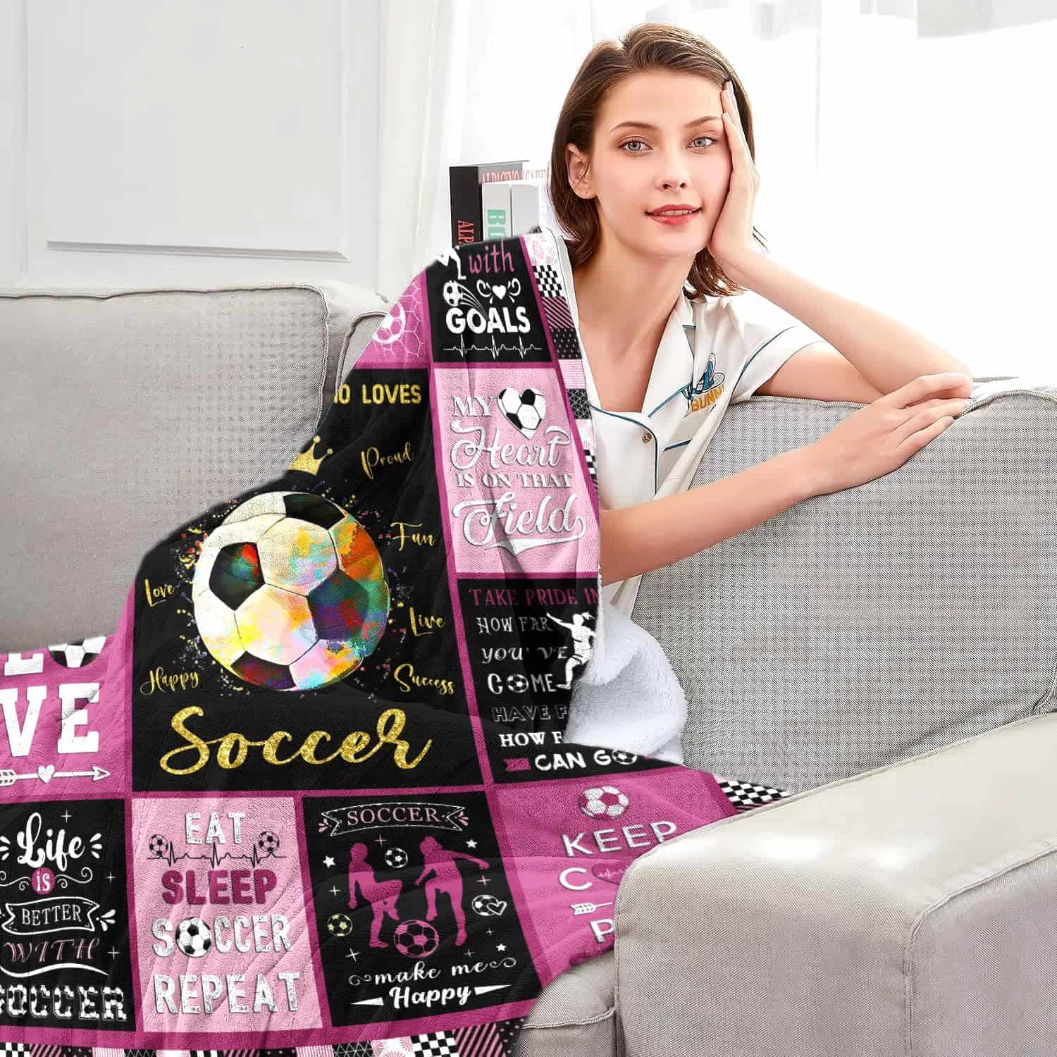 Manta de Soccer Regalos para Niñas Mujeres Ultra Suave