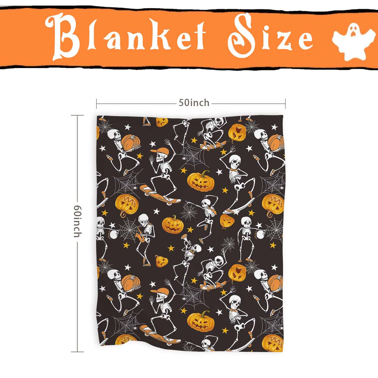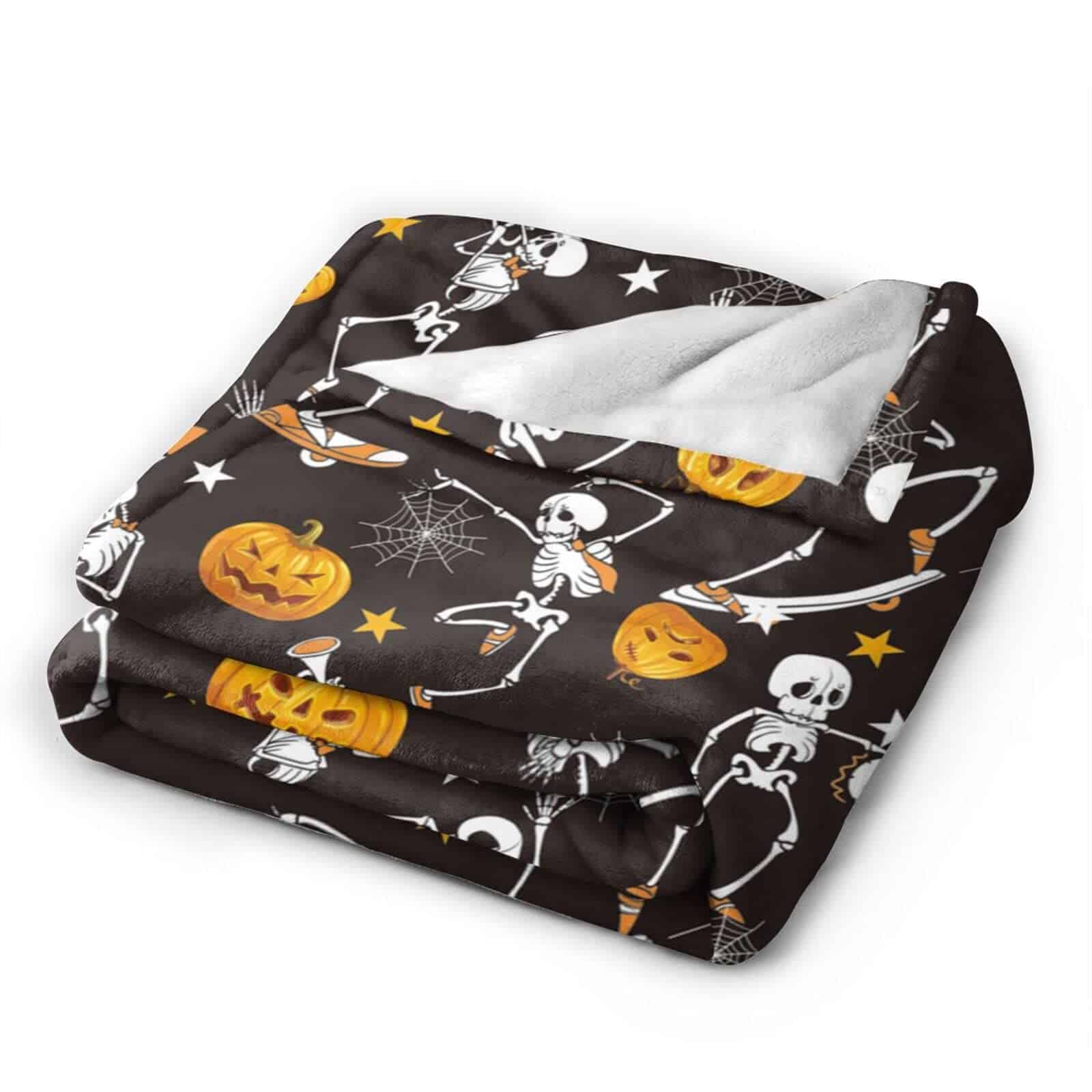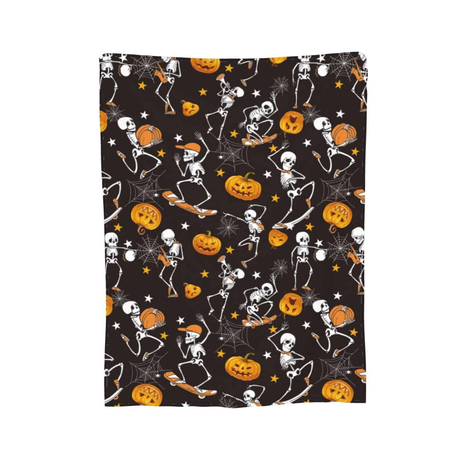 4. Gran Regalo: La Manta de Calabaza es el regalo perfecto para que los niños esperen con anticipación y se acurruquen con ella, para sostenerla todas las noches mientras duermen; las calabazas de otoño también son excelentes para adultos como decoración de arte en el hogar, mantas de Halloween para la decoración del hogar, también es un bonito regalo para los fanáticos de los esqueletos.