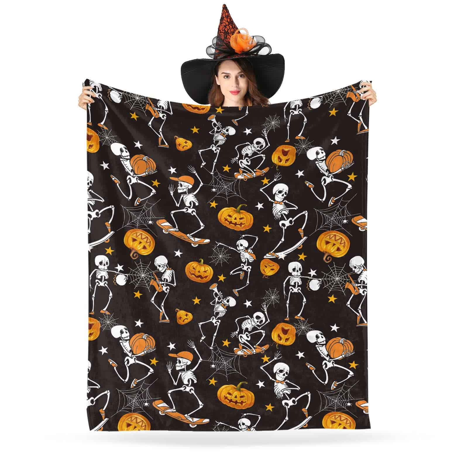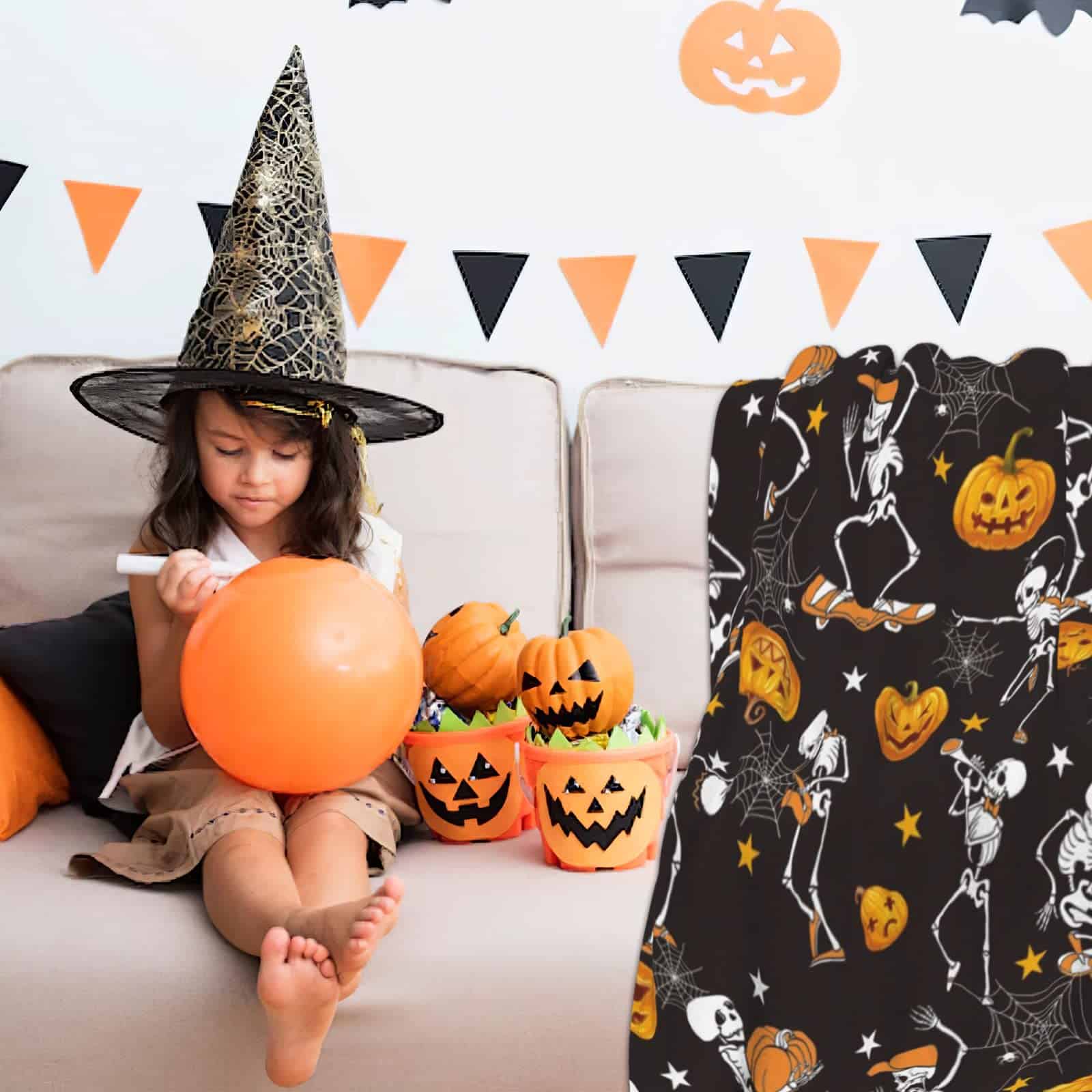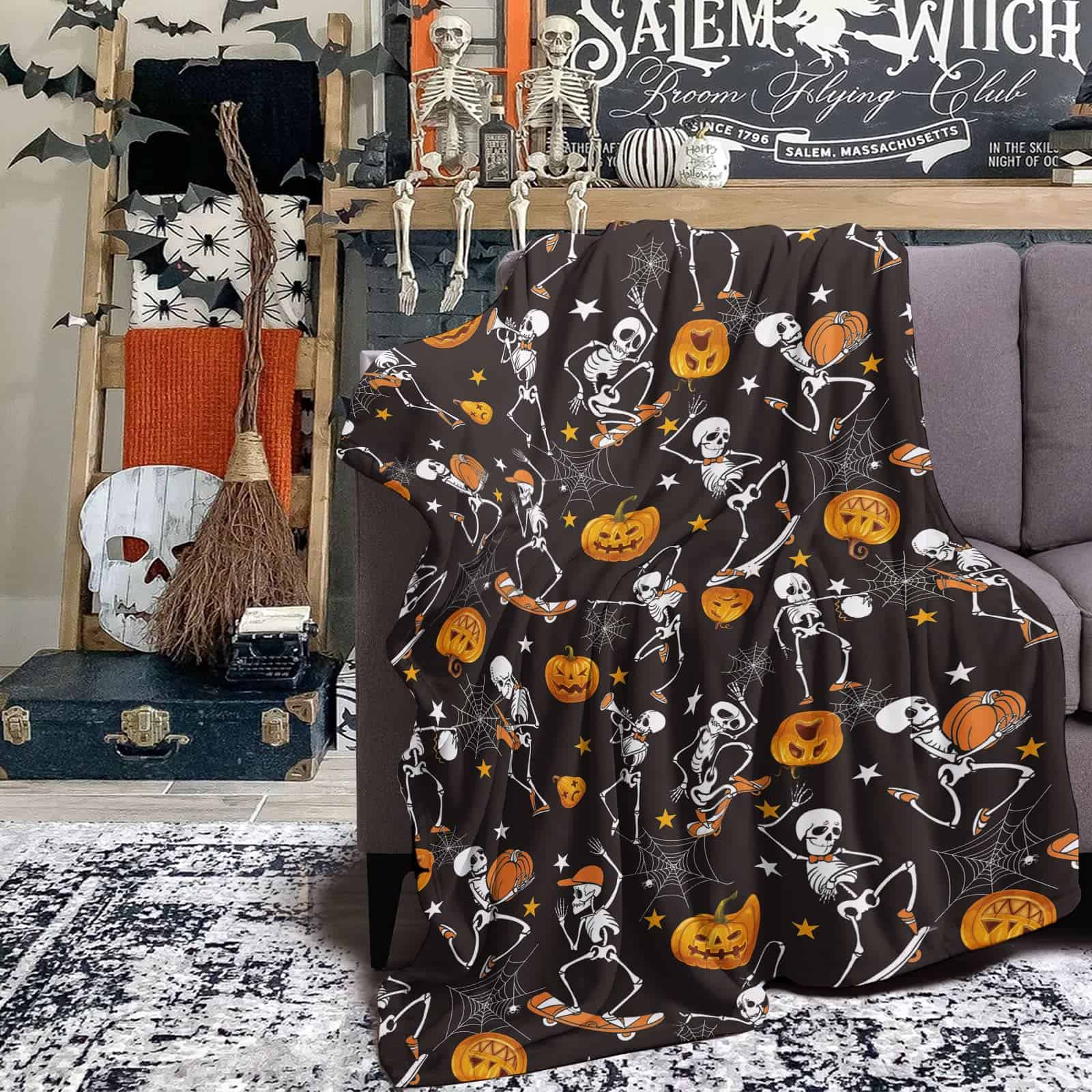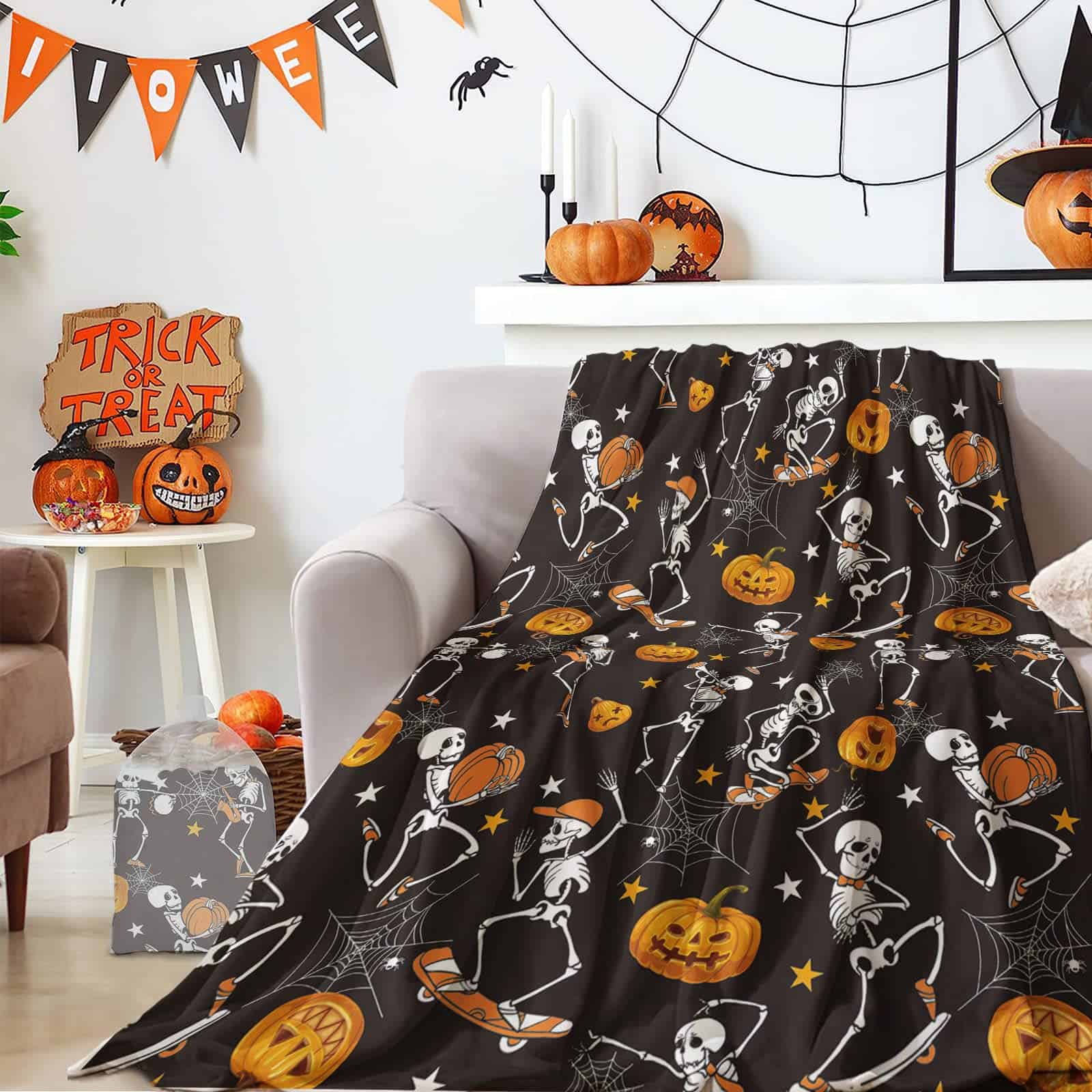 4. Gran Regalo: La Manta de Calabaza es el regalo perfecto para que los niños esperen con anticipación y se acurruquen con ella, para sostenerla todas las noches mientras duermen; las calabazas de otoño también son excelentes para adultos como decoración de arte en el hogar, mantas de Halloween para la decoración del hogar, también es un bonito regalo para los fanáticos de los esqueletos.