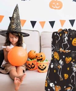 1. Diseño de Calaveras y Calabazas: La Manta de Halloween es suave en ambos lados, con un diseño en colores brillantes y cómoda al tacto, perfecta para abrigarse en el sofá viendo la televisión o mantenerse caliente junto a nuestra Manta de Campo de Otoño, la manta perfecta de otoño en el sofá.