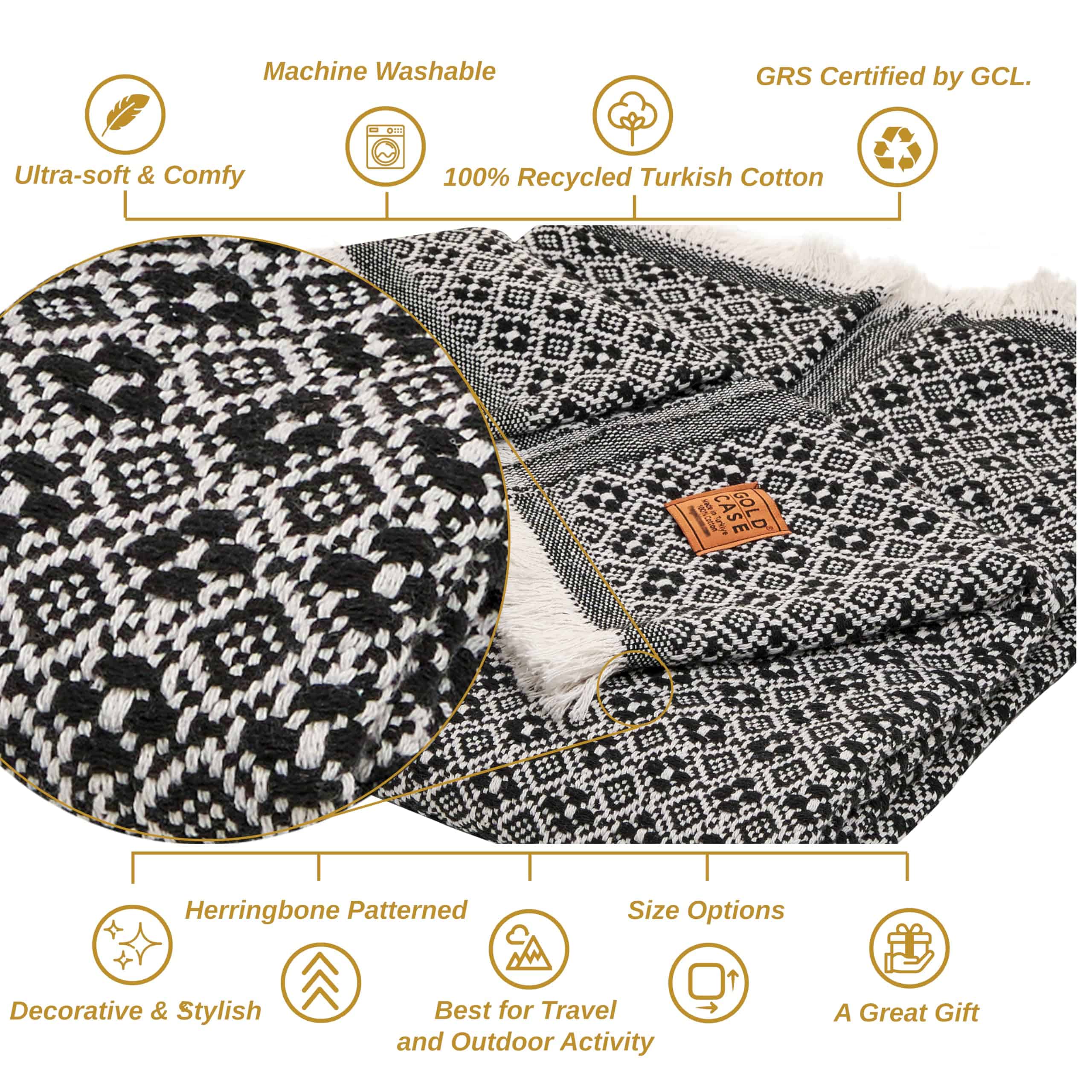 Fabricadas con 100% de algodón turco reciclado y luciendo una estética atemporal de granja, nuestras mantas suaves y mantas no se tratan solo de estilo, es un guiño a la vida sostenible. El diseño de flecos naturales único agrega un toque de encanto rústico, convirtiéndolo en un compañero práctico para picnics, campamentos o simplemente para agregar un toque de elegancia inspirada en la naturaleza a tu hogar. Acepta el calor de las mantas y mantas de sofá y las vibraciones que traen.