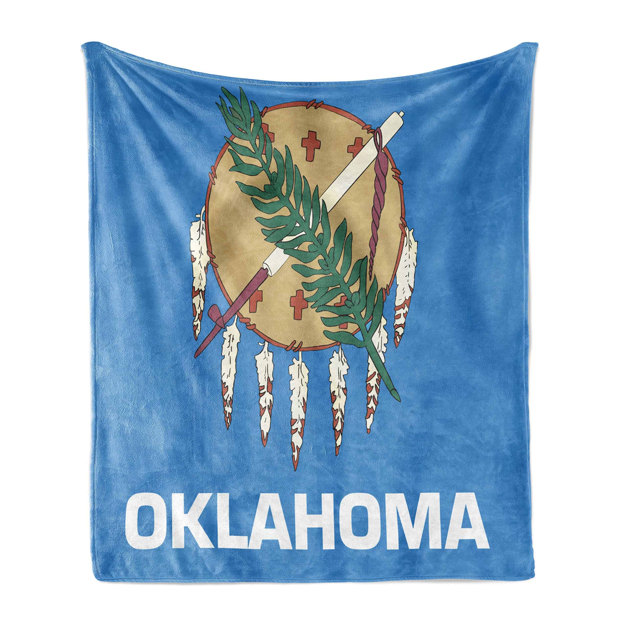 Manta de sofá Lunarable American, diseñada con la bandera de Oklahoma que incluye una rama de olivo ceremonial y 6 cruces, creando un estampado de composición único. Esta pieza de acento suave de felpa mide 60″ x 80″ y es perfecta para proporcionar una cobertura cálida mientras tiene un toque suave y gentil. Adecuada para todas las estaciones del año. Fabricada con tecnología de impresión digital de última generación, solo un lado está impreso. Lavable a máquina en ciclo frío, secar colgando. Con el cuidado adecuado, no se desvanece ni se rasga.