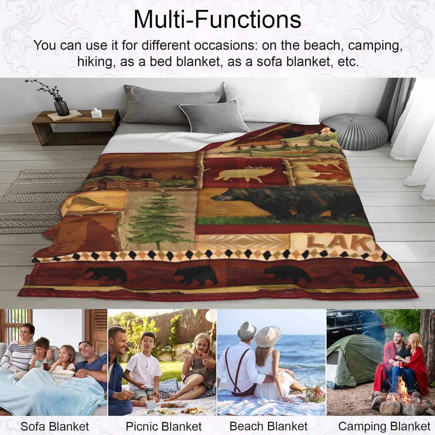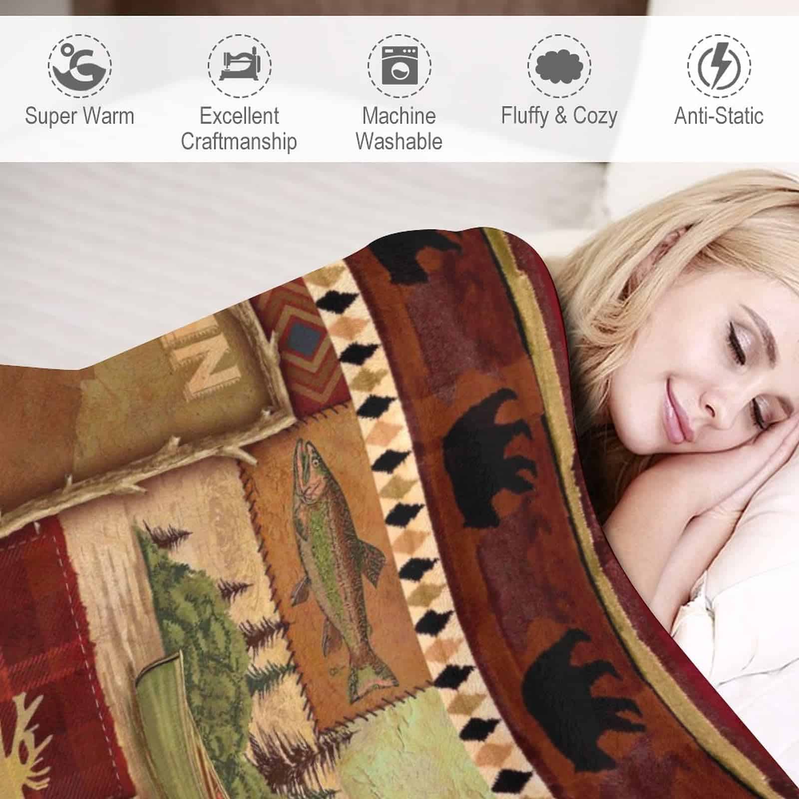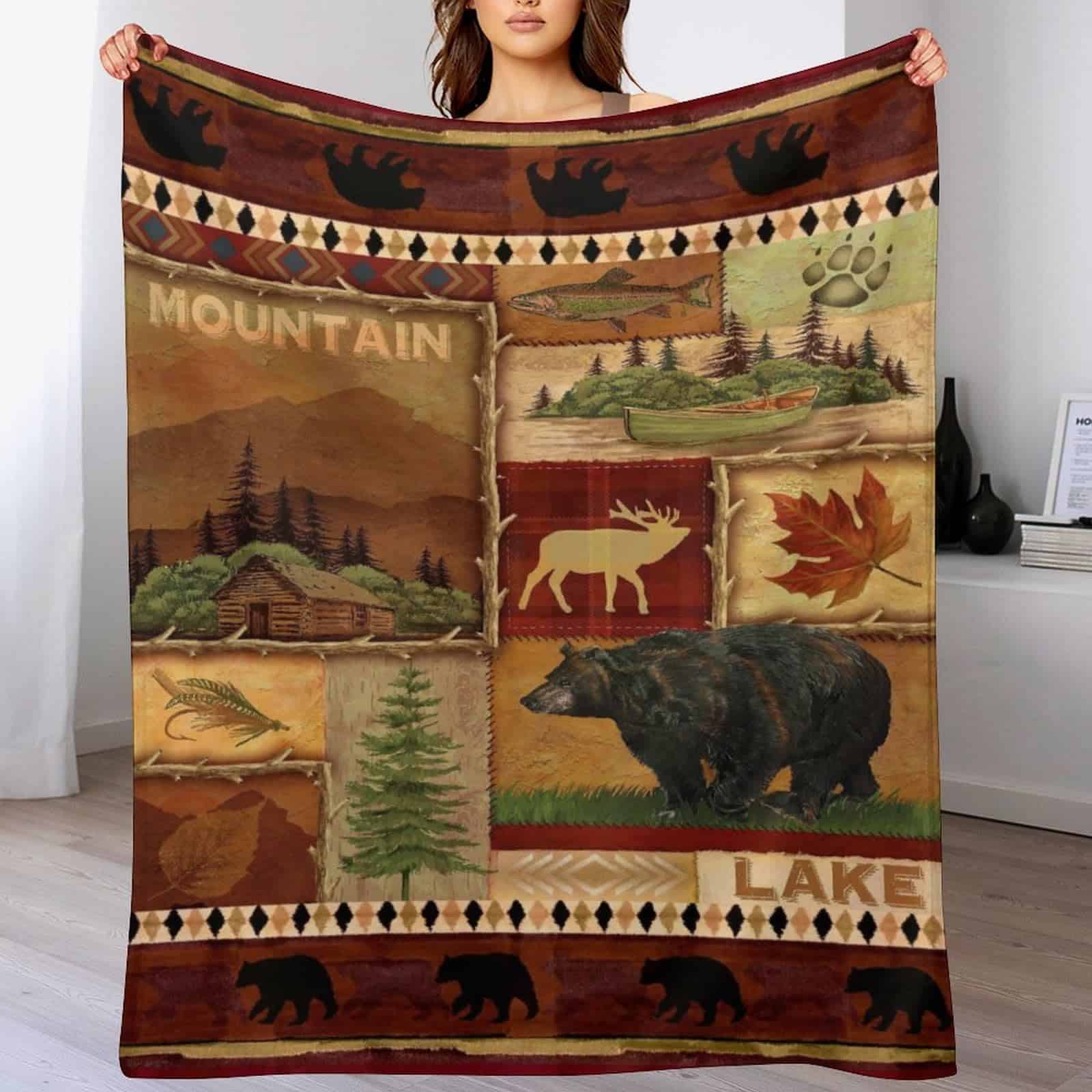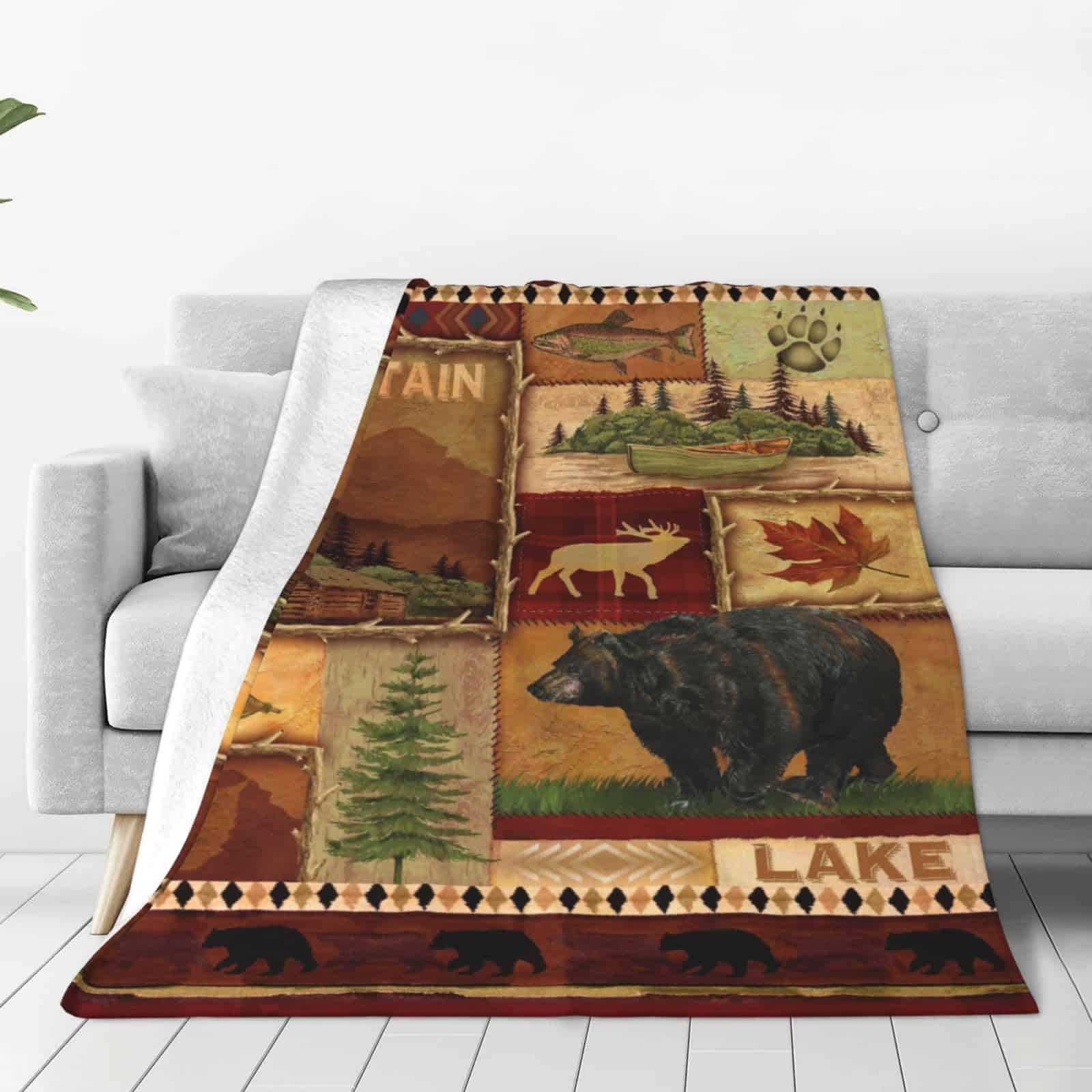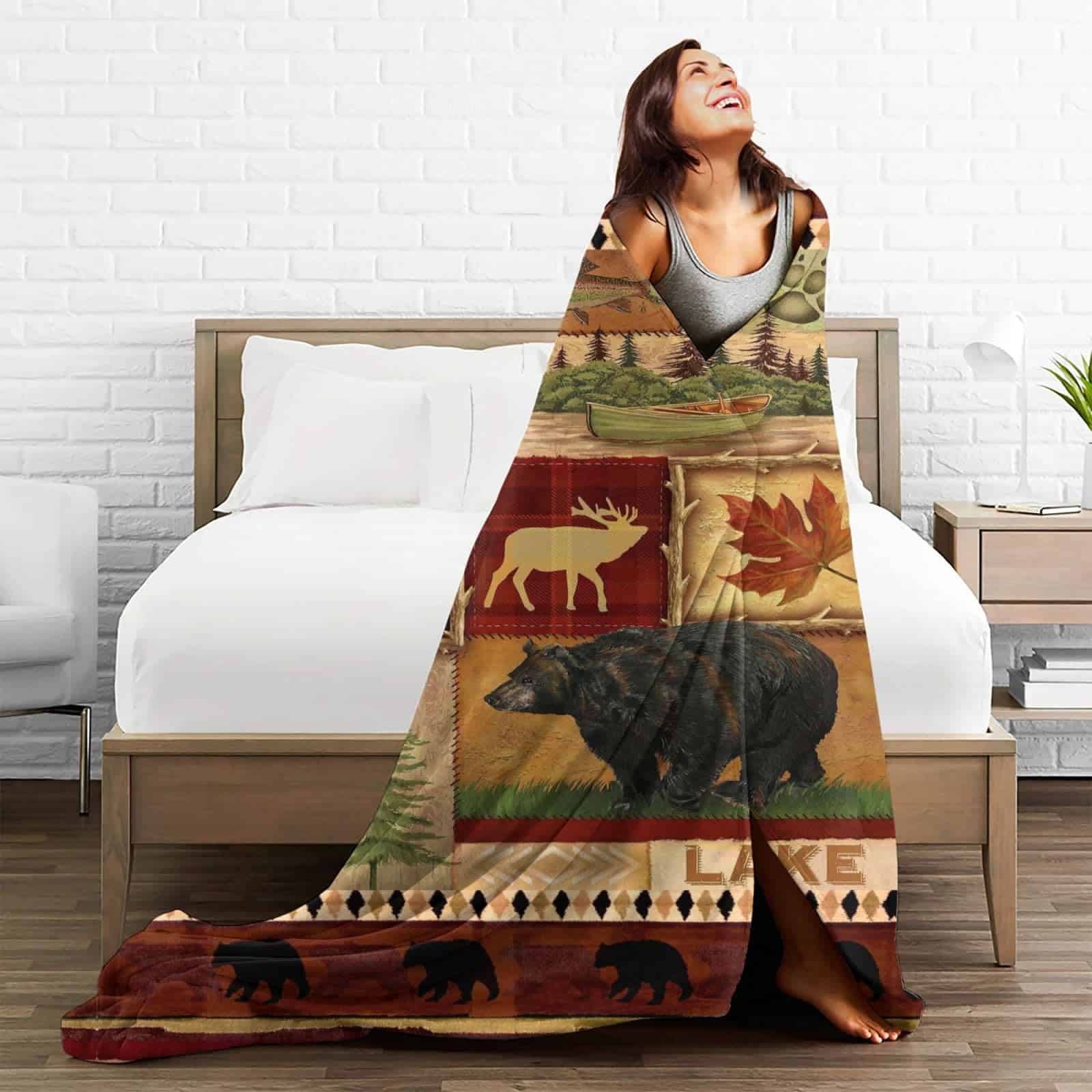Manta de sofá Oso Ciervo Alce Rústico Lodge, Suave, Cálida,