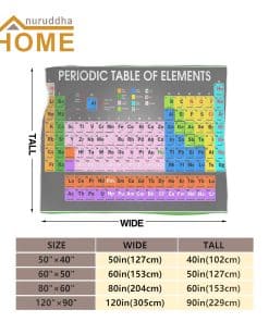 La manta de tabla periódica de los elementos proporciona una comodidad inigualable y calidez en cualquier momento del año, ya sea en interiores o exteriores. Hecha de franela de alta calidad y anti-pelusas, esta manta de doble cara es un regalo perfecto para amigos, familiares o para ti mismo. Con un diseño único y colores vibrantes, esta manta le dará un toque elegante a tu hogar y hará que cualquier habitación sea más acogedora. Con múltiples tamaños disponibles, encontrarás la manta perfecta para ti. Además, su fácil cuidado y durabilidad hacen que sea una opción conveniente para usar en casa o llevarla contigo en tus viajes.