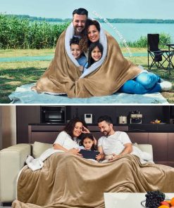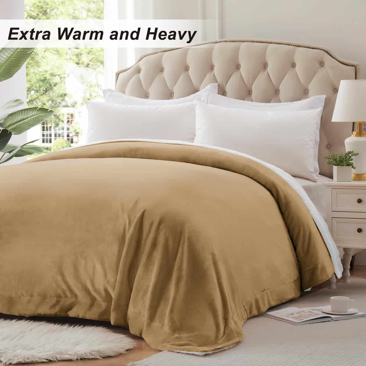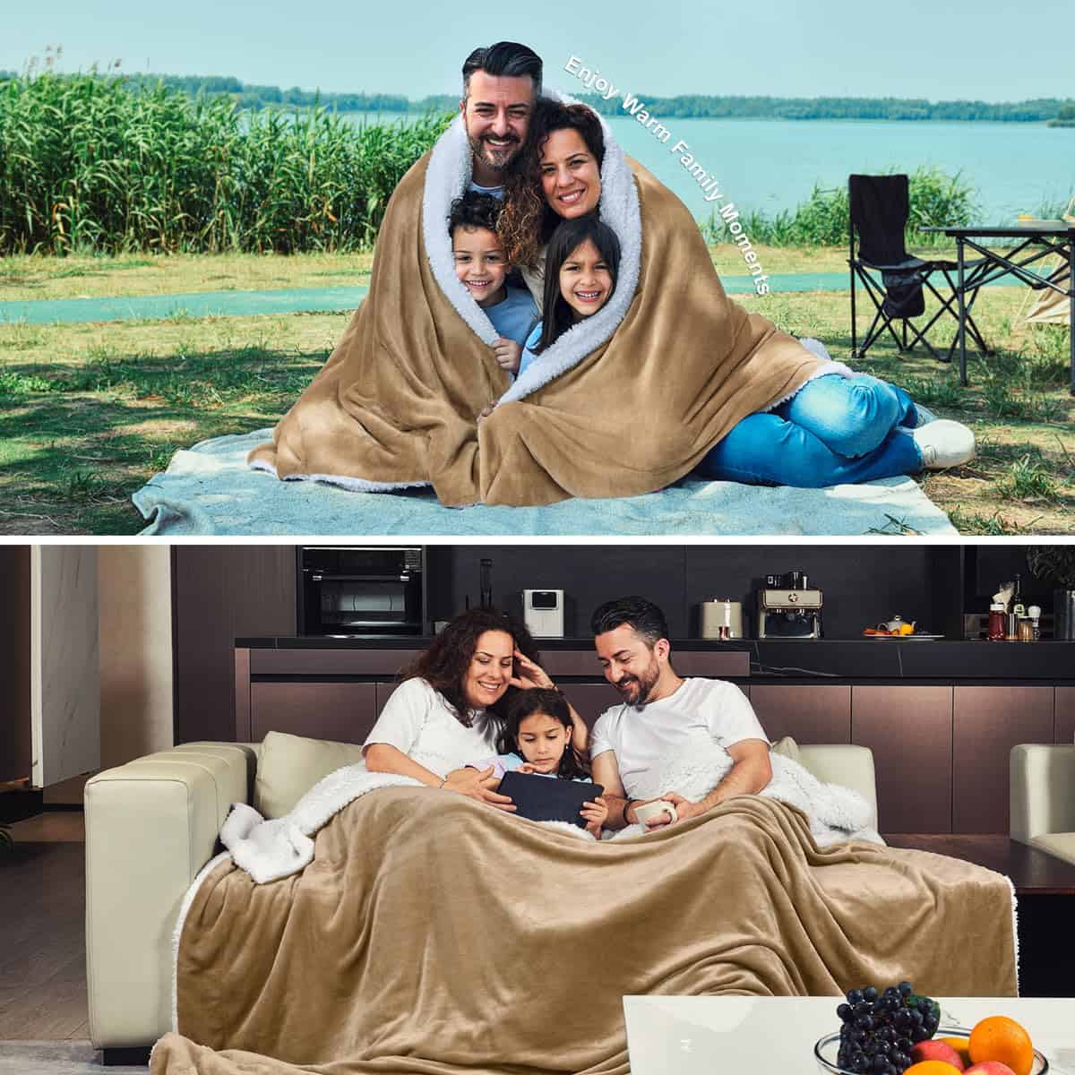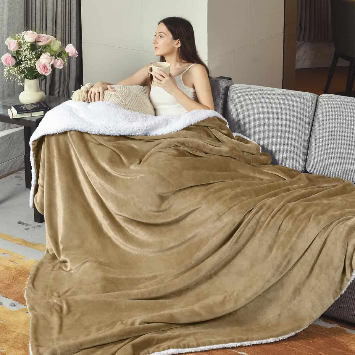 Manta de Tamaño Queen KAWAHOME Sherpa Fleece -Camel