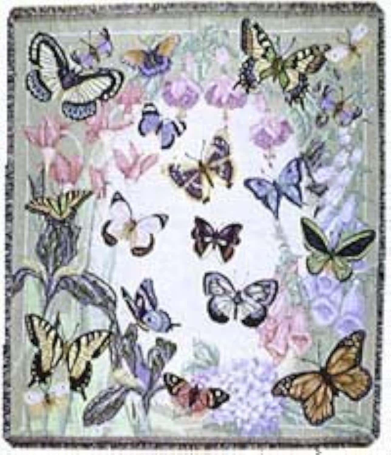 Esta hermosa manta de tapiz siempre ha sido una de las más vendidas de la colección Garden Party de Simply Home. Ilustra una variedad de mariposas con un borde verde claro. Tejida con algodón de la mejor calidad, fabricada completamente en Estados Unidos. Esta manta tiene un cojín de tapiz a juego (número de artículo PSTL-32); un tapiz de pared a juego (número de artículo WHSTL-32); y un tirador de campana de tapiz a juego (número de artículo BPSTL-32).