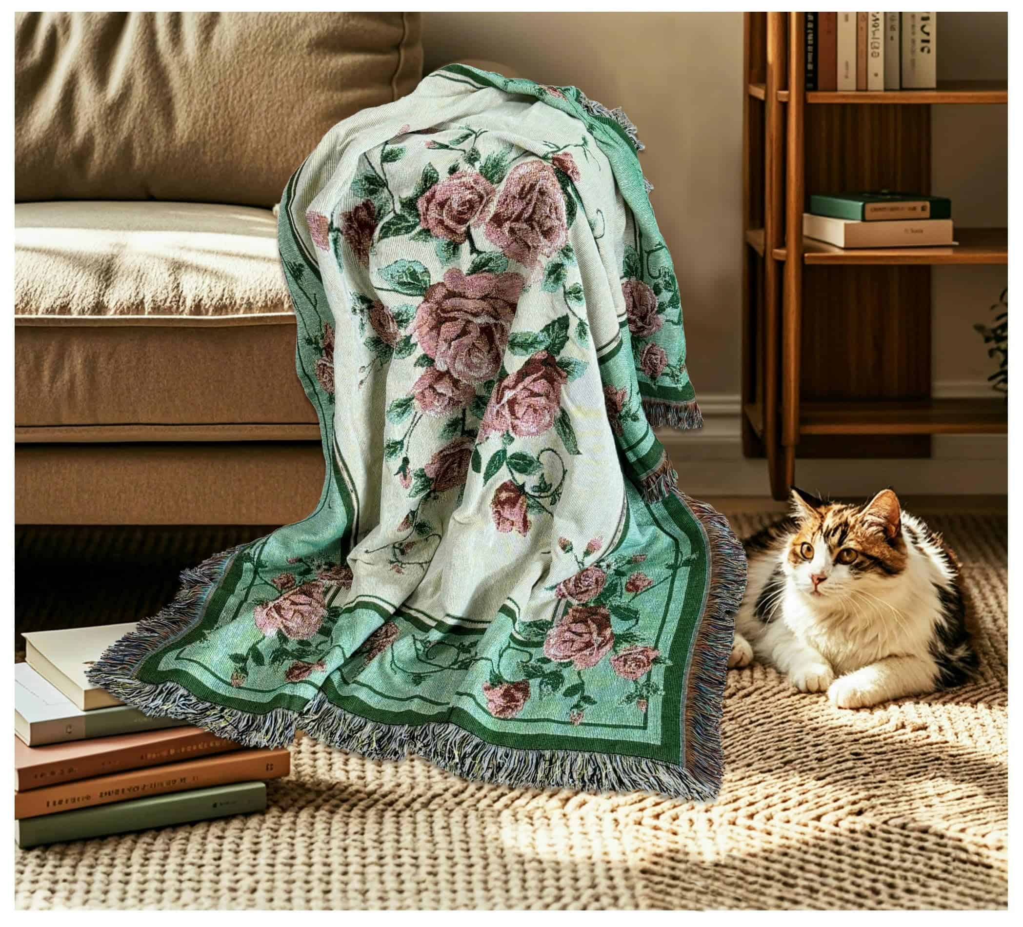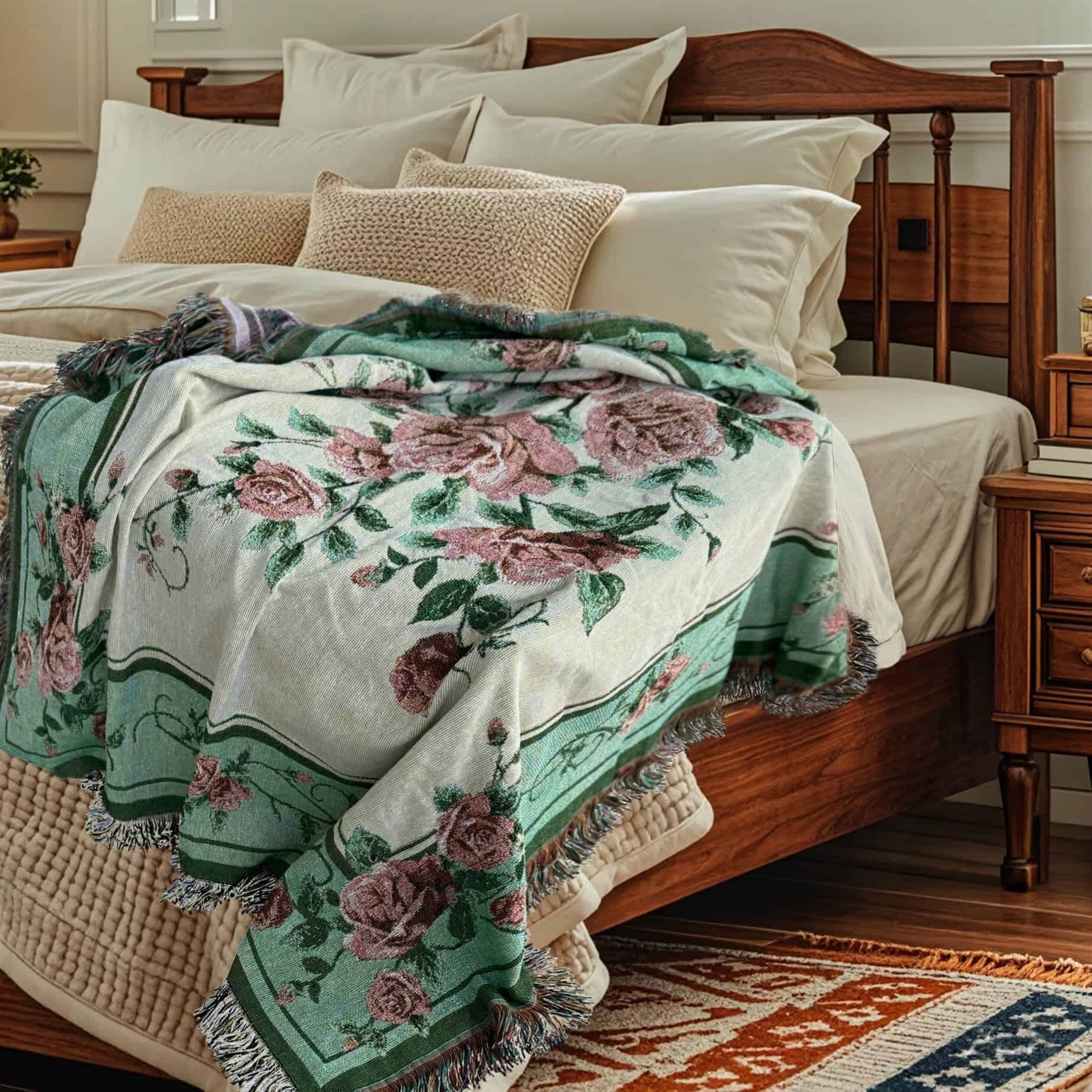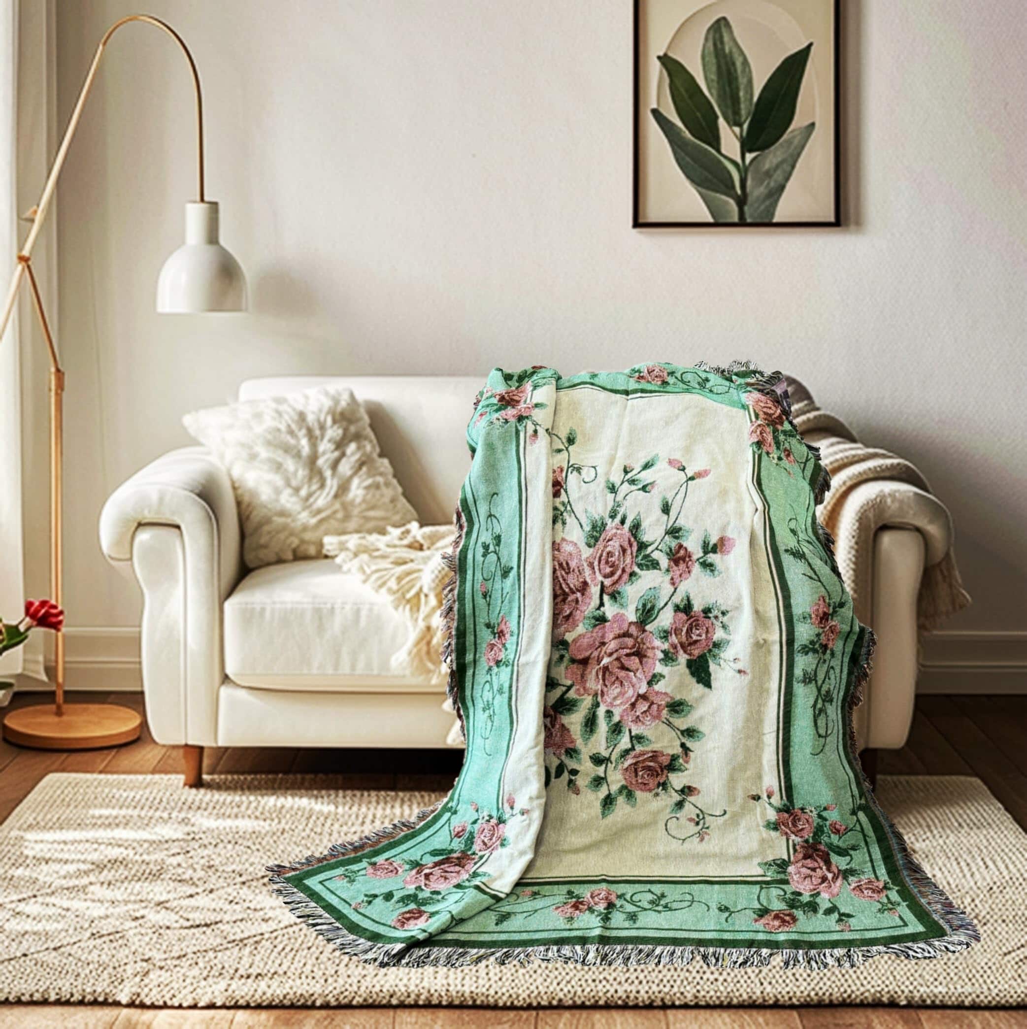 Manta de Tapiz Tejida con Rosas para Colgar en la Pared –