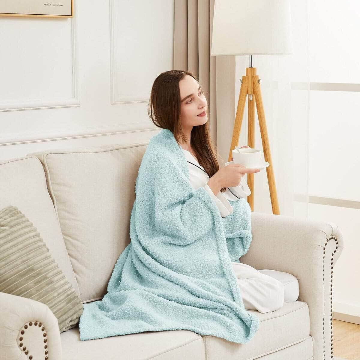Manta de Tejer CYMULA para Sofá Azul Cielo – Suave y Ligera