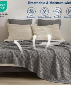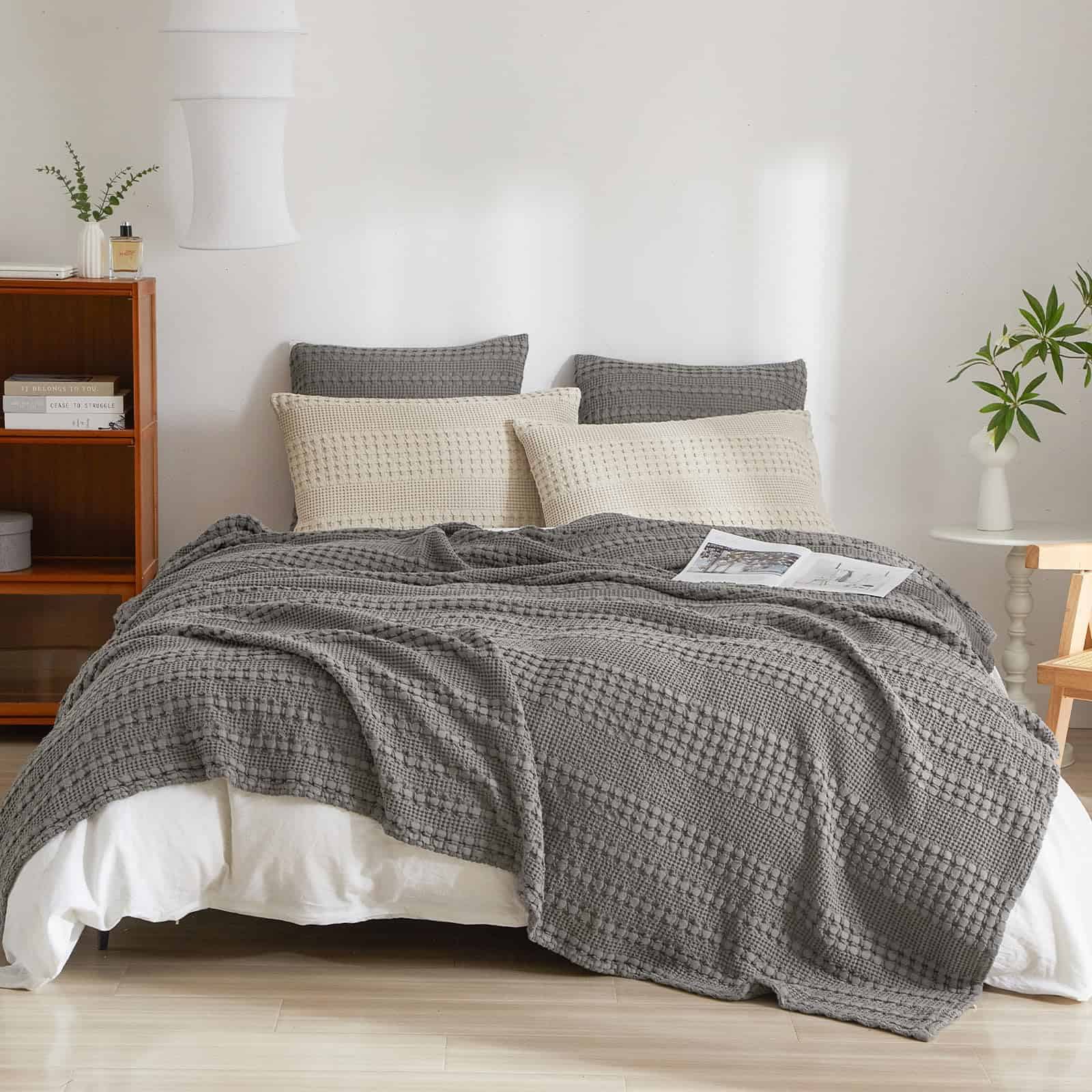 Manta de tela de waffle de algodón 100%, tamaño Queen,