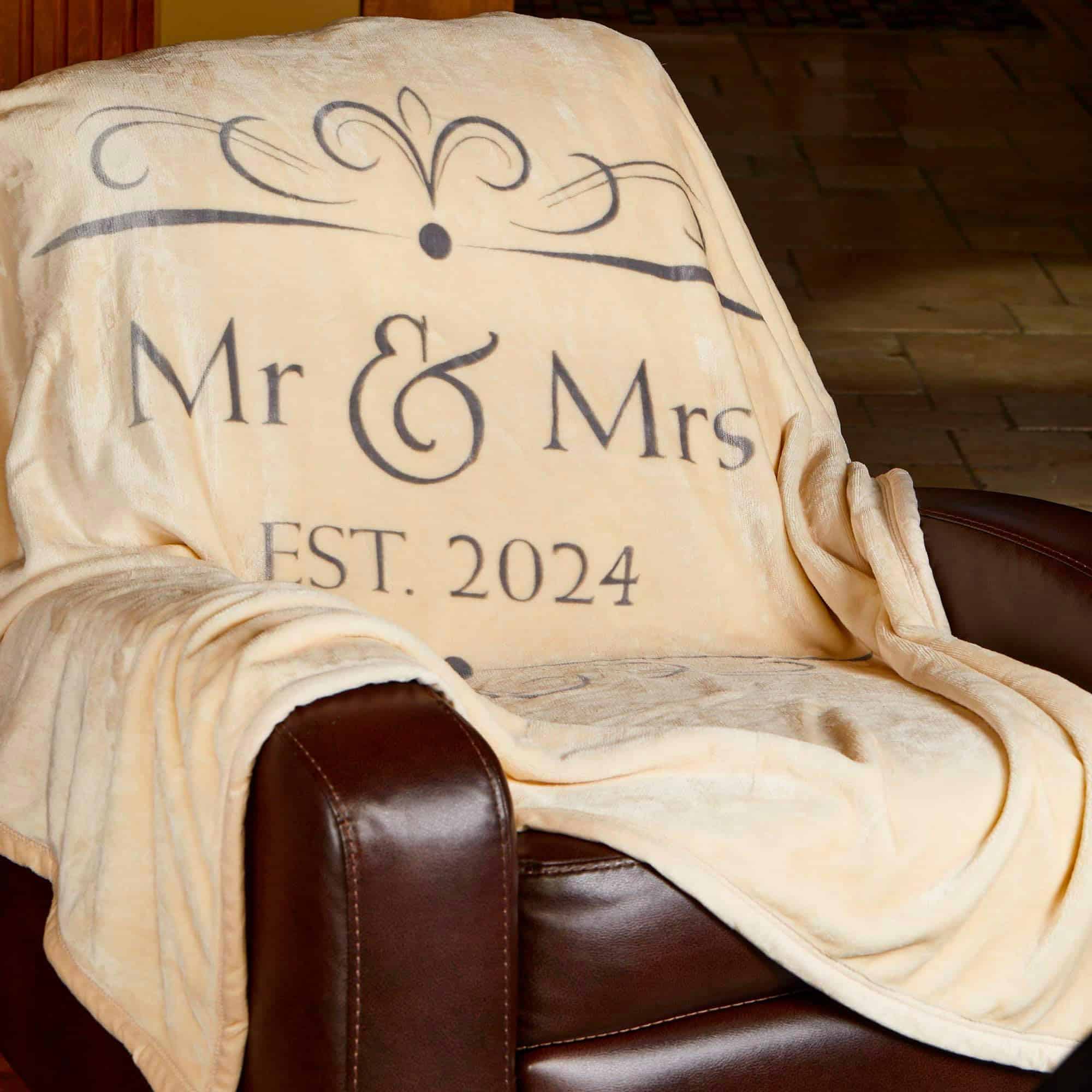 ¿Estás en la búsqueda de regalos personalizados únicos que vayan más allá de la lista de bodas para ocasiones especiales como despedidas de soltera, bodas o aniversarios de boda? ¡No busques más! Nuestra manta personalizada es la elección perfecta. Ya sea para una despedida de soltera, una pareja recién casada o una pareja celebrando su aniversario de bodas, esta manta versátil e increíblemente suave es un regalo atento y preciado. Su diseño neutro con las palabras «Sr. y Sra.» junto con el año «Est. 2024» asegura que se adapte perfectamente a cualquier decoración. Esta lujosa manta está hecha a medida para momentos acogedores. Ya sea que te acurruces en el sofá, añadas un toque de estilo a tu espacio vital o te mantengas caliente durante las noches de exterior frías, esta manta te tiene cubierto. Fabricada en 100% poliéster, no solo es increíblemente suave sino también lavable a máquina, garantizando tanto calidad duradera como cuidado fácil. Dile adiós a la molestia de lidiar con mantas que dejan pelusa. Las parejas adoran los regalos personalizados de Sr. y Sra., y esta manta personalizada se convertirá en un recuerdo preciado que usarán y amarán durante años. No te conformes con lo común; sorprende a tus amigos en su compromiso, celebra a una pareja recién casada o deleita a tu cónyuge con este regalo excepcional. Es la manta perfecta para el viaje de cualquier pareja juntos.
