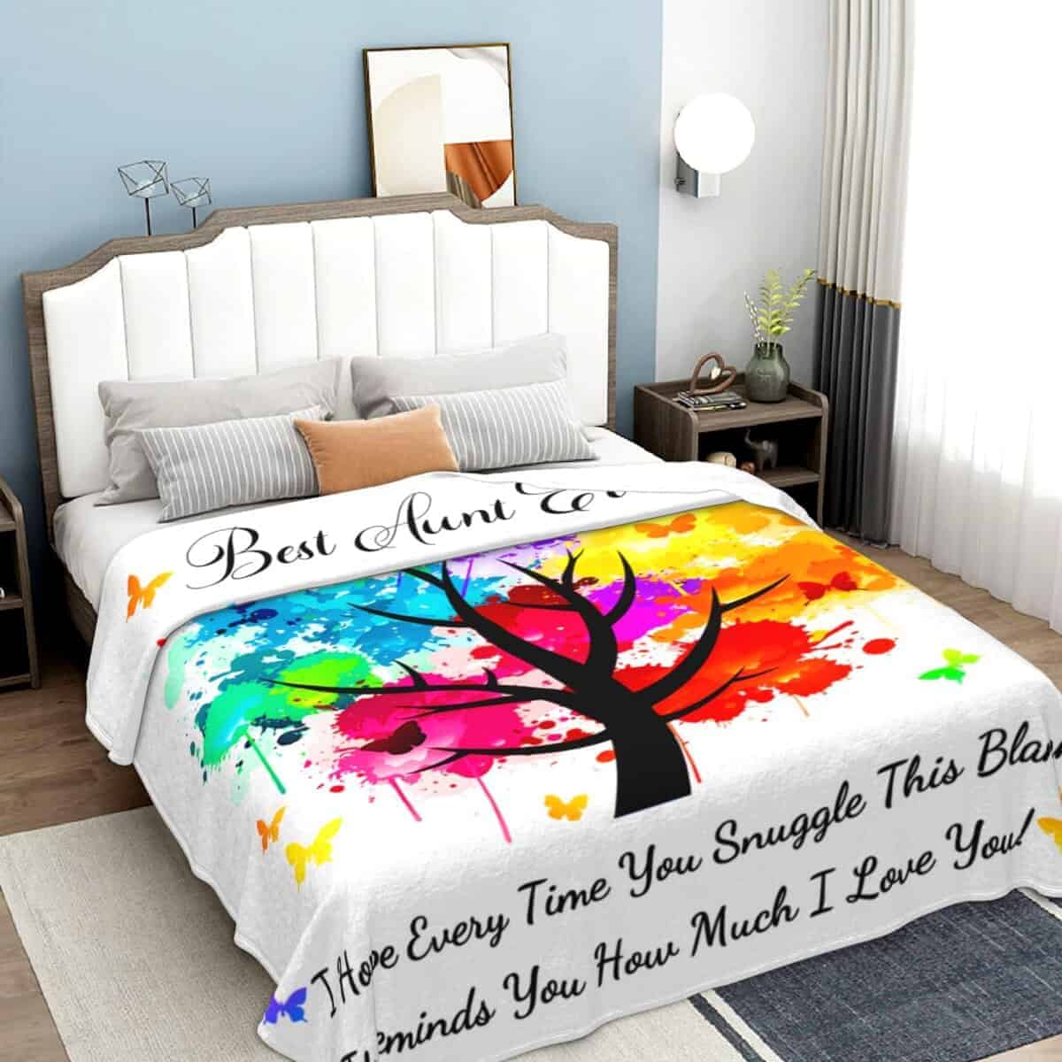 3. Escena aplicable: la manta es muy suave y duradera para sentir como un cálido abrazo, está especialmente diseñada para expresar el amor entre tía y sobrino sobrina. Es adecuada para múltiples escenarios, sala de estar, dormitorio, cama, sofá, también es perfecta para interiores y exteriores, especialmente para acampar, picnic y viajar.