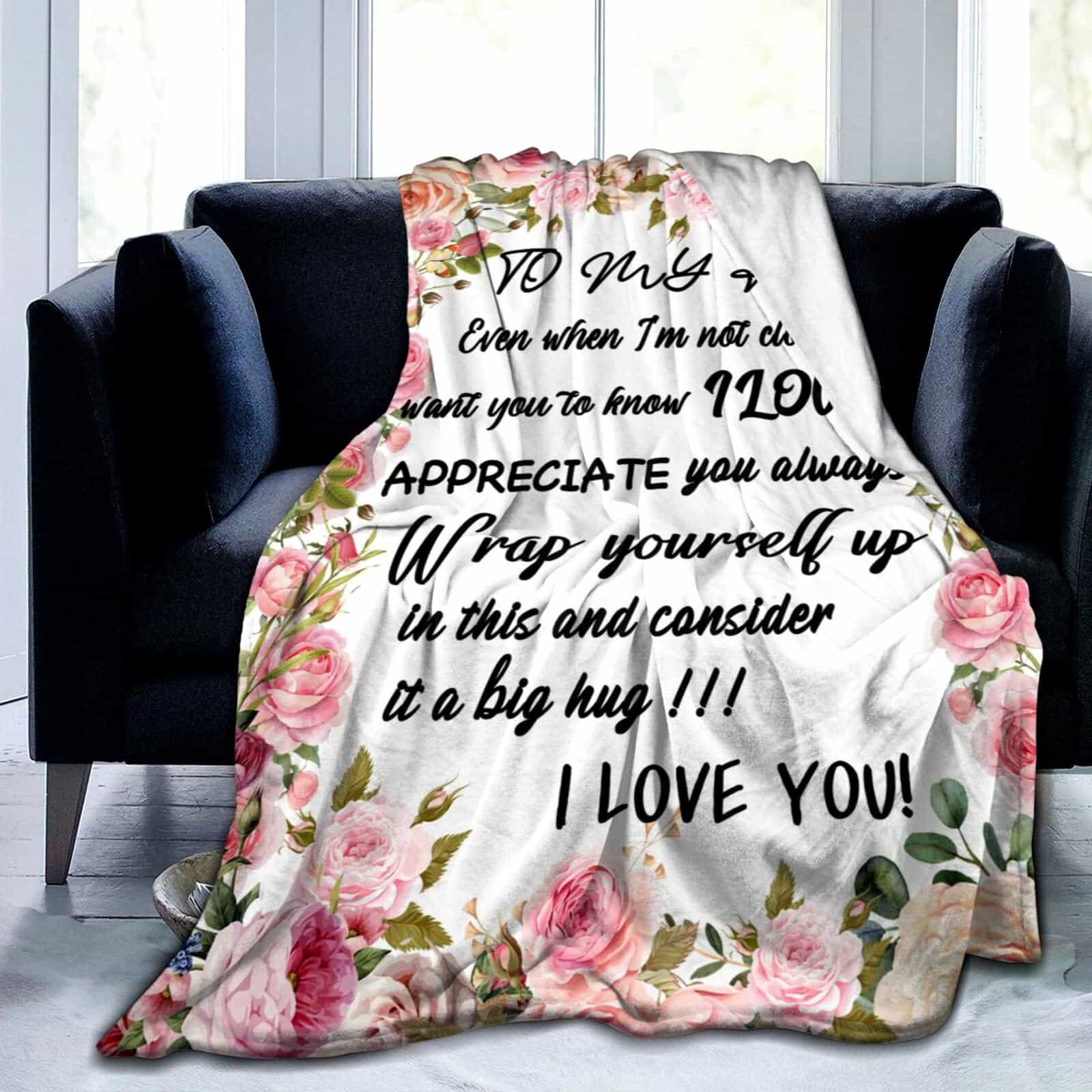 Esta manta súper suave presenta palabras agradecidas y de elogio que hacen que tus seres queridos sientan tu sinceridad y cuidado. Puedes decirle cuánto la amas. No importa lo cerca o lejos que estén, siempre tendrán un lugar especial en tu corazón. Puede ser usada en sofás, camas, granjas y decoración del hogar, también se puede utilizar como manta de picnic, gimnasio, mantel y manta de viaje. Esta manta puede ser un regalo perfecto. También puedes sorprenderla con un día lleno de alegría, amor y dulzura.