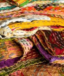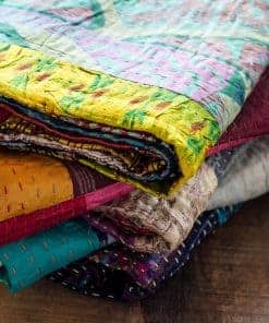 Un elegante patchwork de diseño vibrante con una sensación ligera y aireada, la serie Kantha es visiblemente única. El bordado Kantha es una técnica centenaria practicada durante siglos por hábiles artesanos indios. Cada pieza está hecha a mano con varias capas de seda unidas por un punto Kantha. Los materiales de lujo, los colores ricos, la artesanía vintage y la belleza única elevarán tu decoración e infundirán individualidad a cualquier espacio. Características: 100% seda / Hecho a mano / Técnica: Acolchado / Tamaño: 60×90 / País de origen: India / Se puede usar de varias formas: como manta, cubierta de mesa, tapiz, cubierta de playa y más / Lavar a mano en agua fría / Algunas variaciones en tamaño y color pueden ocurrir debido a la naturaleza vintage única de este producto
