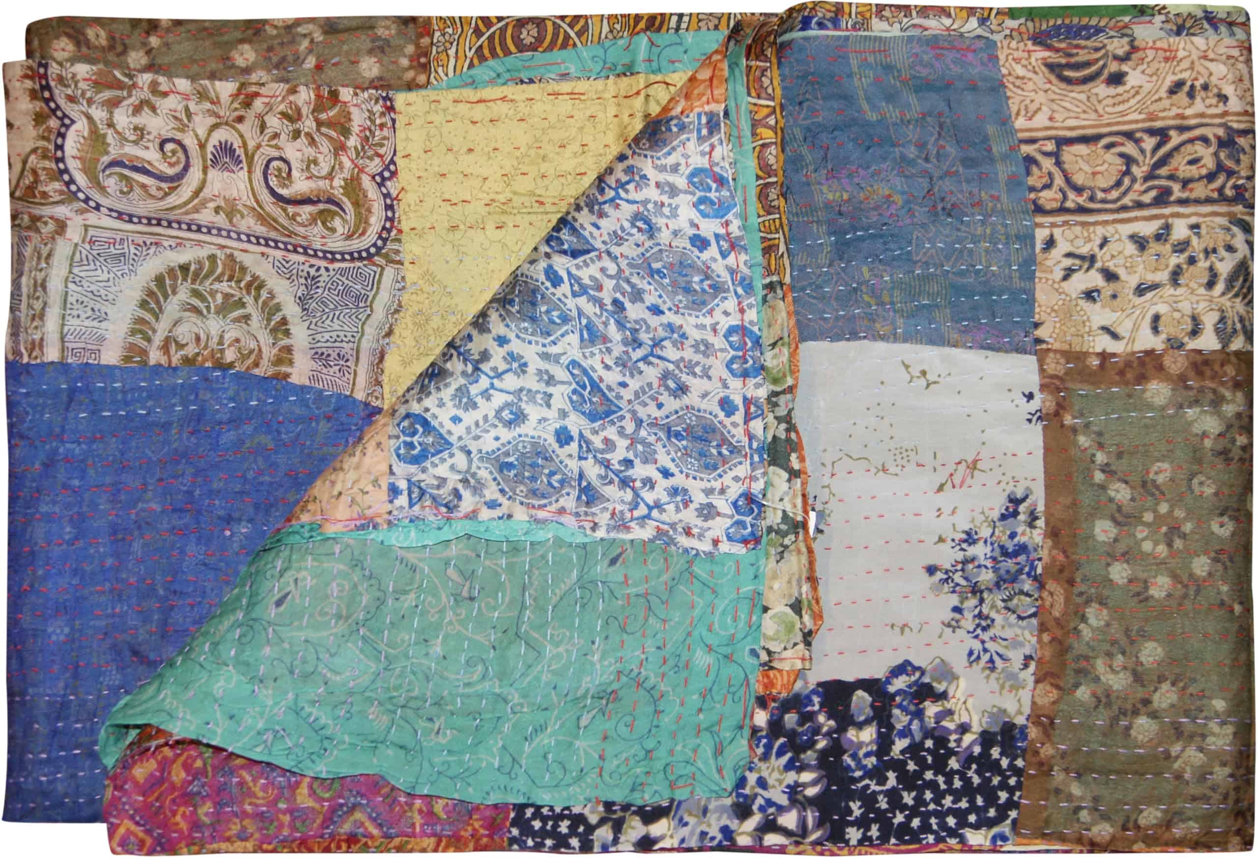 Manta de tirar acolchada de seda 100% hecha a mano de
