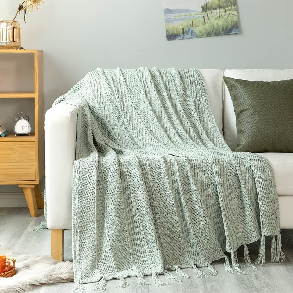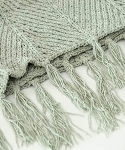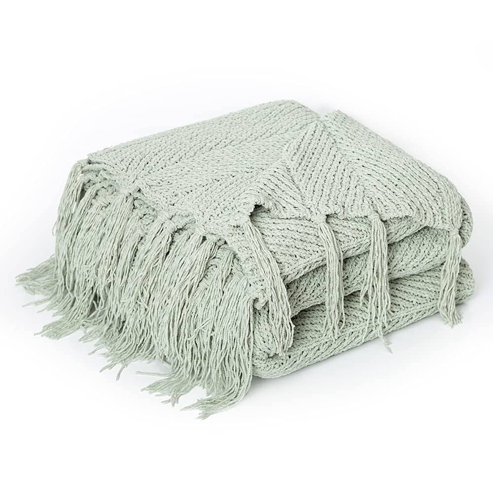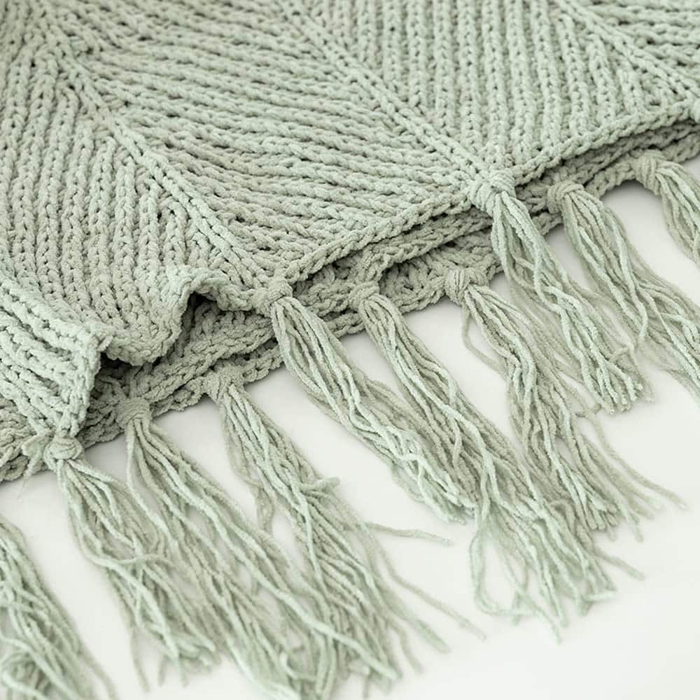 Manta de tiro con borlas de flecos de chenilla verde salvia