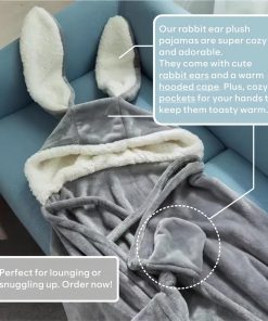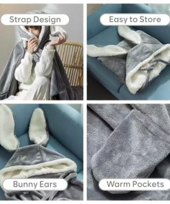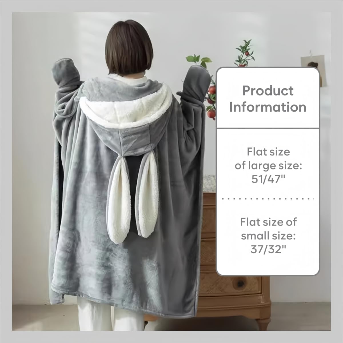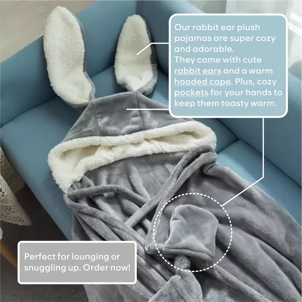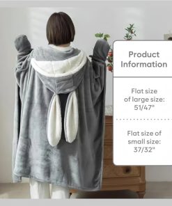 Mantente caliente y con estilo con este poncho wearable con orejas de conejito hecho de felpa y poliéster de calidad premium. El poncho con capucha es ultra suave, amigable con la piel y proporciona calor para los días fríos de invierno. Con dos grandes bolsillos para las manos, esta manta wearable asegura que tus manos se mantengan calientes y acogedoras, haciéndola ideal para descansar o actividades al aire libre informales. La adorable capucha de orejas de conejito agrega un ambiente divertido y lindo, perfecto para mujeres y niñas. El diseño de talla única brinda cobertura holgada y confortable para una variedad de tipos de cuerpo. Esta manta wearable es perfecta para usar en casa, en la oficina, en la escuela o incluso para actividades al aire libre como acampar y viajar. También se puede usar como chal envolvente, bata o capa de vestir, convirtiéndola en un esencial de invierno versátil para mantenerte acogedor y cómodo en cualquier entorno.