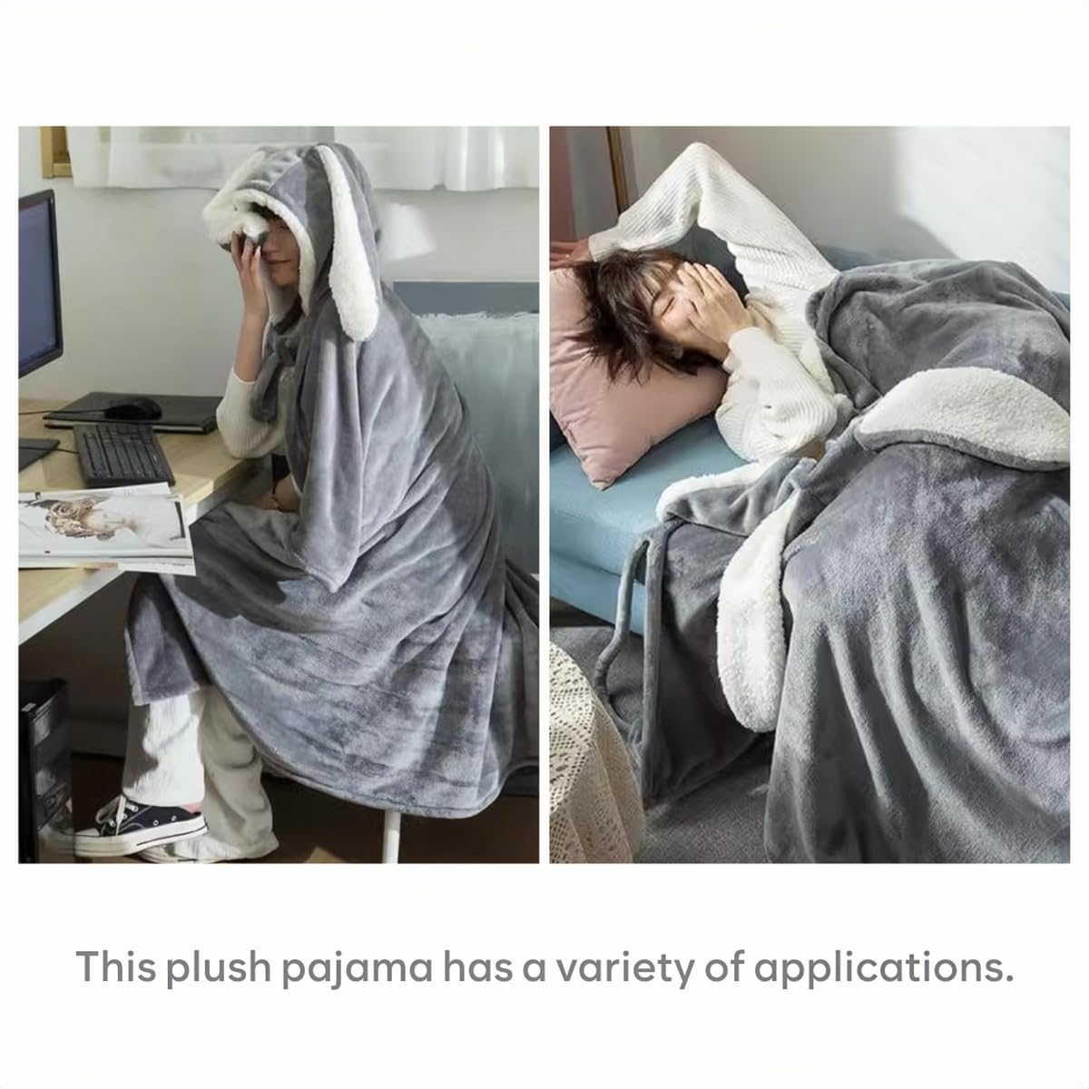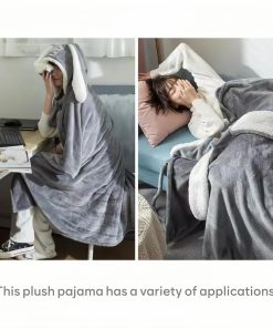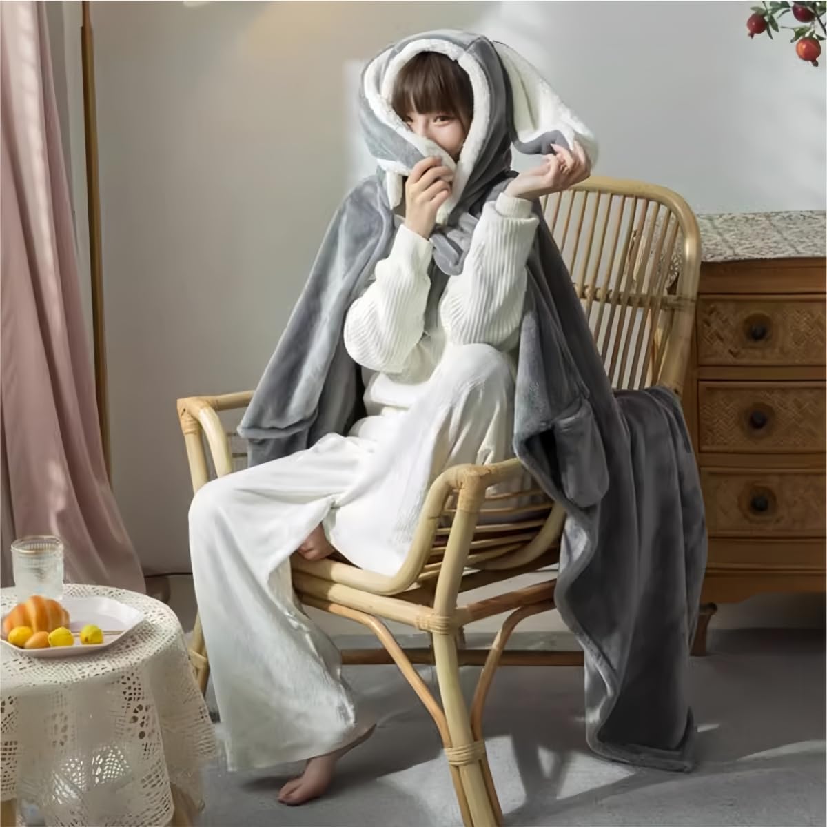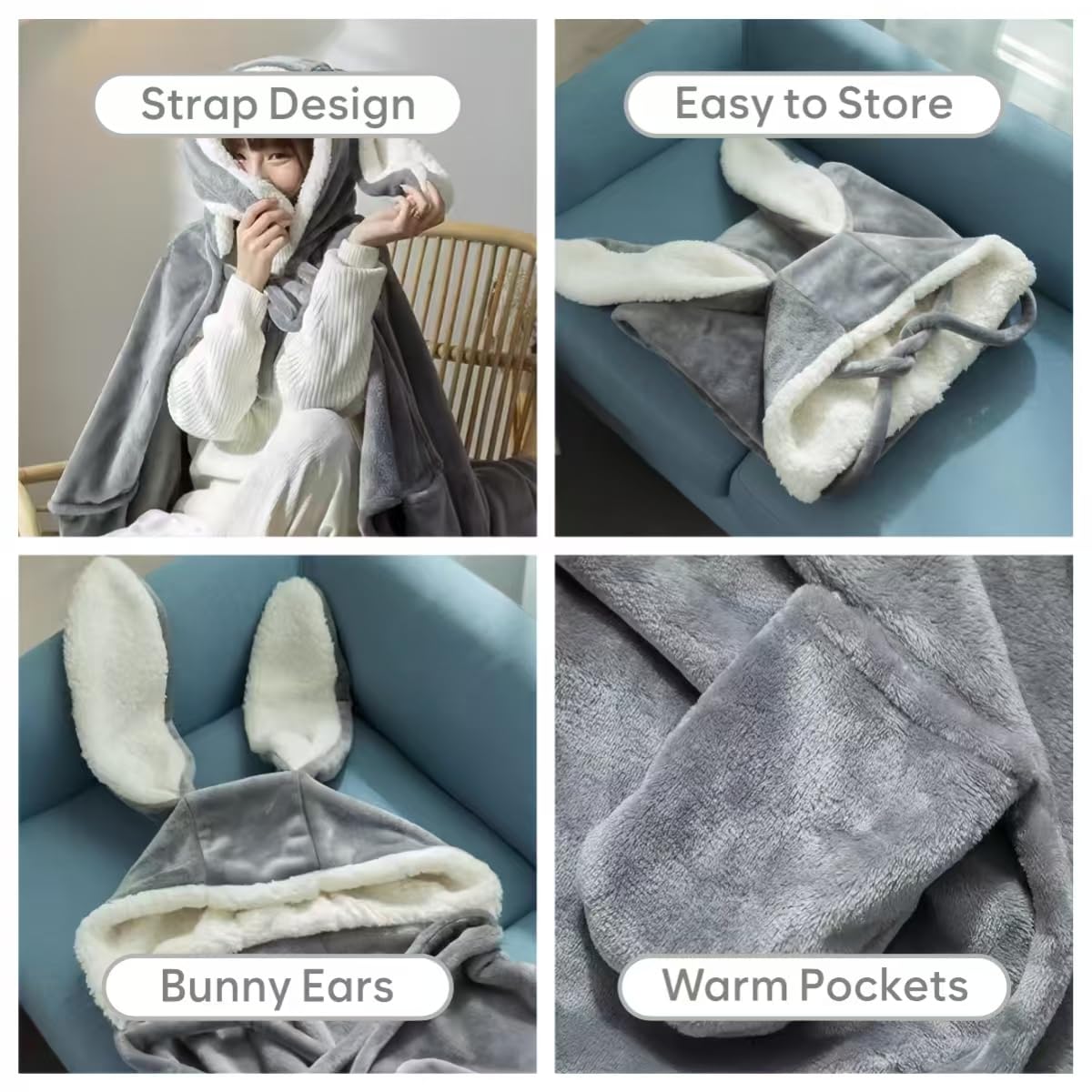 Mantente caliente y con estilo con este poncho wearable con orejas de conejito hecho de felpa y poliéster de calidad premium. El poncho con capucha es ultra suave, amigable con la piel y proporciona calor para los días fríos de invierno. Con dos grandes bolsillos para las manos, esta manta wearable asegura que tus manos se mantengan calientes y acogedoras, haciéndola ideal para descansar o actividades al aire libre informales. La adorable capucha de orejas de conejito agrega un ambiente divertido y lindo, perfecto para mujeres y niñas. El diseño de talla única brinda cobertura holgada y confortable para una variedad de tipos de cuerpo. Esta manta wearable es perfecta para usar en casa, en la oficina, en la escuela o incluso para actividades al aire libre como acampar y viajar. También se puede usar como chal envolvente, bata o capa de vestir, convirtiéndola en un esencial de invierno versátil para mantenerte acogedor y cómodo en cualquier entorno.