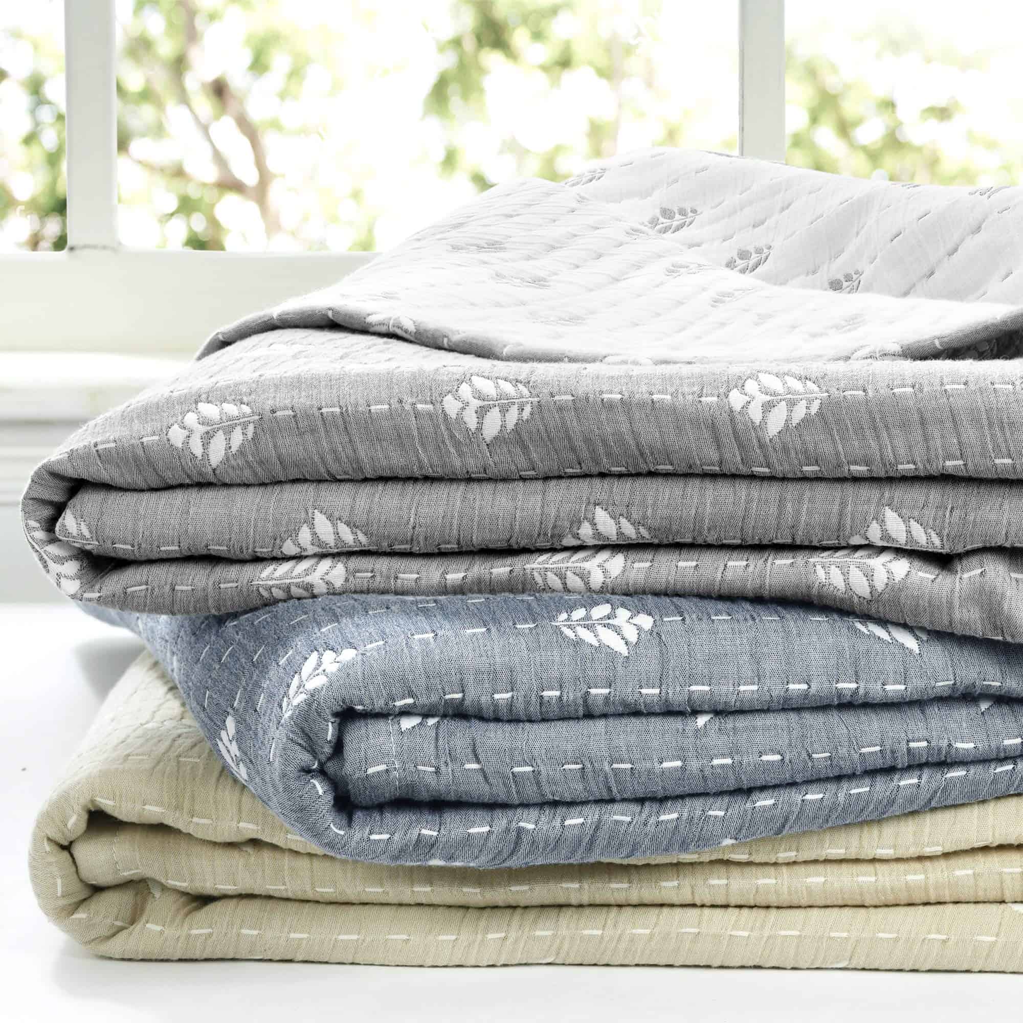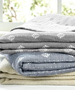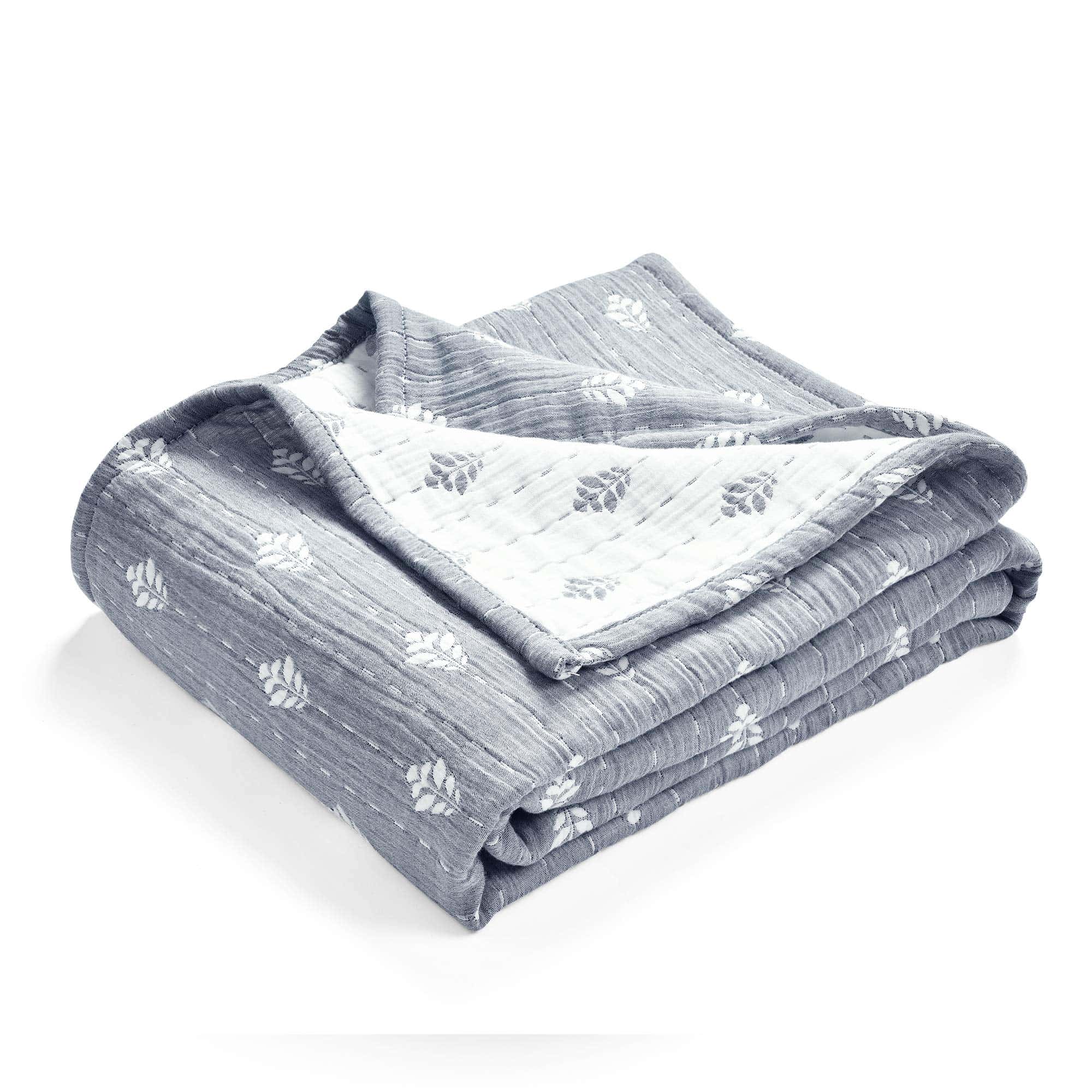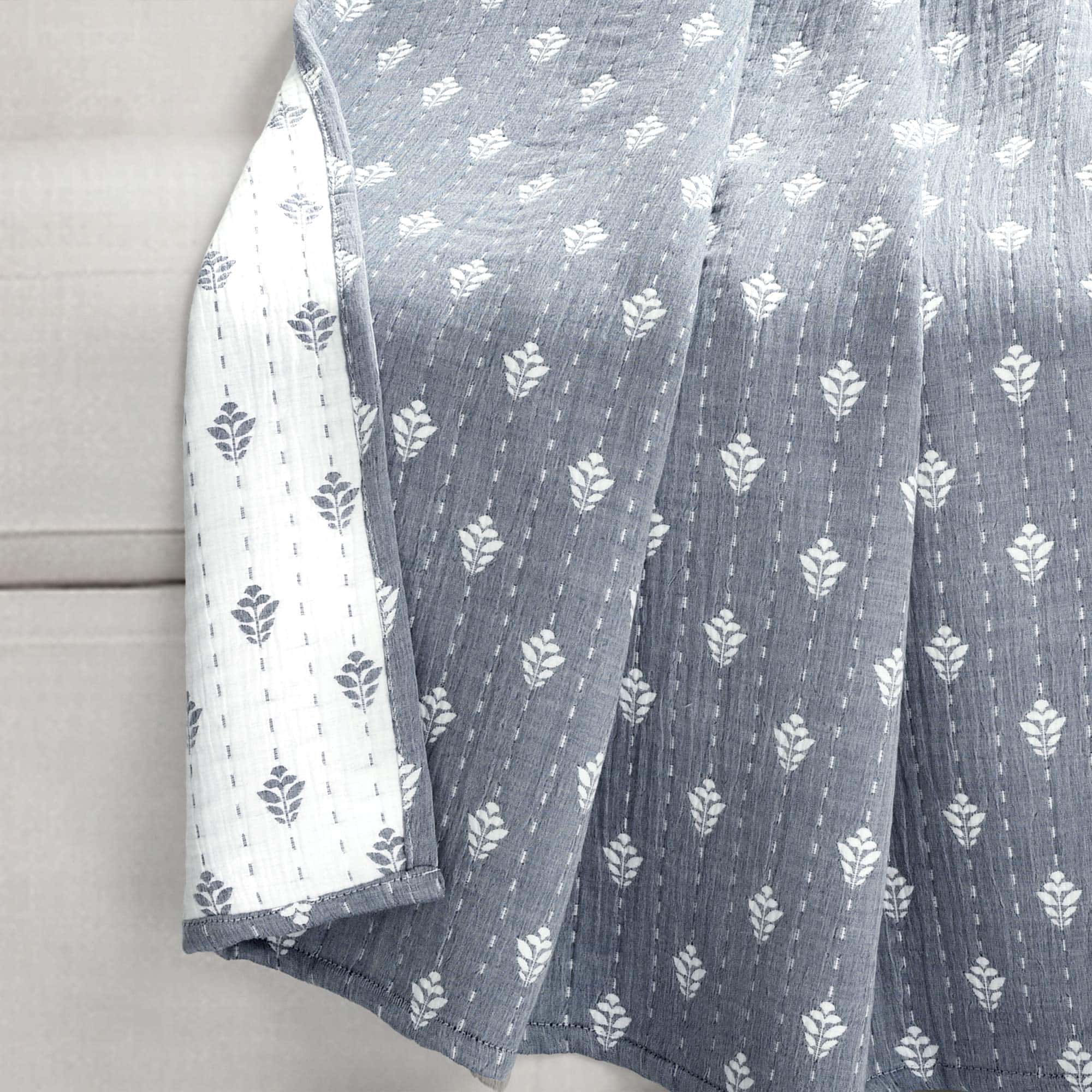 Refresca la decoración de tu hogar con esta manta de algodón teñido de hilo reversible de alta calidad. El anverso y el reverso cuentan con un sutil estampado de hojas jacquard, perfecto para muchos estilos de diseño. Úsalo como manta acogedora en el sofá o como una pieza de capas en tu cama.
