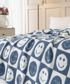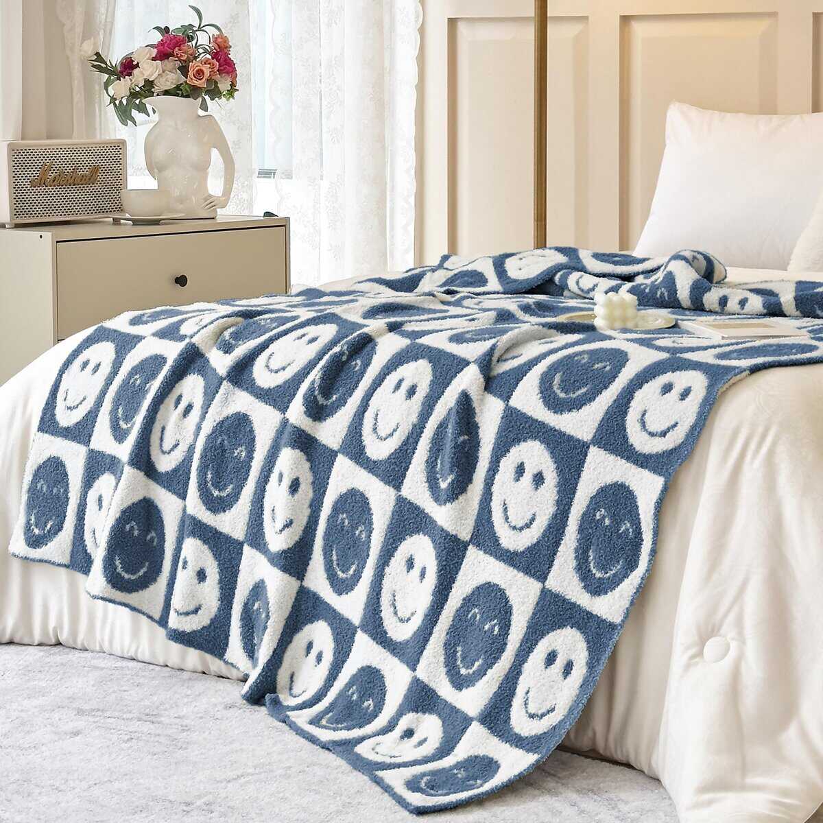 3. Diseño de estilo: Patrón de tablero de ajedrez clásico y de moda, el patrón de cara sonriente también te hará sentir feliz, Curvándote en una manta para una gran relajación, ya sea en el sofá o en el dormitorio, es una decoración perfecta.