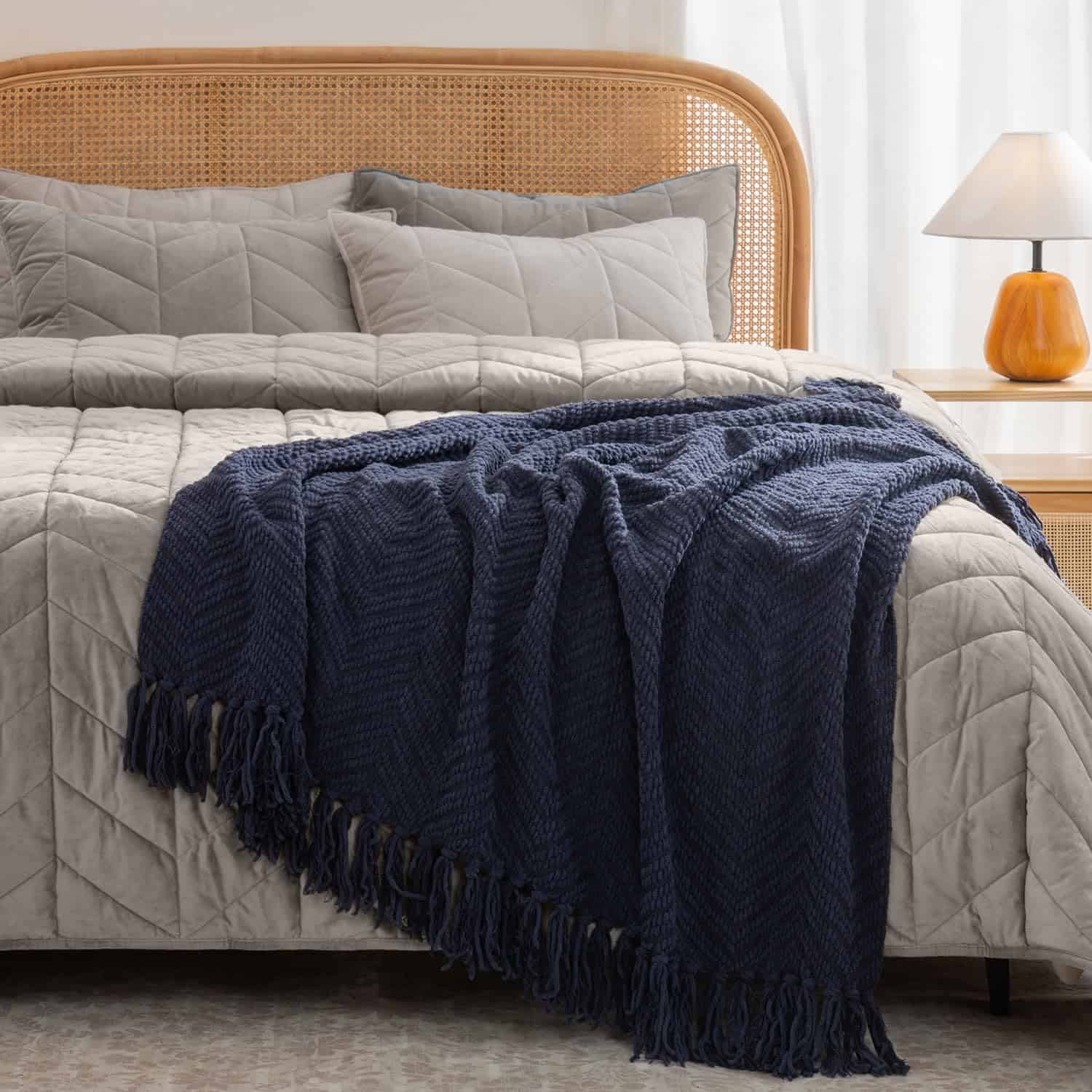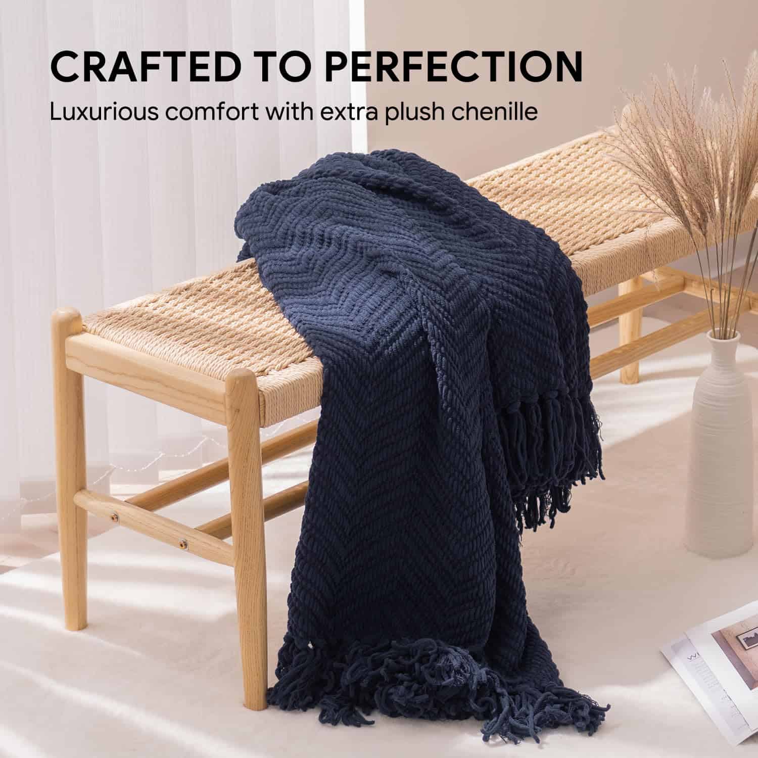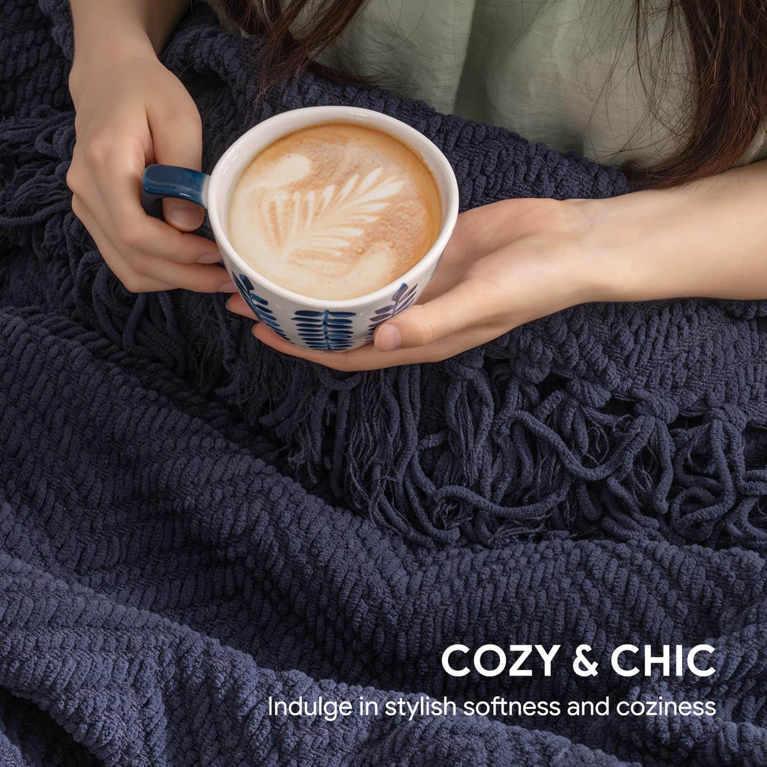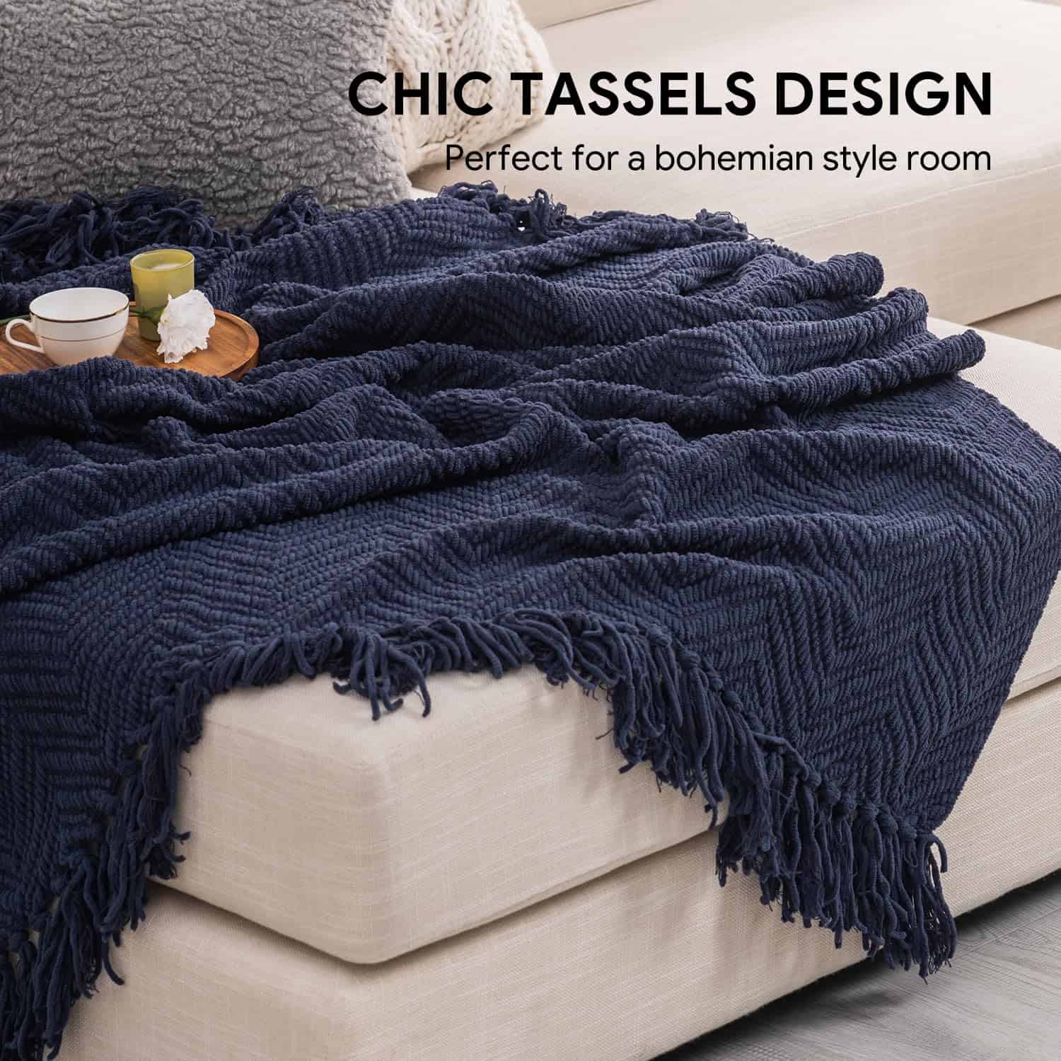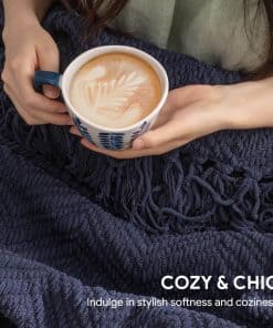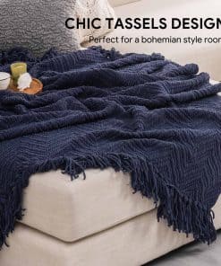 Introduciendo nuestra exquisita manta de tiro de punto de chenilla boho, que cuenta con un diseño boho hipnotizante que es verdaderamente único. Los intrincados patrones de espiga y los colores bien pensados se unen en perfecta armonía, creando una impresionante obra maestra visual que realzará sin esfuerzo la estética de cualquier espacio. Nuestra acogedora manta de punto tejido está hecha de tejido de chenilla de alta calidad, lo que la hace súper suave pero ligera. Con una artesanía de punto y costura premium, esta manta tejida texturizada también es cálida pero transpirable. Puedes usarla durante todo el año para disfrutar de calidez y suavidad sin sudar. Esta manta de tiro de punto de 50×60 pulgadas puede proporcionar el compañero perfecto para las acogedoras noches en el sofá o la cama, acurrucándote mientras ves tus programas favoritos o disfrutas de un buen libro. Su diseño ligero la convierte en un compañero de viaje ideal, ya sea que estés embarcando en aventuras al aire libre o simplemente yendo en un viaje por carretera. Hecha de telas resistentes a la decoloración de alta calidad y una artesanía impecable, nuestra manta azul marino de punto de chenilla ofrece una durabilidad superior, asegurando tonos vibrantes que se mantienen vívidos incluso después de innumerables lavados. Además, esta suave manta de punto de chenilla está certificada según el estándar 100 de Oeko-tex, por lo que es segura para que tú y tu familia la usen en la vida cotidiana. Nuestra manta de tiro para sofá es muy fácil de limpiar, simplemente lávala a máquina en un ciclo suave en agua fría, luego sécala a baja temperatura. Nuestras mantas decorativas también vienen elegantemente empaquetadas, listas para impresionar y deleitar a tus seres queridos. Es el regalo perfecto para inauguraciones, cumpleaños y fiestas.