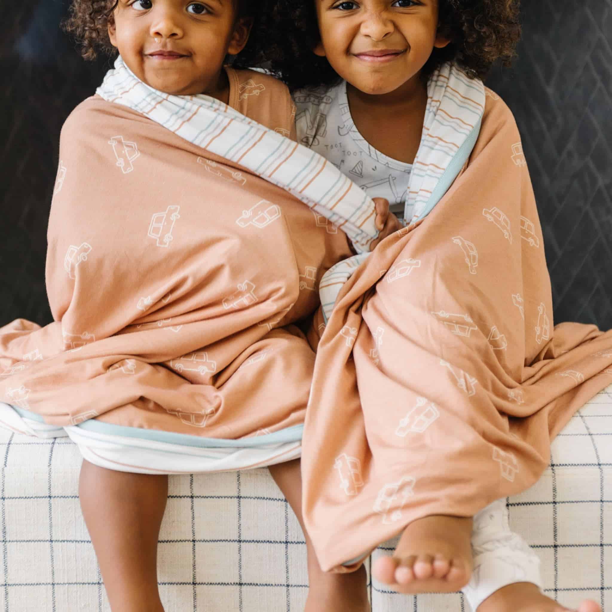 Una versión extra grande de nuestra Manta de Tres Capas original. ¡Tomamos nuestra popular Manta de Tres Capas y la hicimos aún más grande a 60 x 72 pulgadas, siendo el tamaño perfecto para niños más grandes y adultos! Hecha de tela de punto premium, nuestra manta de tiro presenta un estampado de moda en un lado y una sensación clásica en el otro, ¡para suavidad reversible y elasticidad que seguramente mantendrá a toda la familia acogedora!