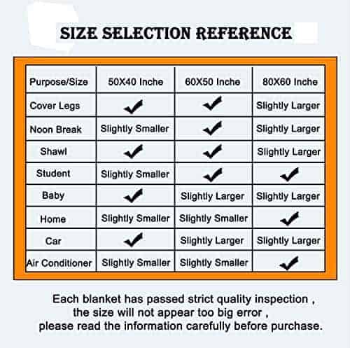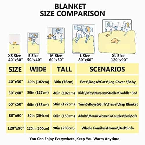 2. MÚLTIPLES TAMAÑOS – Manta de 40″x30″ para mascotas, perros, recién nacidos y niños pequeños; manta de 50»x40» para niños, niñas, bebés, recién nacidos y niños pequeños; manta de 60»x50» para adolescentes, viajes y siestas; manta de 80»x60» para adultos, amigos y parejas; manta de 120»x90» para toda la familia viendo la televisión y charlando con amigos. Esta manta de textura suave puede satisfacer las necesidades de una variedad de personas y usos.