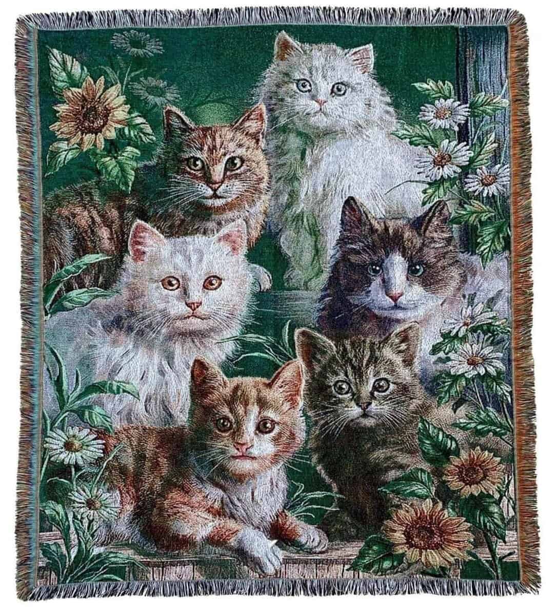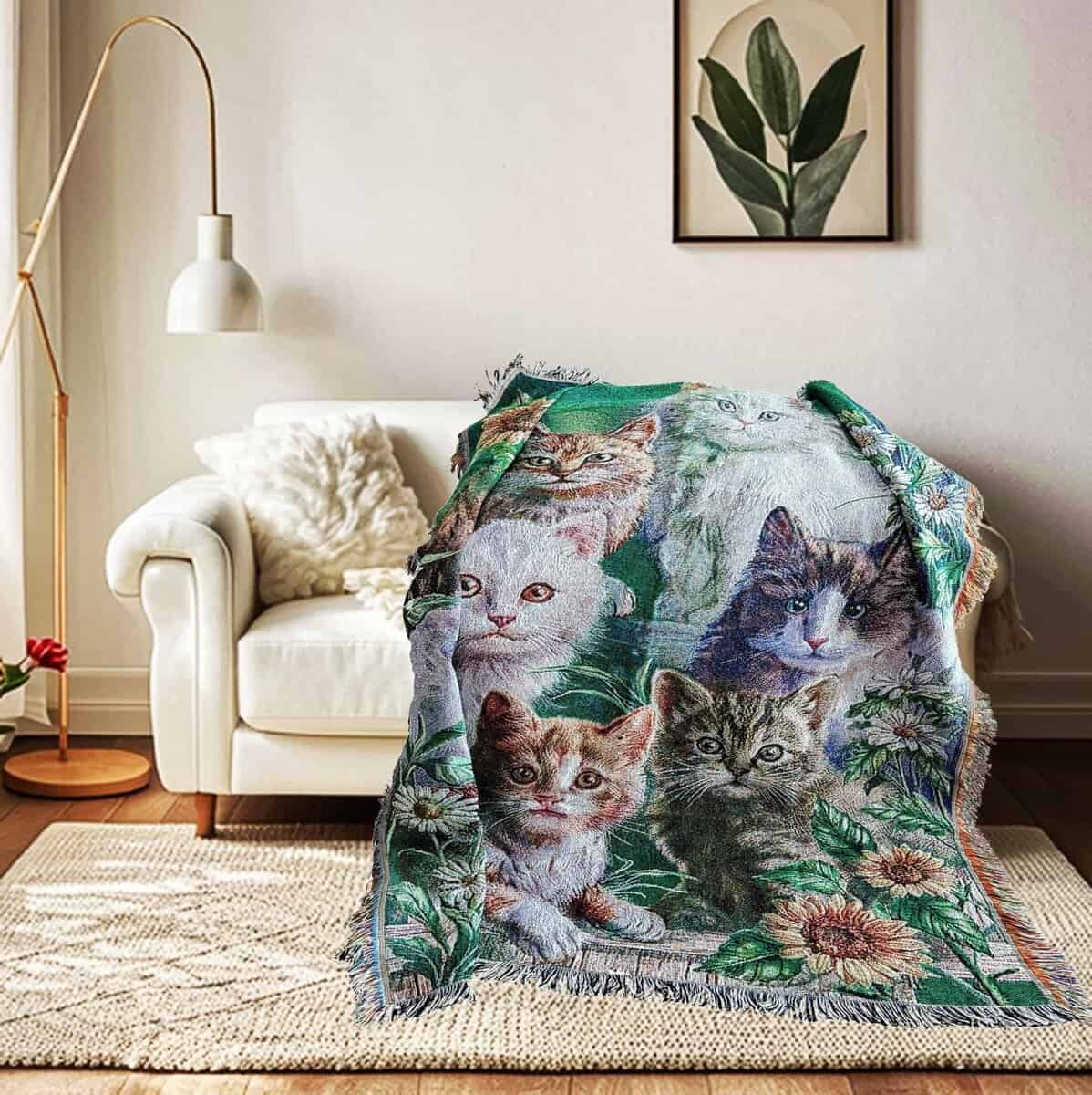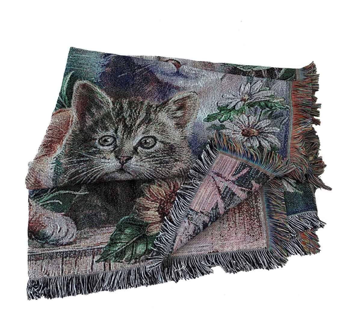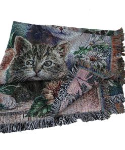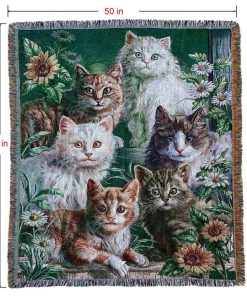 Manta de tiro de tapiz tejido de jardín de gato con flores