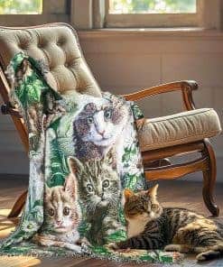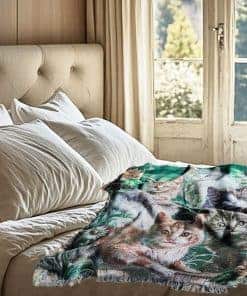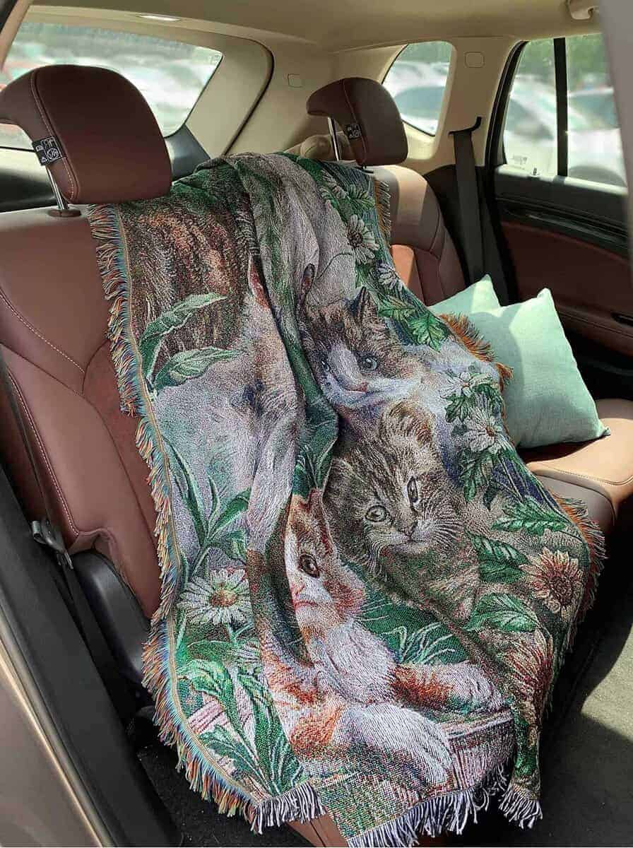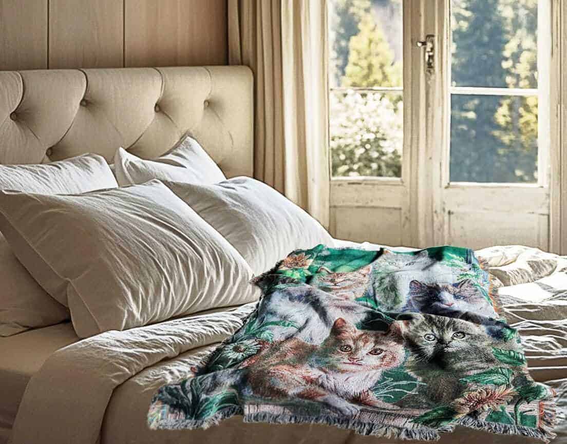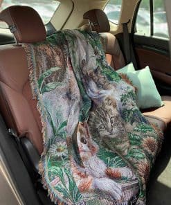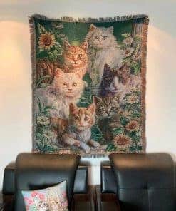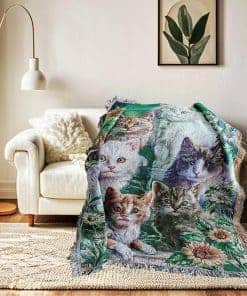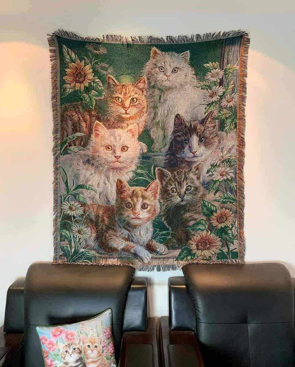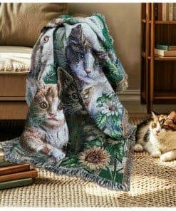 Manta de tiro de tapiz tejido de jardín de gato con flores