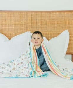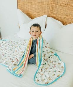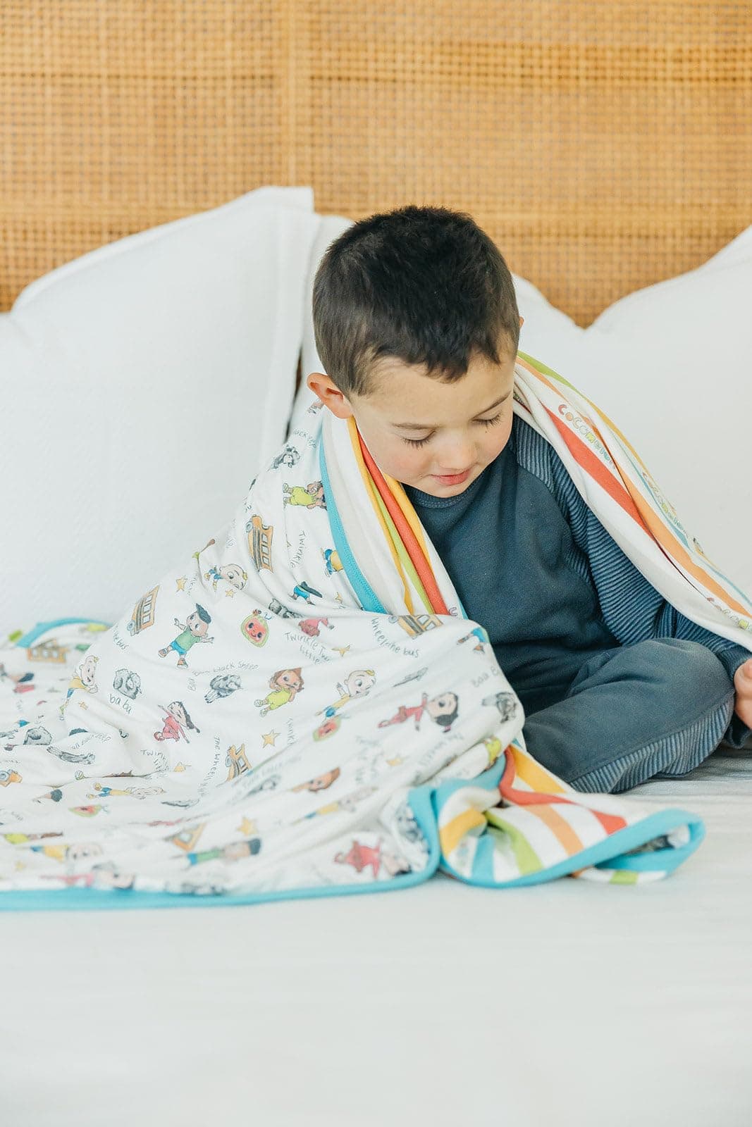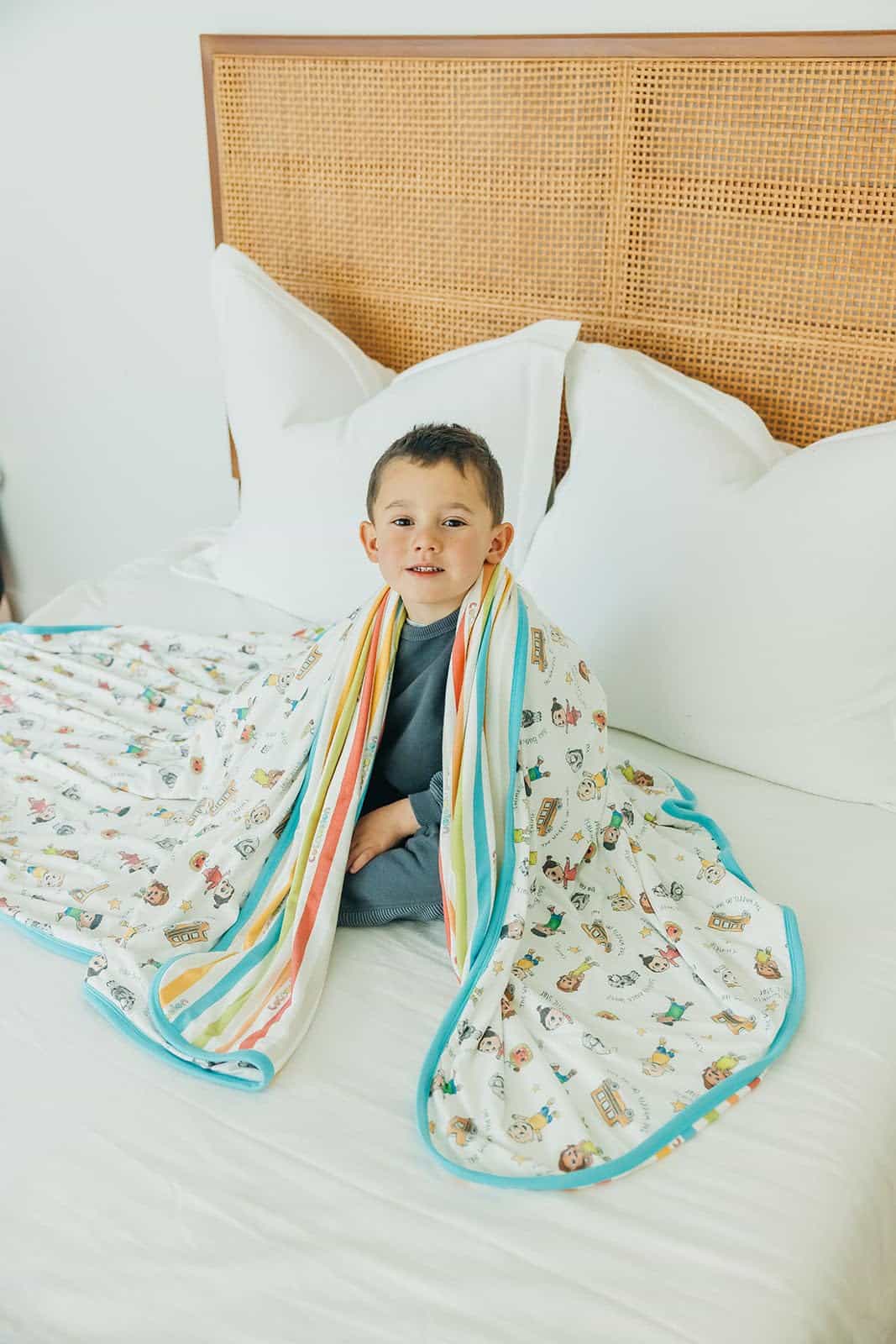 Una versión extragrande de nuestra Manta de Tres Capas original. Tomamos nuestra popular Manta de Tres Capas y la hicimos aún más grande, de 60 x 72 pulgadas, lo que la convierte en un tamaño perfecto para niños mayores y adultos! Hecha de tela de punto premium, nuestra manta de tiro presenta un estampado de moda en un lado y una sensación clásica en el otro, para una suavidad y elasticidad reversibles que seguramente mantendrán a toda la familia acogedora.