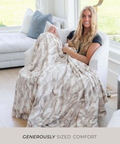4. COMODIDAD EXTRA GRANDE Y ACOGEDORA: Con unas generosas medidas de 60″ x 80″, nuestra manta de tiro ofrece una amplia cobertura para tu cama o sofá. Envuélvete en su felpa suave de imitación, disfrutando tanto de la comodidad como del estilo en un lujoso paquete.