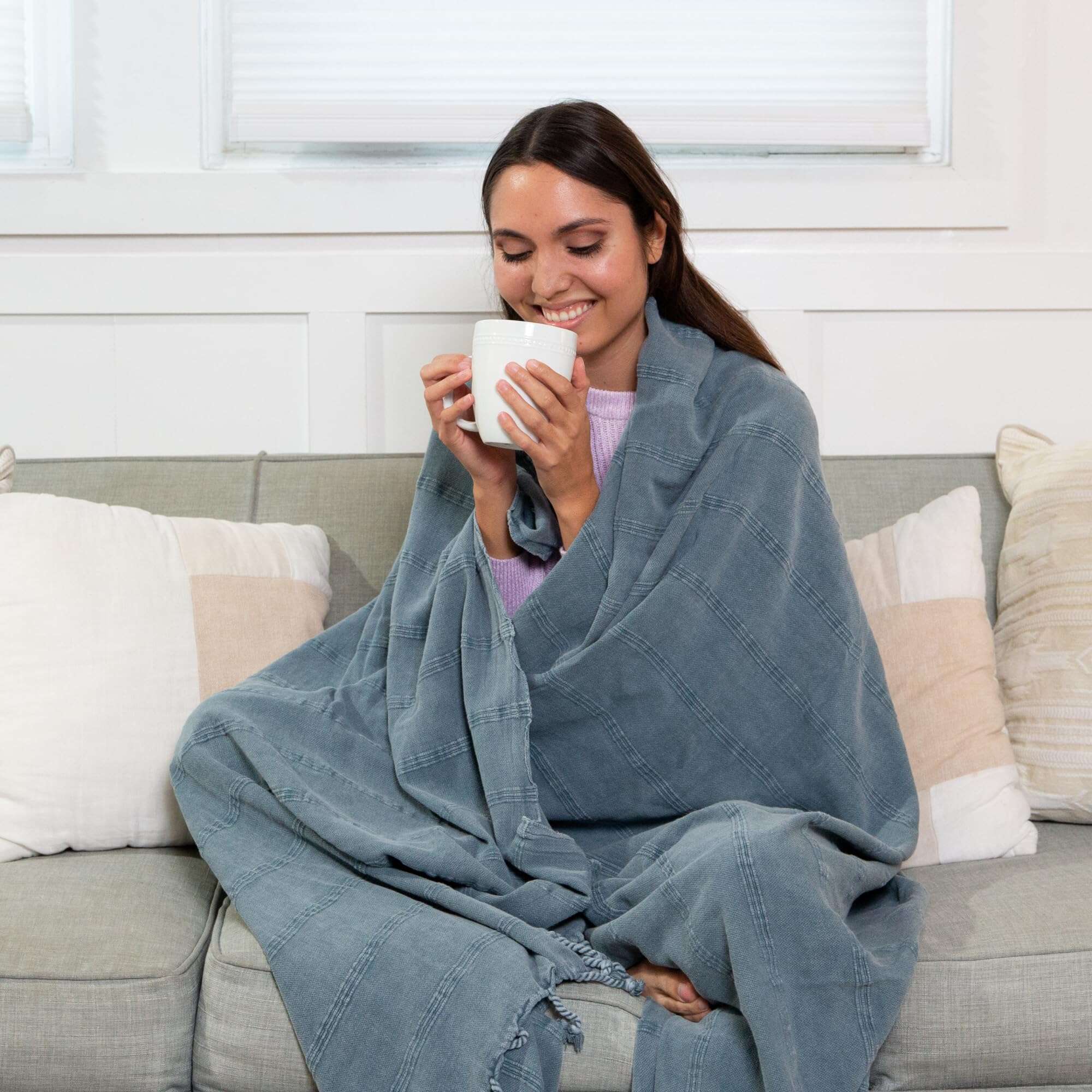 Manta de tiro grande turca lavada a la piedra InfuseZen –