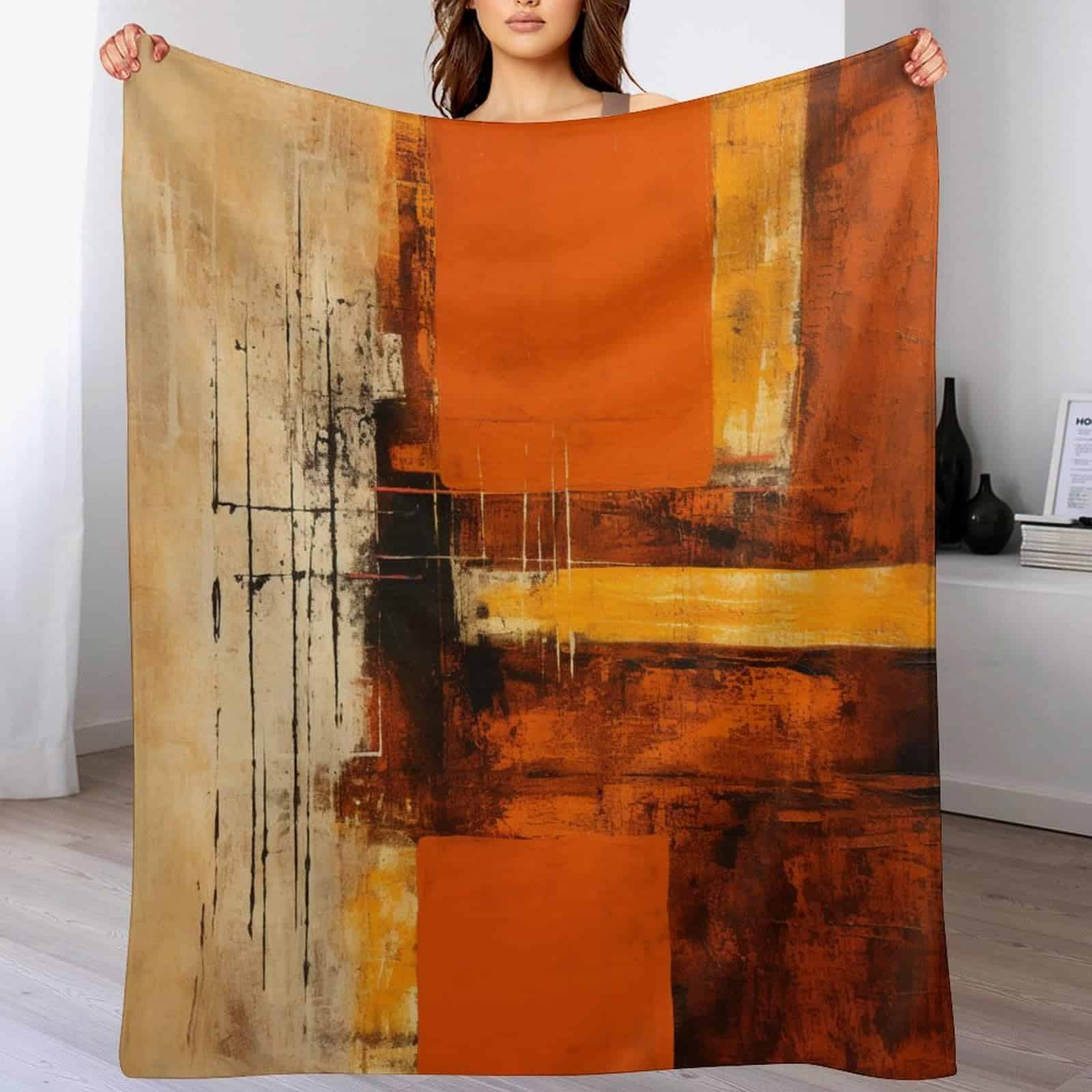Abstracto en Tonos Naranja Y Marrón Suave Manta de Felpa Acogedora Manta de Tiro Abstracta en Naranja Quemado para Sofá Sofá Cama para Adultos Niños Niños Adolescentes Regalo Navidad Halloween Día de Padres Madres San Valentín 50″x60″
