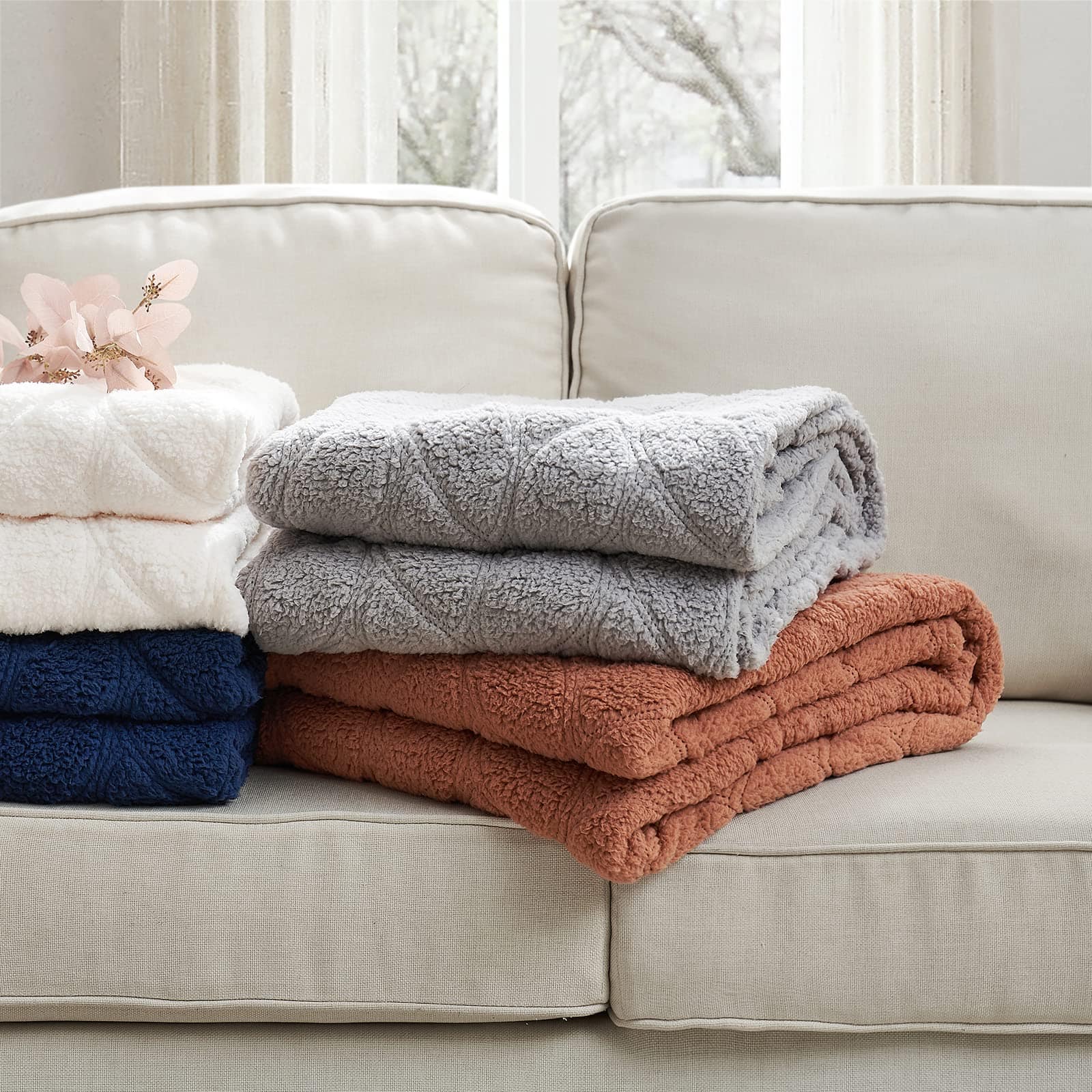 Manta de Tiro Sherpa Cozy Bliss, Manta de Cama Texturizada