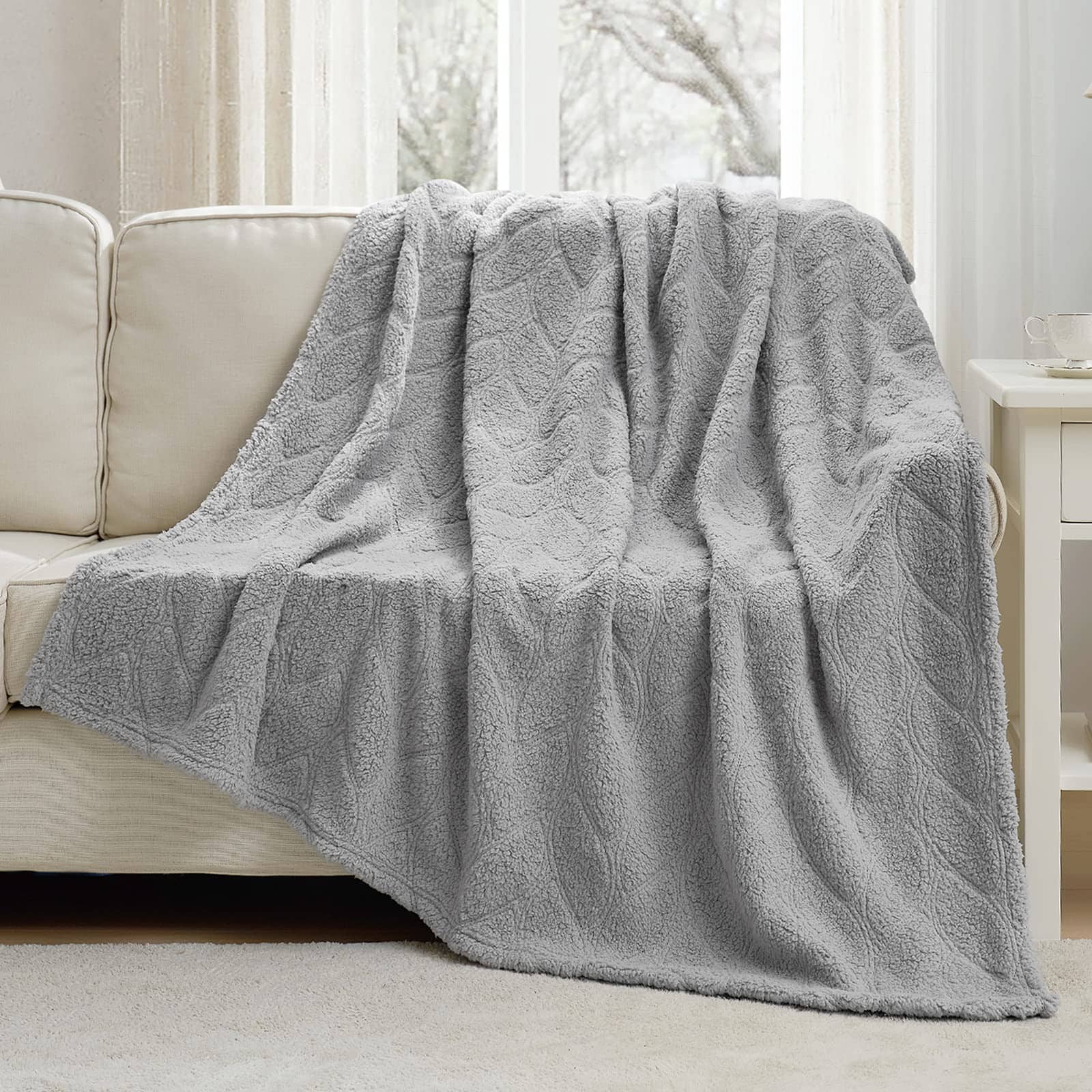 3. Decoración única: La manta sherpa cuenta con un tacto suave de doble cara, suave y aterciopelado y un elegante diseño de textura de hoja que proporciona una silueta única y un aspecto moderno. La manta delgada puede mejorar fácilmente o coordinar con la decoración de tu hogar.