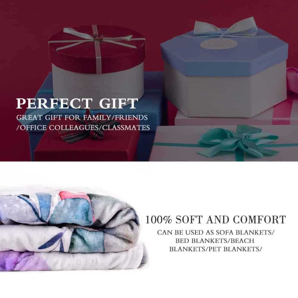 Tamaño: 60″x 80″/150 200CM. Material: Manta delgada y ligera. Sensación suave y cómoda al tacto. Hecha de tela de poliéster. Suavidad excepcional, micro mink fleece super suave en un lado. Impreso solo en un lado. Ideal para usar en noches frías viendo la televisión, leyendo un libro en un sofá, viendo una película o charlas junto al fuego.